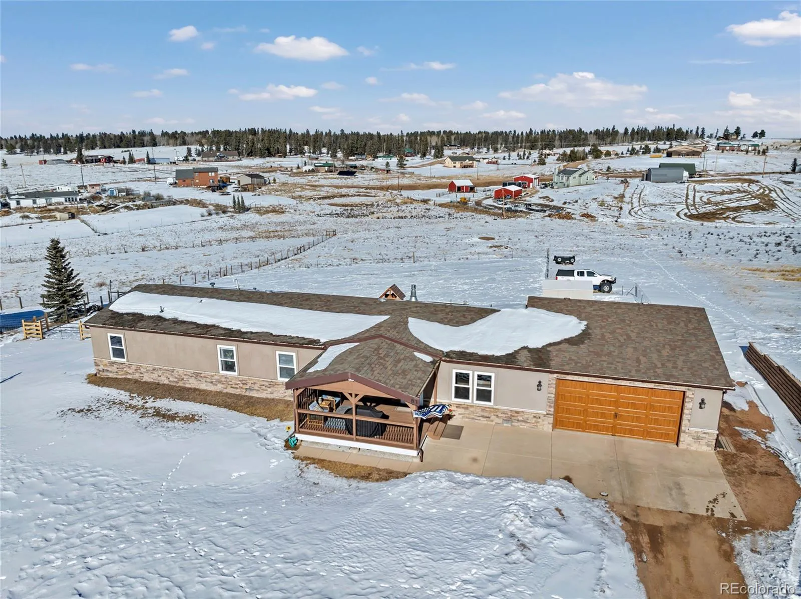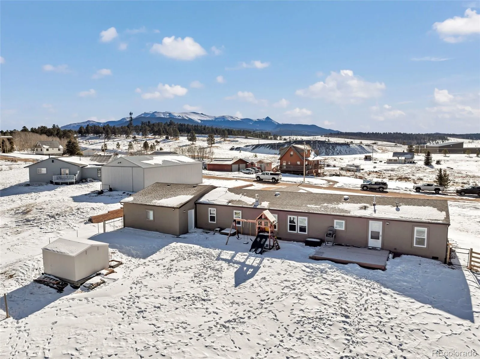 Welcome home to this beautiful mountain retreat, located just 15 minutes from Woodland Park. This property is filled with custom upgrades, including exposed wooden beams, butcher block countertops, textured walls, and a custom closet system in the primary suite. Enjoy true main-level living with 4 bedrooms plus an office. Recent improvements—such as a new furnace and a newer hot water heater—make this home move-in ready. The oversized 34′ x 22′ garage provides plenty of space for all your toys, tools, and even a full-size truck. RV owners will appreciate the dedicated parking area complete with electrical hookups. With 2 acres of usable land, there’s room for kids, dogs, and even horses to roam. Relax on the covered front porch and take in the sunrise and sunset over the mountains. This home offers the perfect blend of peaceful space and convenient access to nearby amenities.