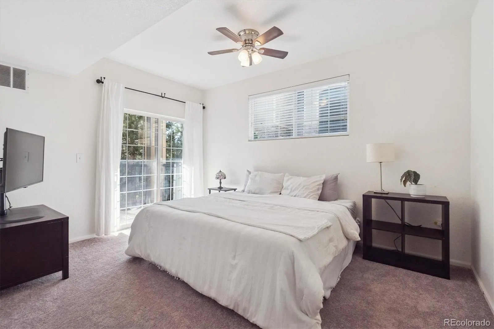 Welcome to this beautifully updated 2-bedroom, 2-bath end-unit condo, thoughtfully designed to maximize light, privacy, and an outdoor connection. Enjoy picturesque views from two private balconies, both overlooking peaceful green space and providing easy access to the community’s scenic surroundings. Inside, you will enjoy plush new carpet and fresh paint enhancing the open, airy layout—perfect for both everyday living and entertaining. A private foyer leads into the spacious Great Room, where a cozy fireplace anchors the space and flows seamlessly into the kitchen and dining area. The well-appointed kitchen features granite countertops, stainless steel appliances, abundant cabinetry, and generous prep space, while the adjacent dining area easily accommodates everything from casual meals to hosting guests. The Owner’s Suite offers a serene retreat with its own private balcony, an oversized walk-in closet, and a private en-suite bath. A second bedroom—ideal for guests, a roommate, or a home office—is conveniently located near the guest bath and also enjoys direct balcony access. A standout convenience is the in-unit laundry room, complete with a washer and dryer, offering ample space and everyday ease rarely found in condo living. Step outside and enjoy direct access to the Cherry Creek Trail system, a favorite for walking, jogging, and biking, connecting you to miles of beautifully maintained paths and natural scenery. Ideally located just minutes from the charming town of Parker, with its shopping, dining, and parks, this home also offers easy access to major highways, Denver International Airport, and Colorado’s renowned mountain destinations.