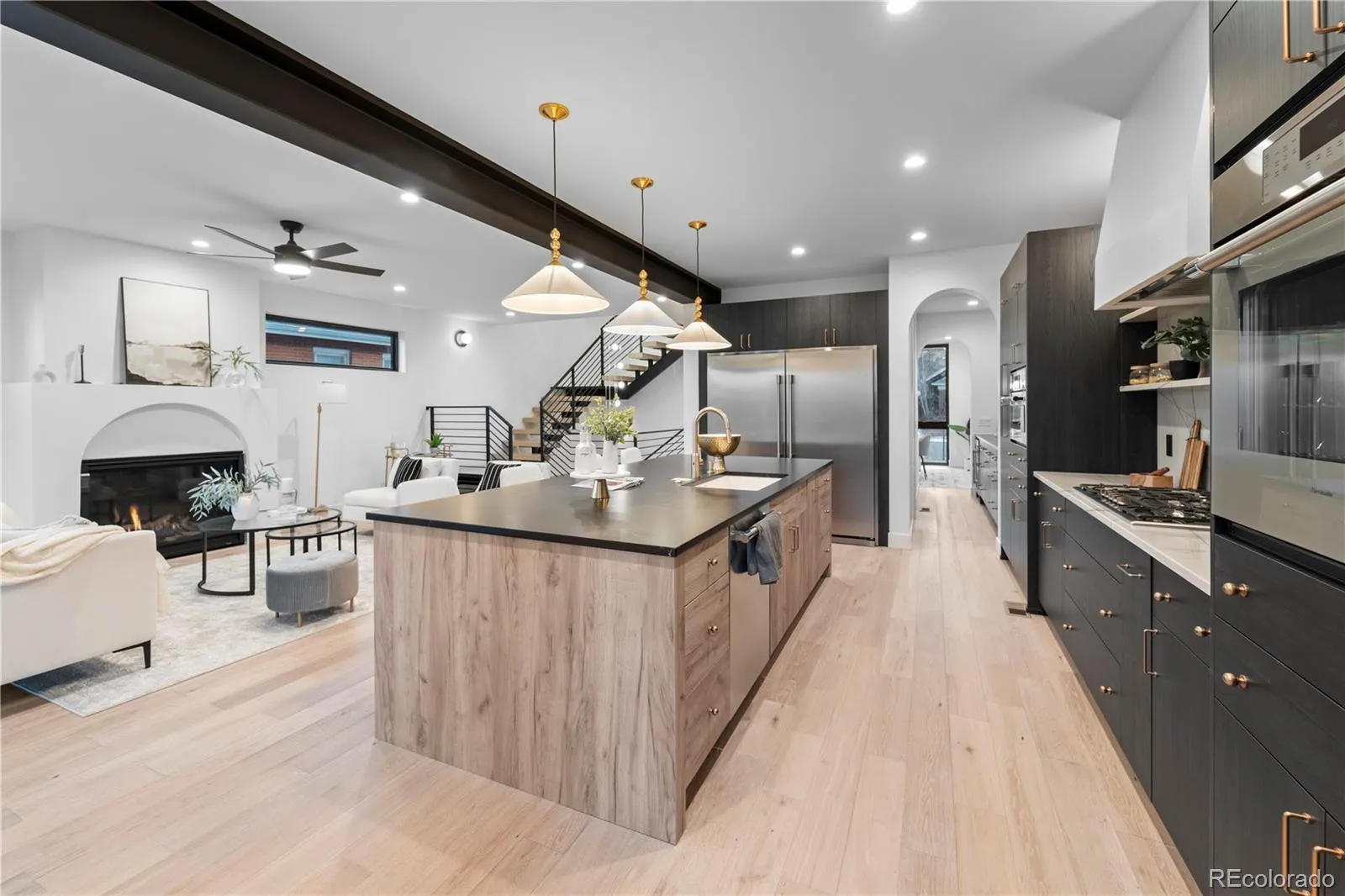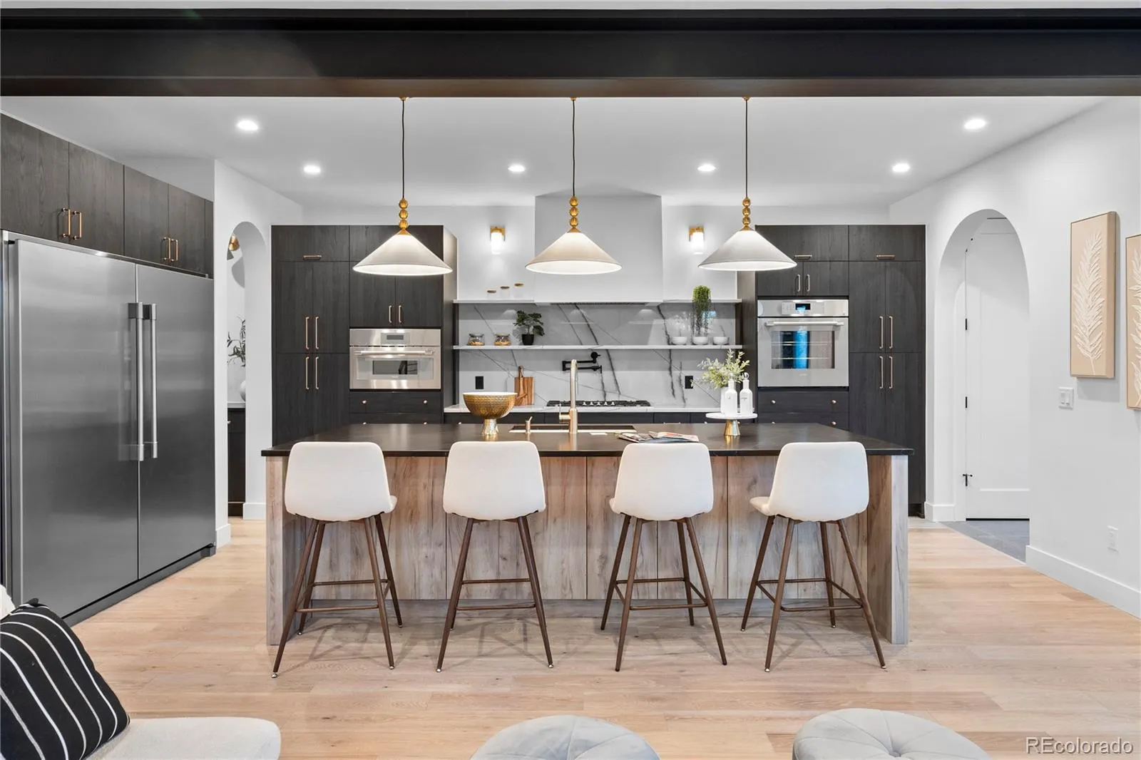 Welcome to this breathtaking 6bd/5ba single-family home located a block and a half away from Wash Park. Blending modern style with Scandinavian elegance, this offers 4,603 square feet of living space spread across four levels, plus a rooftop deck all connected by a custom metal spiral staircase. As you enter, the floor-to-ceiling Fibrex Anderson windows and Windor multi-slide patio doors bathe the engineered hardwood floor in natural light. The kitchen boasts stainless steel Thermador/Frigidaire appliances, custom floating slab shelves, custom American cabinetry, and 10’ island with extra storage. Surrounding you’ll find a mudroom with a dog wash, a butler’s pantry with unique arching details, and a large walk-in pantry. Upstairs, the primary suite features a cozy gas fireplace, his-and-hers closets, a bar nook, and a luxurious, Nordic-inspired bath with heated floors. The third floor offers a loft area with a wet bar and access to the expansive rooftop deck—perfect for entertaining, complete with engineering for a jacuzzi and plenty of space for guests to mingle. The finished basement has 10-foot ceilings, open space, and a large wet bar, ideal for hosting. The home features a solid brick exterior complemented by thermally modified, durable wood accents. Custom metal awnings and a unique metal wall incorporating a piece of the old railroad track from the under the street, thoughtfully embedded into the design, welcomes guests. Private backyard with large patio and abundant greenery creates a pleasant oasis. he insulated, drywalled 2-car garage includes an EV charger and room for additional overhead storage. 3-minute drive from Cherry Creek with easy access to I-25 and Downtown Denver. Every detail of this luxury custom home reflects exceptional craftsmanship, headed by a professional designer. Carrier AC, a tankless water heater. No HOA. PBG provides industry leading 2-year builder’s warranty and an 8-year structural warranty for added peace of mind.