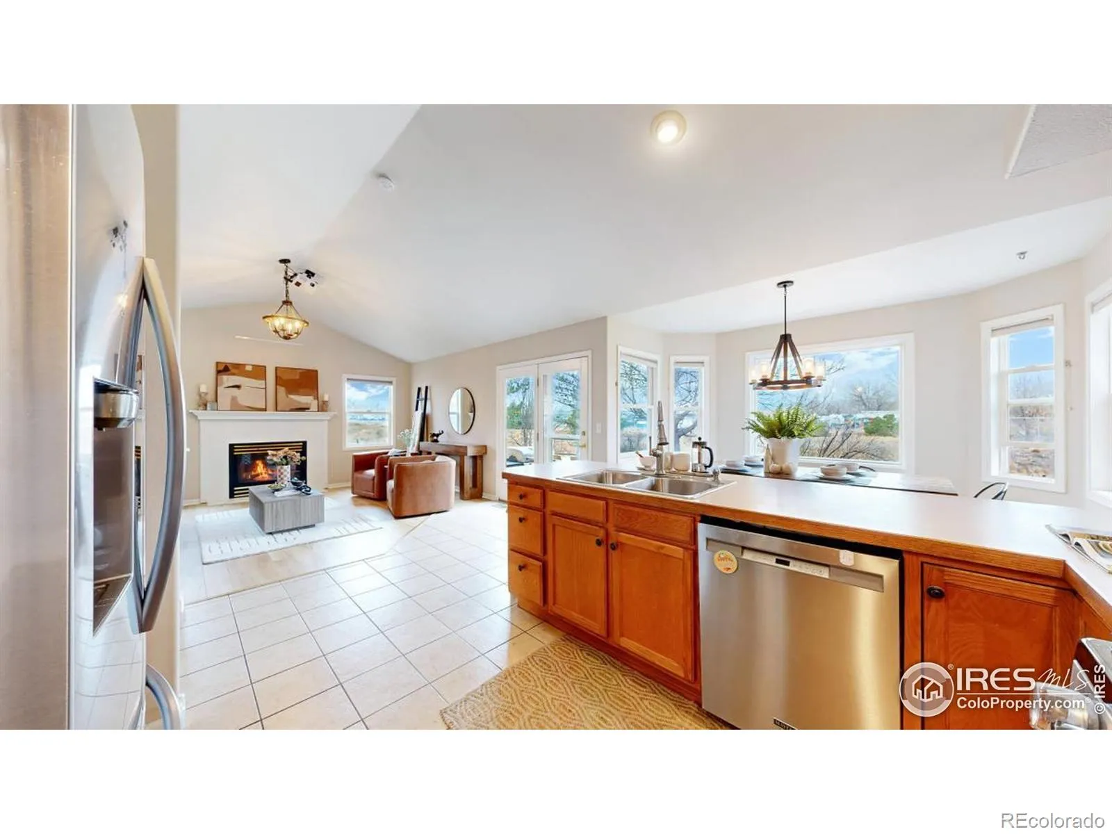 Situated in desirable SW Loveland just 6 minutes from Downtown, this beautifully maintained home offers a warm, comfortable atmosphere inside and out. Enjoy being connected to nature and wildlife including many elk and deer roaming in your own backyard! Featuring 4 bedrooms, 3 bathrooms, and an office, this home is thoughtfully designed to provide both functionality and charm. Outstanding mountain views backing to forested City owned open space, extensive hiking/biking trails, Big Thompson River as well a stocked fishing pond! The interior welcomes you with a bright, open main living space that includes a comfortably sized living room with large windows that fill the home with natural light. The adjoining kitchen provides good counter workspace, traditional cabinetry, new updated appliances, and a dining area large enough for family meals or casual gatherings. The primary suite includes ample space, new LVP flooring, lots of natural light, and good sized attached 5-piece bathroom and walk in closet. Downstairs, you will find 2 additional bedrooms, full bathroom, a large rec room, cozy fireplace, and full kitchenette with appliances that could easily be used for Mother in Law Suite. Outside, the property’s lot offers room to garden, relax, or create your ideal outdoor entertaining space. The quiet cul-de-sac setting adds privacy and reduces drive-through traffic. The location brings added value near dining, shopping, and entertainment. With easy access to major commuter routes, parks, schools, and local amenities, this property offers a balanced lifestyle that combines approachable living, affordability, and the convenience of being close to what makes Loveland such a desirable community, all in one well-cared-for home ready to welcome its next owner.