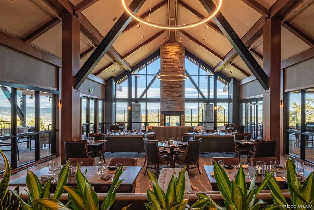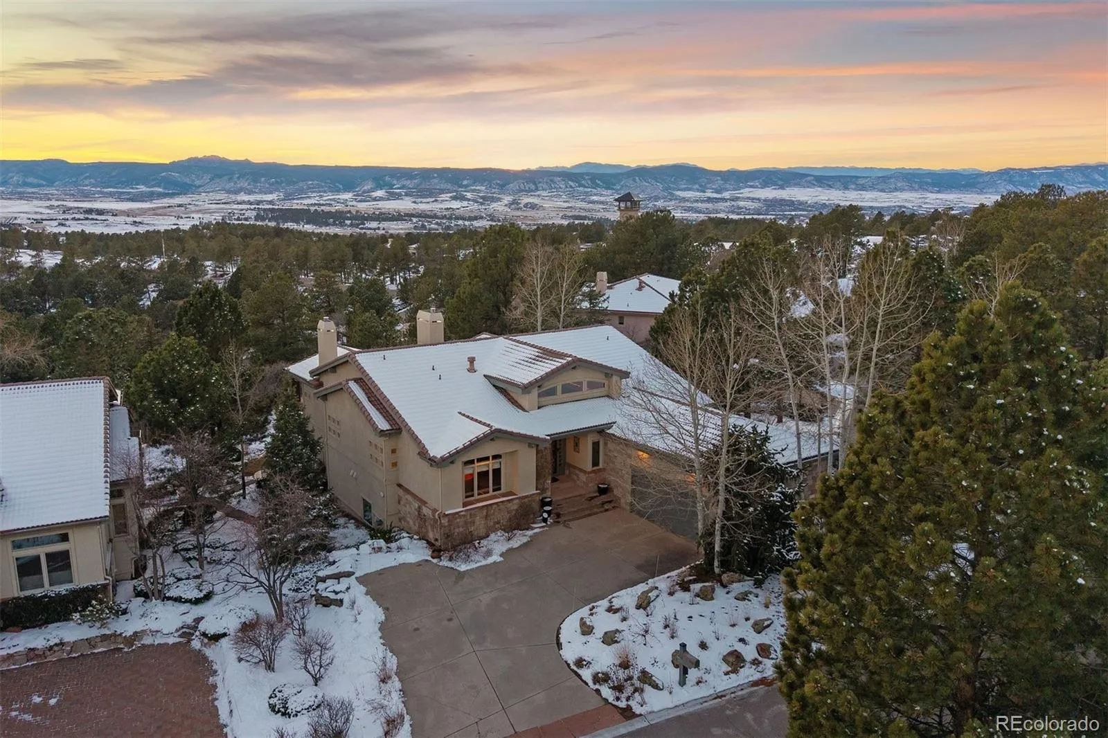 Rare, awe-inspiring mountain views majestically unfold across the horizon and command your full attention at this luxury 3 bedroom | 4 bathroom residence. Tucked within a private enclave of the gated Village at Castle Pines community, this home sits adjacent to the exclusive Castle Pines Golf Club, host of the 2024 BMW Championship, and offers rare proximity to this revered course. As you enter the lodge-inspired foyer, floor-to-ceiling windows provide a sweeping panorama. Just off the entry, an executive office with rich wood detailing and glass-faced doors presents a refined workspace, while the formal dining room is perfect for gathering family and friends alike. Continuing on through the main level, the great room anchors the home with soaring ceilings and a window wall that frames breathtaking, wide-open mountain views, complemented by a stone fireplace. A sun-filled breakfast nook opens to a large deck, perfect for wildlife viewing over morning coffee and sunset dinner parties, and sits adjacent to the recently remodeled kitchen with Viking appliances and granite counters. A convenient main level primary suite offers more stunning mountain vistas, separate outdoor access, and a setting designed to capture the surrounding landscape. The renovated primary bath has quartz counters, LED-lit mirrors, a soaking tub, and a walk-in glass shower with custom tilework, while a functional laundry room and stylish powder room complete the main level. Downstairs, the walkout lower level features a custom wet bar, family room with a stone fireplace, game room, two en suite guest bedrooms with walk-in closets, and a flexible den – perfect for a gym or study. Conveniently located only 2 minutes to Gate 1, these homes seldomly come onto the market due to their quiet, coveted location, lock and leave nature, and spectacular vistas. Delivering architectural character, thoughtful updates, and one in 1,000,000 views at every turn, this mountain retreat is truly one of a kind.