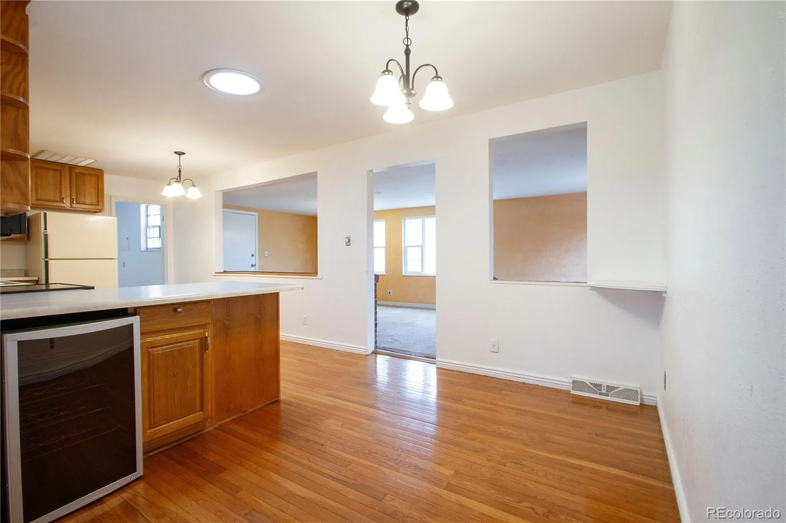 Enjoy easy, single-level living in this ranch-style home, ideally situated toward the end of a quiet cul-de-sac on nearly a 1/4-acre lot. Featuring 3 bedrooms and 2 bathrooms, this property offers a rare opportunity to build sweat equity and create a home that truly reflects your style—perfect for someone who wants to update over time or investors seeking a great investment opportunity. The spacious living room has beautiful hardwood floors, a cozy wood-burning fireplace, and a large bay window that allows for natural light. The layout flows seamlessly from the living room to the dining area and into the kitchen, which includes all appliances. The kitchen opens to a large family room with lots of windows, creating a bright and inviting gathering space. Washer and dryer are included. The primary bedroom features a private ¾ bath. Additional highlights include an oversized one-car garage with lots of shelving, a one-car carport, a newer roof (2024), a new sewer line from the house to the sidewalk (2019), and a sprinkler system in both the front and back yard. Enjoy the convenience of biking or taking a short drive to Olde Town Arvada, where you can explore shops, fine dining, coffee houses, breweries, the farmers market, and light rail access. Close to miles of scenic walking and biking trails, this home offers both location and potential.