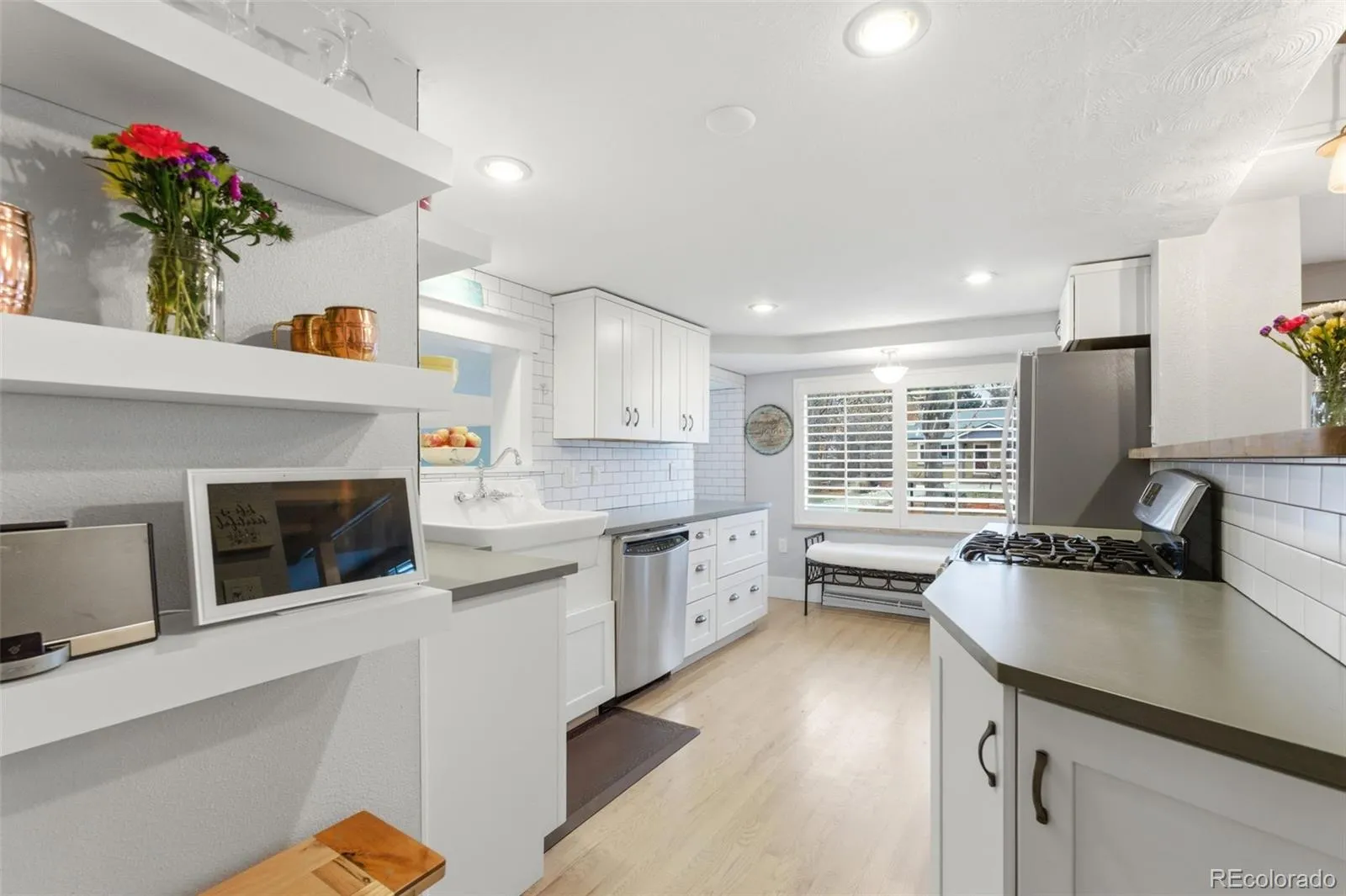 Opportunity is back!! Previous contract ended at no fault of the home. Located in the historic Glens neighborhood, ideally positioned between Lakewood and Wheatridge, an area rooted in Colorado’s orchard heritage between Denver and Golden this fully remodeled ranch sits on an expansive 0.35-acre lot with rare water rights and exceptional indoor-outdoor living. This 5-bedroom, 3-bathroom home blends timeless character with thoughtful modern updates throughout. The main level features original red oak hardwood floors refinished with a light, contemporary stain, an inviting living space with fireplace, and a beautifully renovated kitchen completed in 2018 with updated cabinetry, countertops, and finishes. 3 main-floor bedrooms offer flexible living, while the finished basement adds two additional bedrooms (one with it’s own fireplace), including one non-conforming space ideal for guests, office, or fitness use. The primary suite is a standout, highlighted by a spa-inspired bathroom with clawfoot tub and separate shower—offering classic charm and modern comfort. Outdoor living shines with an east-facing covered deck, north-facing covered patio, mature landscaping, newer fencing, and an irrigation system supported by five shares of water rights. The oversized two-car garage includes a mechanic pit, additional concrete parking, and designated RV parking on the west side of the property—rare features in this market. Major system upgrades include a new electrical panel and subpanel, sewer line replacement, and a newer water heater, along with extensive renovations throughout the home. Just minutes from Crown Hill Park, Morse Park, trails, shopping, and dining, this property offers a rare combination of space, character, and access to both city and mountain lifestyle.