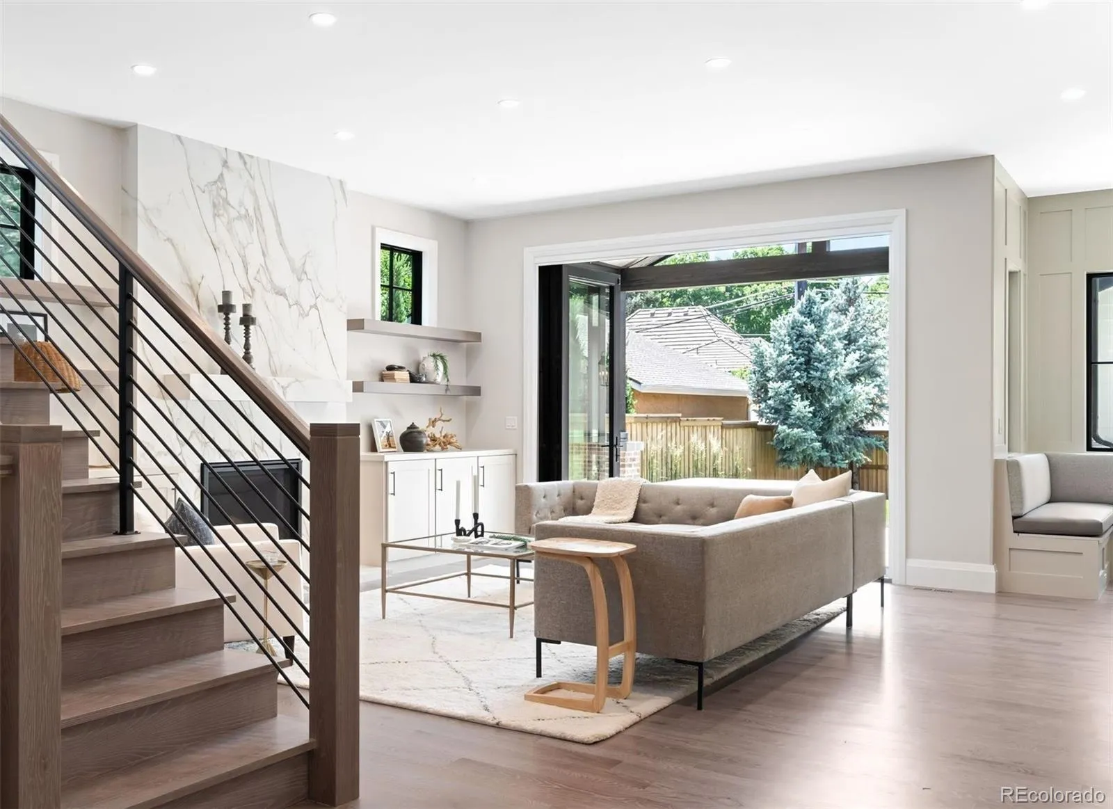 Positioned prominently on an east-facing lot in Observatory Park, this extraordinary new construction estate by Wiggs Custom Homes instantly impresses with over 6,100 square feet of innovative design and luxurious comfort. Custom site-finished white oak hardwood floors lead through an open floor plan perfectly crafted for elegant entertaining and effortless daily living. The formal dining room dazzles with statement lighting, while the expansive living room seamlessly transitions outdoors to a covered patio featuring a cozy built-in firepit and beautifully landscaped yard. The gourmet kitchen is a showstopper, featuring top-of-the-line Wolf & Sub-Zero appliances, chic textured tile, stunning quartz countertops, and sophisticated antique brass fixtures. Adjacent, a bright breakfast nook invites relaxed meals and intimate conversations. The main level also offers a stylish home office, a luxurious guest suite with a private bath, and a thoughtfully designed mudroom connecting to the attached two-car garage. Upstairs, unwind in the luxurious primary suite—a serene escape with a lavish five-piece bath showcasing a soaking tub, steam shower, glamorous gold Brizo fixtures, and a spacious walk-in closet. Three additional bedrooms, each with private baths, a flexible loft perfect for relaxation or inspiration, and a conveniently located laundry room complete the upper level. The fully finished lower level is your entertainment oasis, boasting an expansive recreation room with a sleek wet bar, a dedicated media room ideal for movie nights, and two versatile bedrooms perfect as guest rooms, home gym spaces, or additional offices. Ideally positioned near top-rated Denver-1 schools, vibrant parks, and urban conveniences, this Observatory Park home offers an unmatched lifestyle defined by modern luxury and effortless style.