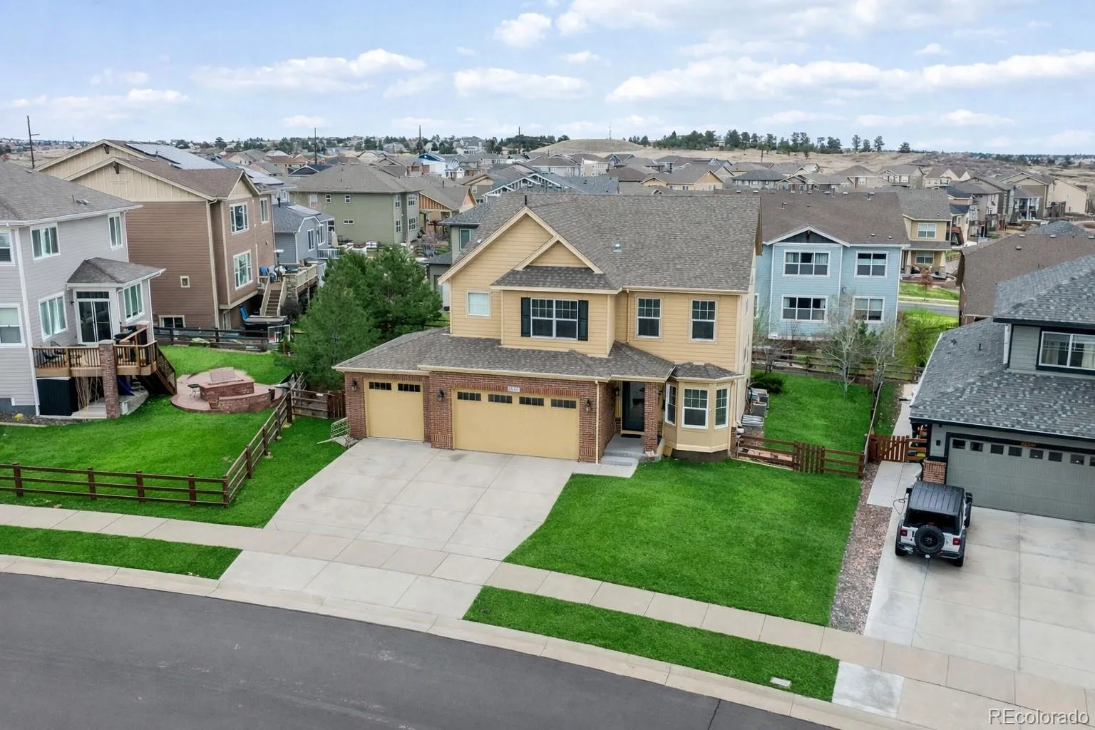 Located in the Pine Bluffs community, this stunning home offers many extras! It boasts 5 bedrooms and 5 bathrooms, a large open floor plan, a beautifully finished entertainers basement, and an inviting backyard. The first floor offers a beautiful open concept. The eat-in kitchen is comprised of granite counters, stacked stone accents, stainless steel appliances, including a state of the art Samsung Smart Fridge, and a pantry. The main floor laundry room offers additional storage matching the kitchen cabinetry. The upper level includes 4 Bedrooms joined by a large loft that can be used for office or flex space. The spacious master suite includes a 5 piece Bath with dual sinks and a large walk-in closet. A second bedroom with ensuite bath and walk-in closet plus 2 additional bedrooms (1 with walk-in) that share a second full bath. Invite guests down to the fully finished basement where you can host a cocktail party at the wet bar with granite counters and stacked stone accents, or play a friendly game of pool in the game area. The full bath won’t require multiple trips upstairs. If any of your guests decide to stay, the 5th bedroom is tucked away behind the sliding barn door. Enjoy the outdoors while sitting around the built-in gas firepit or soaking in the Hot Tub nestled between the trees. The large raised garden beds tucked around the corner are ready for your fruits and veggies. One of the great unseen amenities of this home is it’s close proximity to the community pool and park, shops and dining. Leave the cars parked in the 3 garage and take a short stroll just down the street, where you can step just outside of the neighborhood and find options for breakfast, lunch, dinner or drinks!