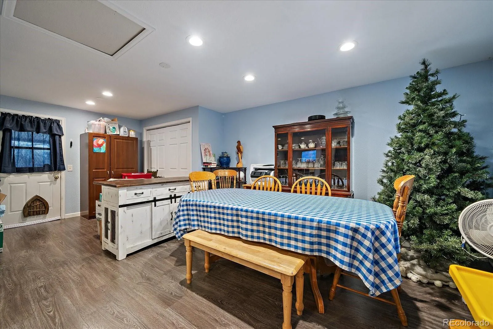 Fabulous opportunity to own this brick home in Centennial with NO HOA and a huge lot! The house has 4 bedrooms and 2 baths and 2 laundry rooms, one on each floor. Bath on main floor was recently updated. New Class 4 roof in 2021. New fence 2022; 2nd electrical panel added in 2021; new HVAC in 2021; new flooring and basement ceiling 2021; outside siding in 2012. New can lights in high ceilings on main floor. Cosmetic updates needed in the basement with new carpet and paint. Enclosed back porch. Very rare ADU possibility in the back yard with the Crooked House, could be an office or she-shed, includes heat (2023). Gazebo in back yard was added in 2000. There is also a large workshop/shed in the backyard for a total of 3 structures plus the covered back porch.