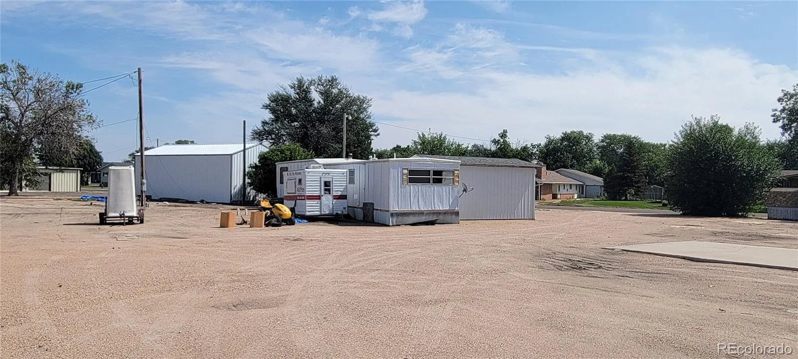 Rare 31,363 sq ft corner lot offering substantial land value and flexibility in Julesburg. The size, configuration, and access of this parcel provide a strong foundation for a wide range of potential uses. Existing improvements include a 12’x60’ manufactured home (2 bed, 1 bath) with an attached 12’x20’ garage, transferring by Bill of Sale, along with a 20’x40’ pole building, 22’x32’ concrete block building, and a 10’x12’ garden shed. Improvements are conveyed as-is and may serve for storage, interim use, or utility depending on buyer needs. Generous lot size allows ample space for access, parking, or reconfiguration. Entire property sells as-is.