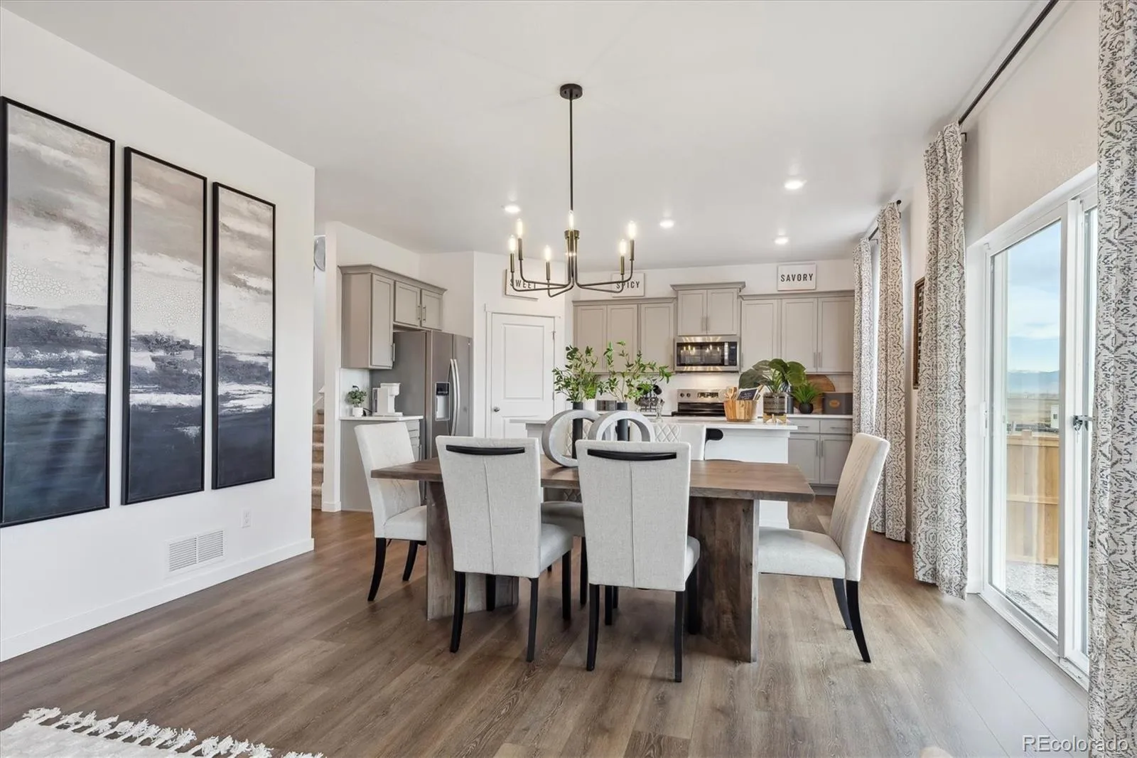 This beautifully designed two-story home offers comfort and style. A welcoming front porch leads into a study/den at entry perfect for a home office or flex space. The open concept main level features hard surface flooring throughout and a stunning kitchen with dark espresso cabinets, luxurious quartz counter tops, stainless steel appliances, ideal for the home chef. The living room is anchored by an elegant electric fireplace with beautiful floor to ceiling tile, creating a modern yet inviting focal point. Upstairs, spacious bedrooms feature walk in closets, while the owner’s suite provides a relaxing retreat with an en-suite bath with modern finishes like tile shower surrounds, quartz counter tops, and modern matte black hardware. Step outside to the covered deck overlooking the fully landscape yard, offering a perfect setting for outdoor enjoyment. This home is in walking distance to the 17-acre community park that includes a pool, basketball, tennis, pickle ball courts, and playground. ***Estimated Delivery Date: April. Photos are representative and not of actual property***