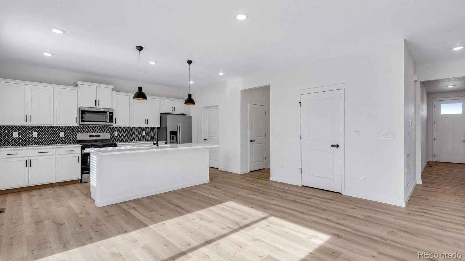 Welcome to this stunning 2-story home that combines elegance with modern comfort. The spacious, open-concept layout is perfect for family gatherings and entertaining. The gourmet kitchen boasts a large quartz counter top, White cabinetry with crown molding and hardware, and a stylish subway tile back splash. Enjoy the convenience of a walk-in pantry and an electric fireplace in the great room with floor to ceiling tile, creating a cozy atmosphere. The main floor also features hard surface flooring, a versatile den or office space, and a seamless flow into the dining and living areas. Upstairs, you’ll find a generously-sized loft, ideal for an additional living space, playroom, or media room. Each bedroom is complete with a walk-in closet, and the primary bedroom offers a luxurious en-suite bath and an expansive walk-in closet. Convenience continues with second-floor laundry and beautifully tiled floors in the bath and laundry areas. Outside, you’ll love the large, fully landscaped yard with a sprinkler system. Enjoy your morning coffee or evening relaxation on rear covered patio. This smart home comes with a modern package for added convenience and security. This home offers everything you need for luxury living in a highly functional layout. Don’t miss out on the opportunity to make this house your new home! ***Estimated Delivery Date: April. Photos are representative and not of actual property***