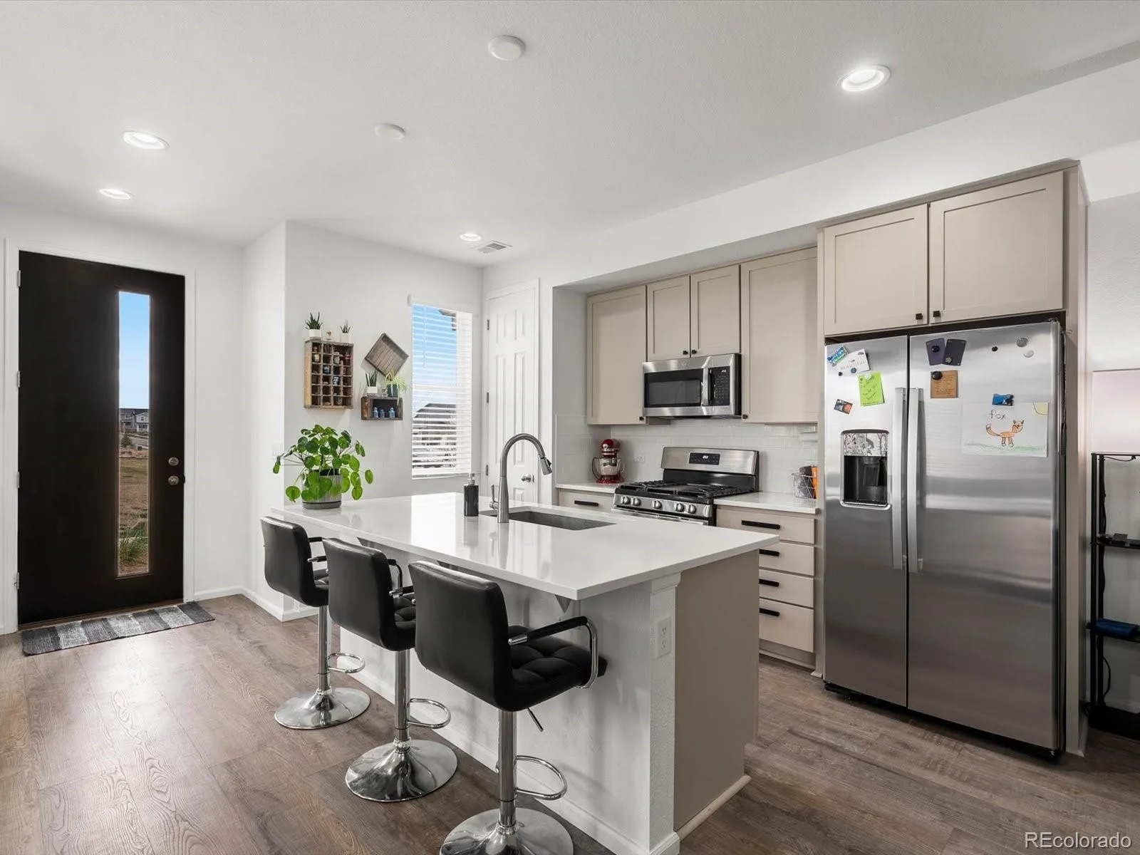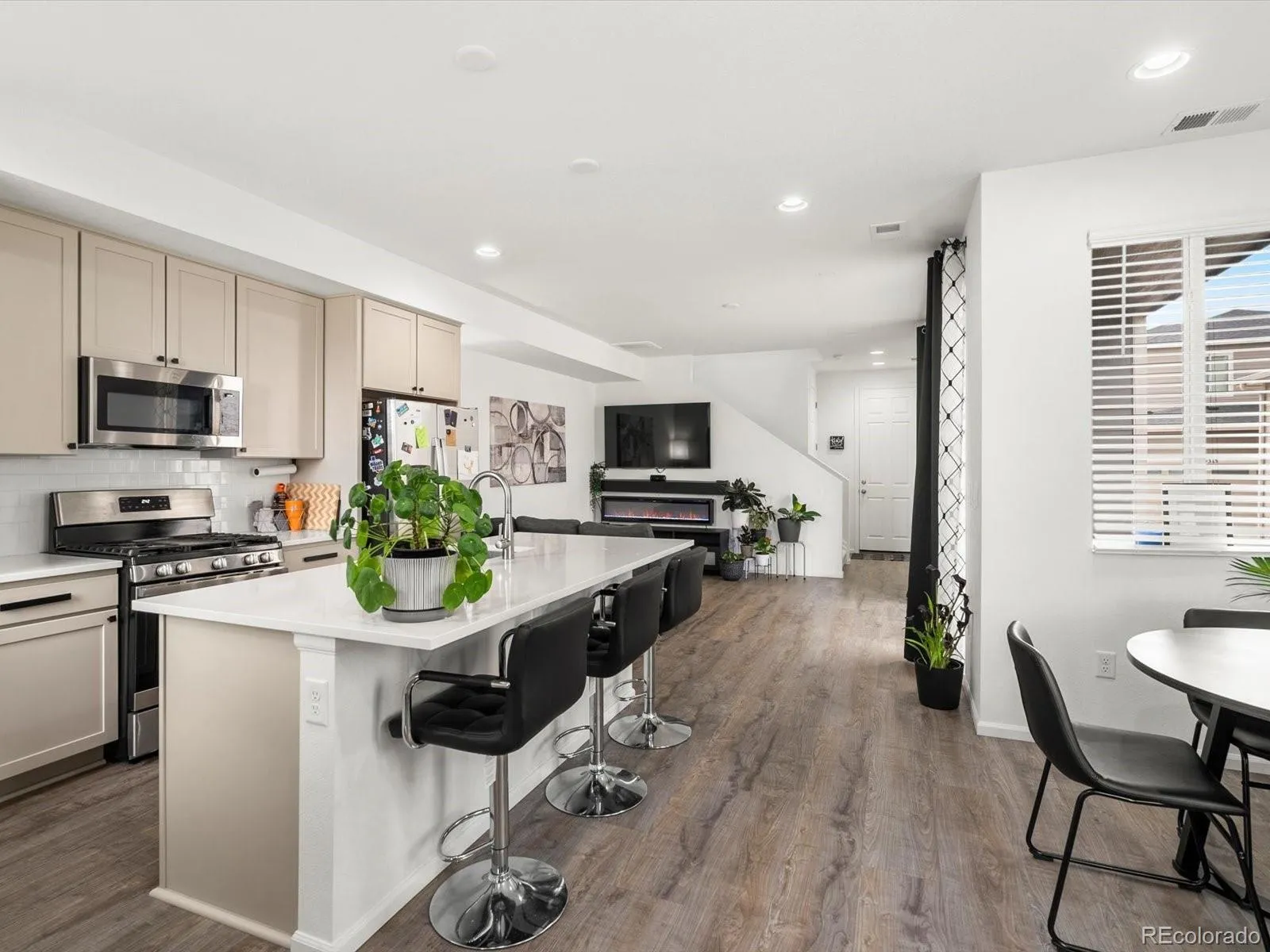 Welcome to your nearly brand-new townhome located in the vibrant and growing community of The Aurora Highlands. This light and bright home features soaring vaulted ceilings and an open-concept design. As you walk in, you’re greeted by a spacious living area filled with natural light and flexible layout options. The kitchen is complete with a giant island perfect for barstool or breakfast seating, a plethora of luxury cabinetry, quartz countertops, and a dedicated pantry space. The adjacent dining area easily fits a large table, making it ideal for entertaining. Step outside to your private, fenced-in patio, perfectly positioned to enjoy that Colorado sunshine. On the main level, you’ll also find a conveniently located half bath, generous under-stair storage with access to a crawl space offering extensive storage potential, and an attached two-car garage that opens to the alleyway. Upstairs, all three bedrooms and the laundry room are thoughtfully placed together. The primary suite is spacious and sunlit, featuring a massive walk-in closet, large walk-in shower, double vanities, a private water closet, and plenty of room to unwind. Two additional bedrooms offer the flexibility for guest space, office use, or kids’ rooms, and are served by a roomy guest bathroom. Recent updates include servicing of the AC, furnace, & water heater for added peace of mind. The community features a new recreation center with resort style a pool & slides. You’ll also enjoy ample guest parking, walkability to several parks, and proximity to Aurora Highlands School, which is just a short stroll away (say goodbye to pick up/drop off lines). This home is also conveniently located just 10 miles from Denver International Airport and 12 miles from the Children’s Hospital Anschutz Campus. Big bonus, the front door opens to a serene greenbelt, ideal for pets or little ones to play. Don’t miss the chance to own this stylish and move-in ready home in one of Aurora’s most exciting neighborhoods.