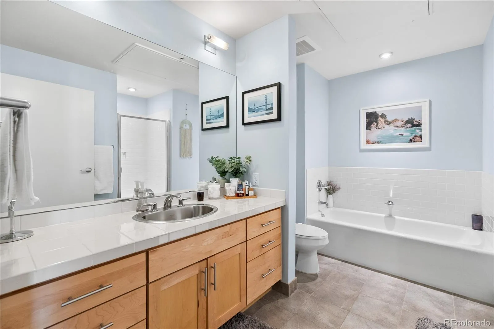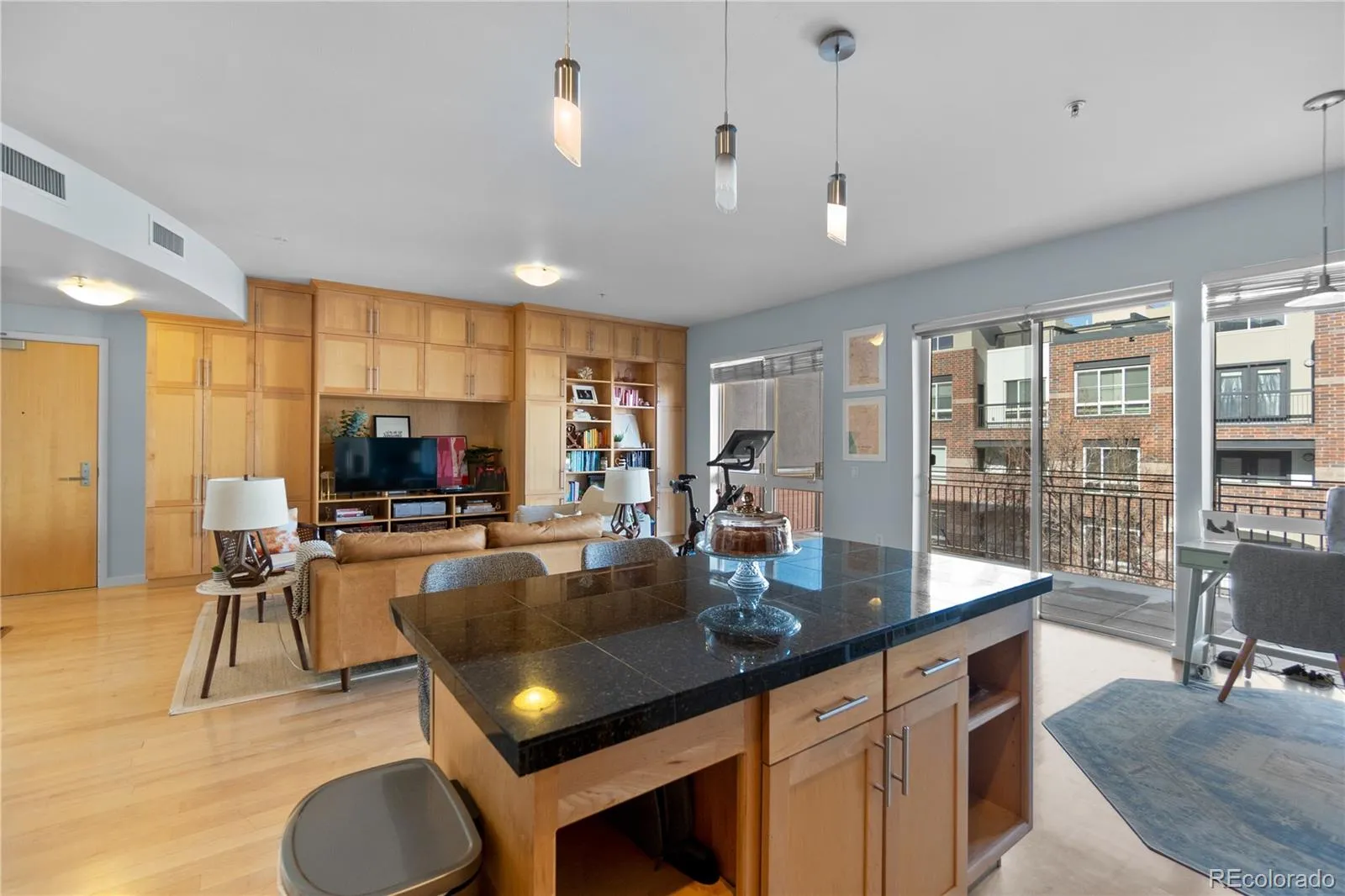This stunning condo offers a perfect blend of comfort and style in a highly sought-after location. Beautiful one bed, one bath unit lives very large with an inviting open-concept layout. Upon entering, you’ll be greeted by a large walls of windows that boasts with abundant natural light! Custom made, floor to ceiling built in cabinets offering a tremendous amount of storage. Gorgeous eat in kitchen offers gas stove and kitchen island. The primary bedroom provides a peaceful, private retreat that separates itself from the great room. Large full bathroom with separate shower and soaking tub! An in-unit laundry room with a stackable washer and dryer. Unit includes private oversized balcony. Located on the west edge of downtown Denver with easy access to i-25. 1 parking spot in private covered garage, 20 sq ft storage locker down the hall from unit and garage bike storage. Blocks away from Union Station, Riverfront Park, and Ball Arena.