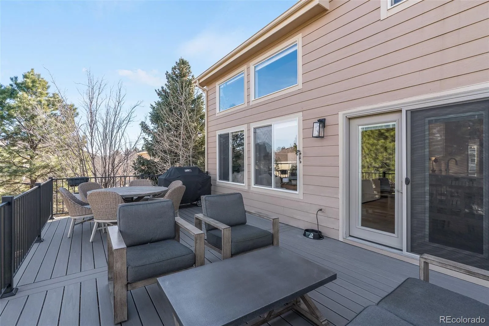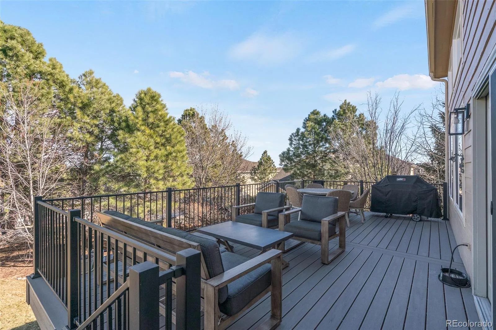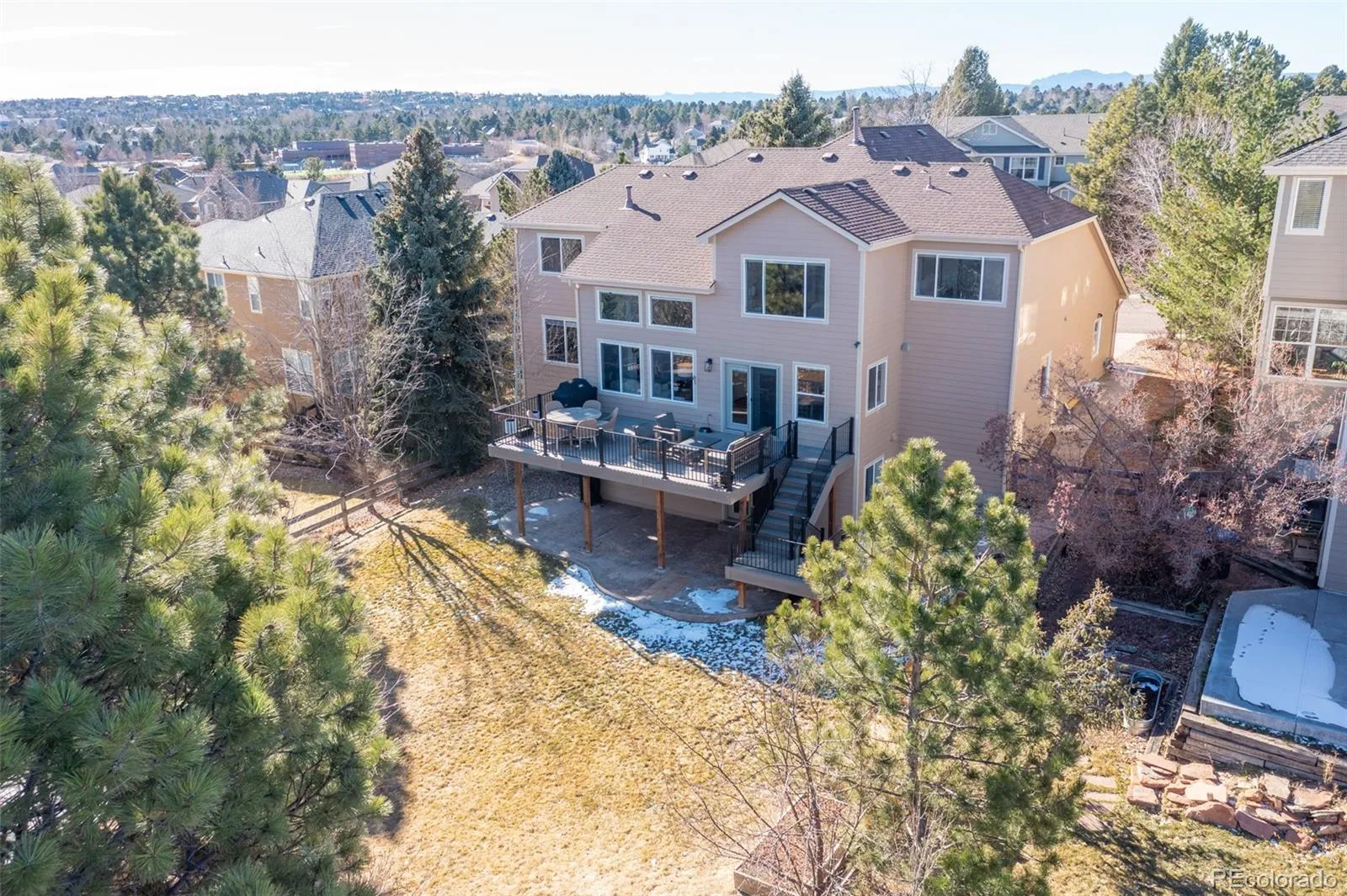 This stunning remodeled home features a three car tandem garage and welcomes guests through a stately double door entry way. The open floor plan boasts soaring two-story ceilings and gorgeous LVP flooring. Inside the sparkling kitchen you’ll find quartz countertops, 42-inch cabinetry, a gas range, and show stopping hood. The great room is truly spectacular with its two-story, shiplap gas fireplace and reclaimed wood mantle. A main level study could also be used as a bedroom with its own closet, and convenient three-quarter bath room. A formal dining room and a formal living room flank the stunning entryway, graced by the stylish staircase and new iron railing. Upstairs, the primary bedroom is an owner’s retreat with its vaulted ceilings and attached spacious master bath, featuring separate vanities, a modern freestanding tub, and frameless glass shower. The walk-in closet is outfitted with built-ins to help you stay organized. Three additional bedrooms are upstairs, one with its own full private en suite bathroom. Two more bedrooms upstairs are picture perfect and share a third upstairs bathroom with double vanities, and a separate tub and toilet room. Outside, the brand new top-of-the-line Trex deck is expansive, and overlooks the large backyard of this almost 1/4 acre home site. Below, a stamped concrete patio opens from the finished walkout basement where you’ll find room for media, recreation, and fun with the large wet bar and additional bathroom. The backyard shows off one of the best lots in the neighborhood with its raised garden beds, established trees, and even a water spigot for all your outdoor adventures. Don’t miss all the Castle Pines amenities, including miles of walking trails, the community parks and pool, The Ridge golf course, and so much more. All just 15 min from the Denver Tech Center, 30 min from downtown Denver, 45 min to Denver International Airport, and under two hours to some of the best skiing and winter sports Colorado has to offer.
