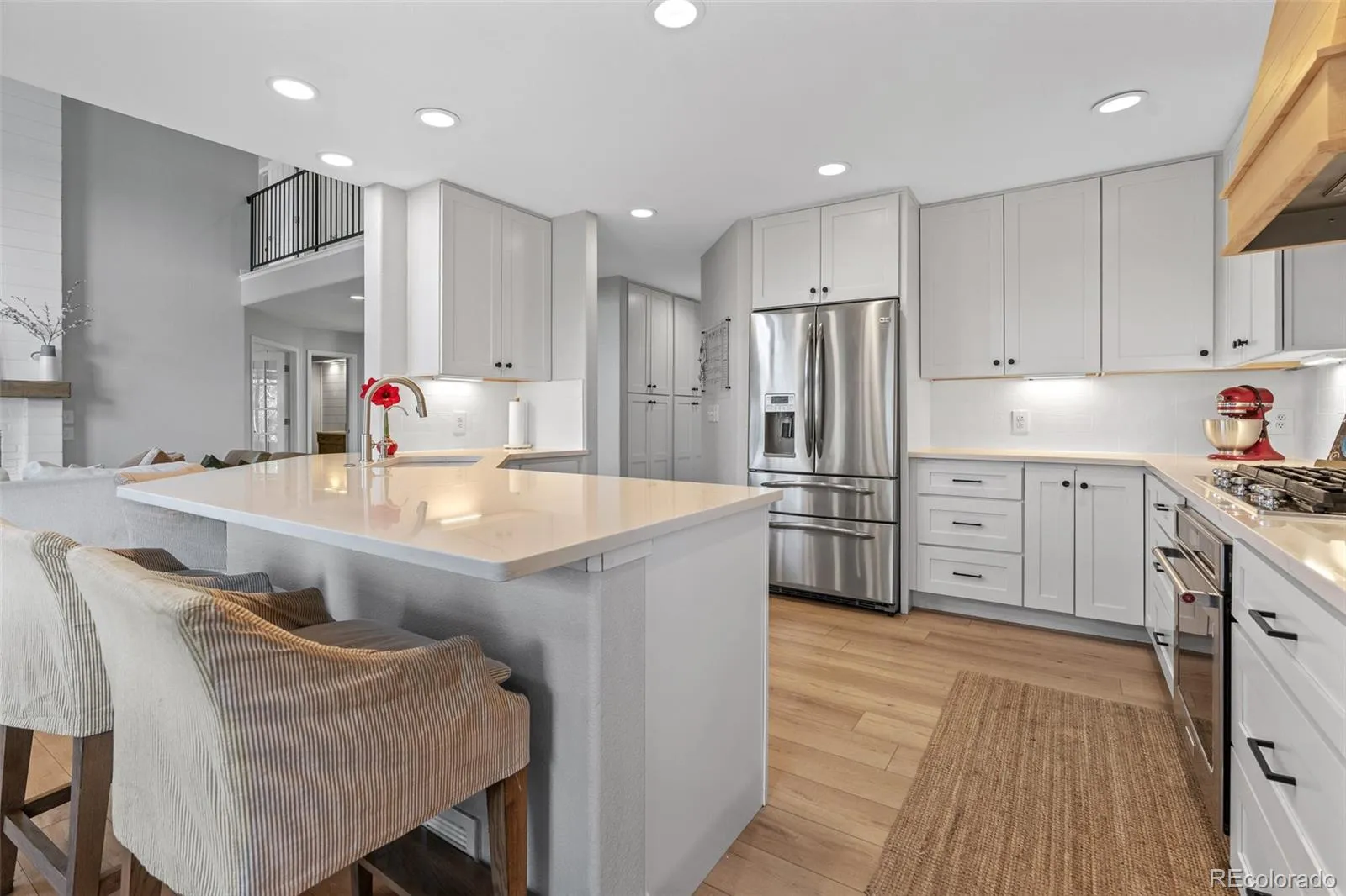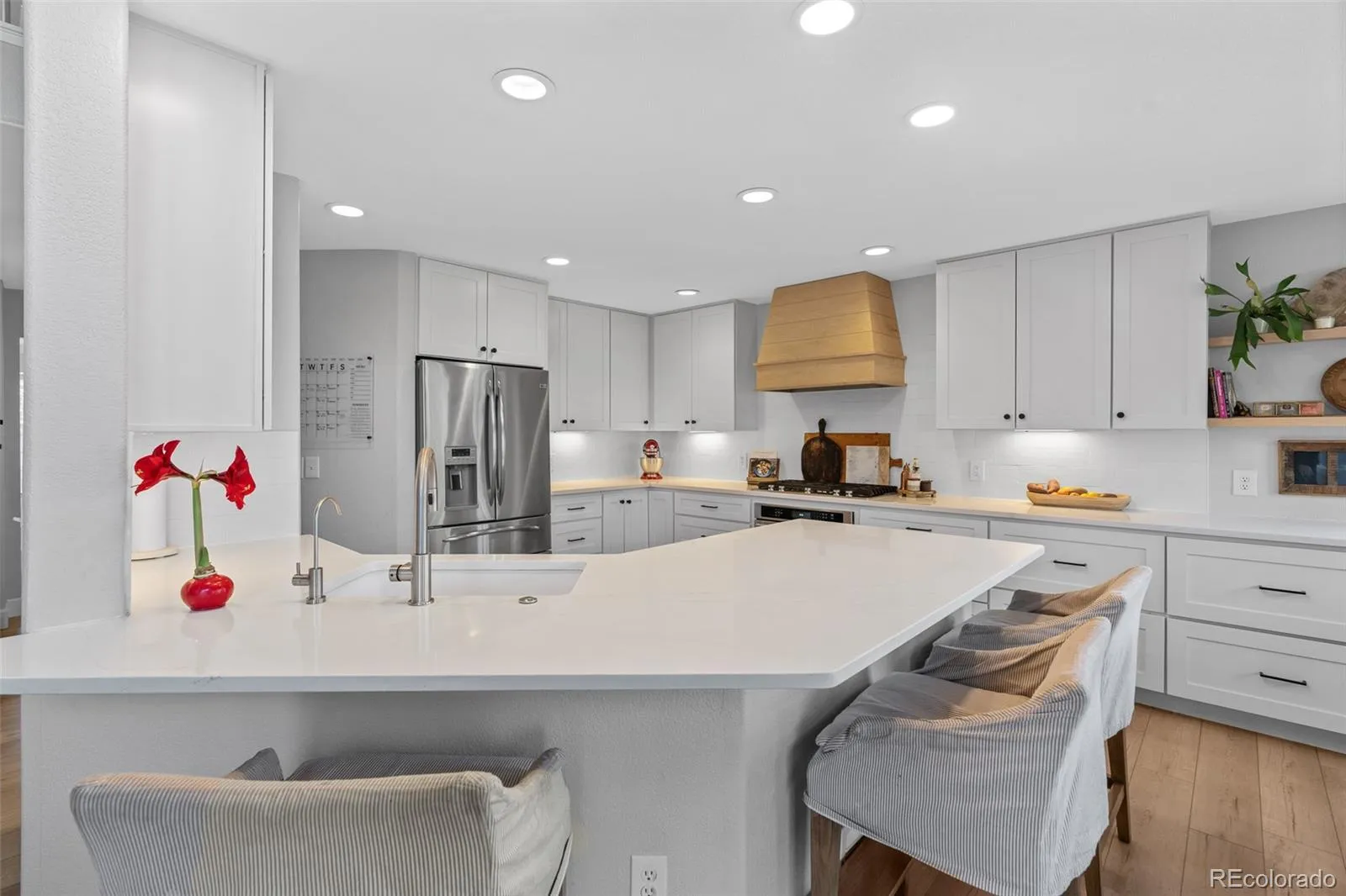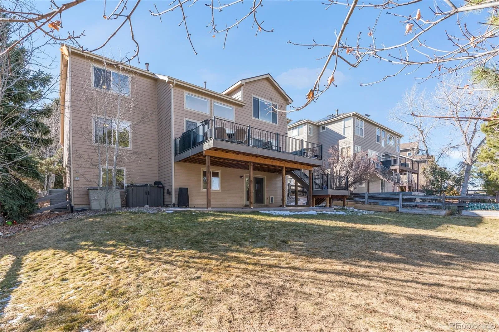 This stunning remodeled home features a three car tandem garage and welcomes guests through a stately double door entry way. The open floor plan boasts soaring two-story ceilings and gorgeous LVP flooring. Inside the sparkling kitchen you’ll find quartz countertops, 42-inch cabinetry, a gas range, and show stopping hood. The great room is truly spectacular with its two-story, shiplap gas fireplace and reclaimed wood mantle. A main level study could also be used as a bedroom with its own closet, and convenient three-quarter bath room. A formal dining room and a formal living room flank the stunning entryway, graced by the stylish staircase and new iron railing. Upstairs, the primary bedroom is an owner’s retreat with its vaulted ceilings and attached spacious master bath, featuring separate vanities, a modern freestanding tub, and frameless glass shower. The walk-in closet is outfitted with built-ins to help you stay organized. Three additional bedrooms are upstairs, one with its own full private en suite bathroom. Two more bedrooms upstairs are picture perfect and share a third upstairs bathroom with double vanities, and a separate tub and toilet room. Outside, the brand new top-of-the-line Trex deck is expansive, and overlooks the large backyard of this almost 1/4 acre home site. Below, a stamped concrete patio opens from the finished walkout basement where you’ll find room for media, recreation, and fun with the large wet bar and additional bathroom. The backyard shows off one of the best lots in the neighborhood with its raised garden beds, established trees, and even a water spigot for all your outdoor adventures. Don’t miss all the Castle Pines amenities, including miles of walking trails, the community parks and pool, The Ridge golf course, and so much more. All just 15 min from the Denver Tech Center, 30 min from downtown Denver, 45 min to Denver International Airport, and under two hours to some of the best skiing and winter sports Colorado has to offer.