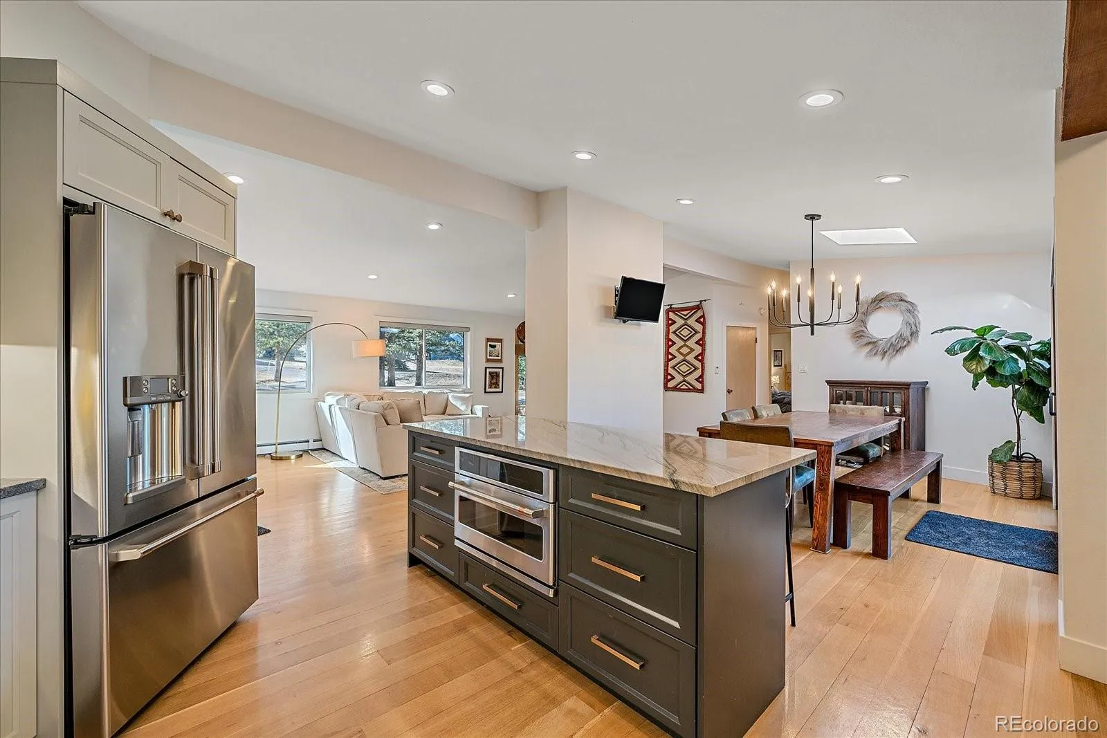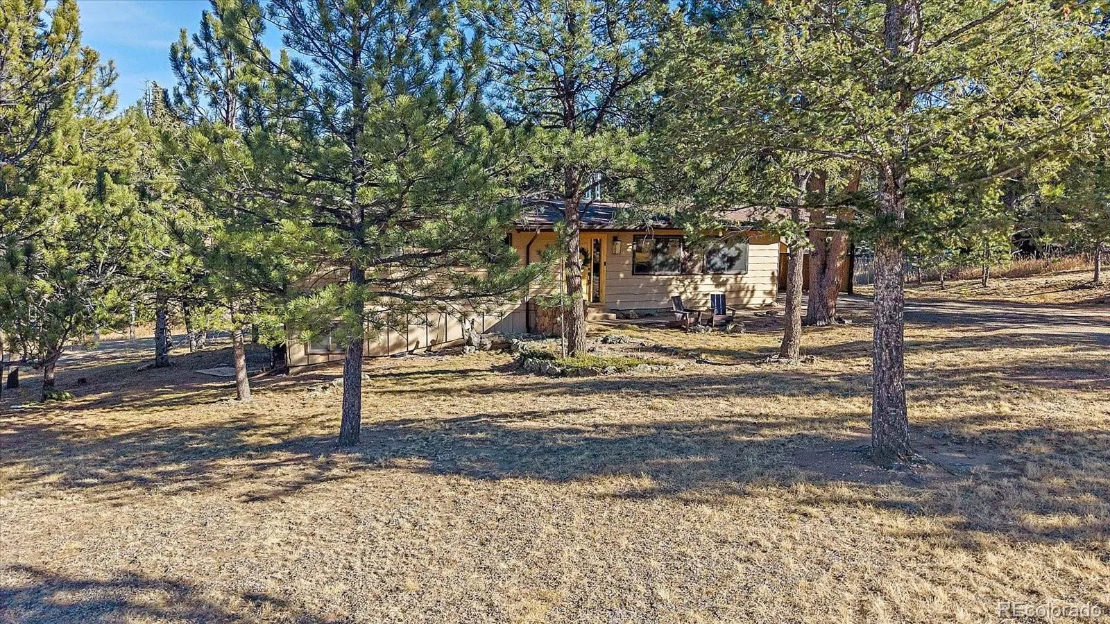 Stunning remodel on one of Hiwan’s premier lots. This one really is special. A gentle driveway leads you across this park-like acreage where this sweet home awaits. The great room has been totally remodeled with careful detail to attention. The gas fireplace highlights the living space and it is open to the dining and kitchen areas just beyond. The dining area can be home to your largest dining set and the kitchen island provides barstool seating as well. The kitchen has been masterfully designed with a gas stove and gorgeous cabinetry. The dining opens onto a large (and private!) deck with built-in seating bench. There is also space in the living room for a game table or desk space. The upper primary suite offers a gentle vaulted ceiling and dual closets. You can add an access door for direct access to the fully remodeled bathroom. A secondary bedroom enjoys backyard vistas. Main level laundry is also located in a separate room. A newer staircase leads you to the lower level where you will be greeted be a huge family room with another gas fireplace. This is an optima area for TV watching, workout equipment or hobbies. A second primary suite is on the level and enjoys a large walk-in closet. The 4th bedroom has natural light and area for desk space. Another fully remodeled bathroom has a large walk-in shower, dual sinks and separate water closet area. Moving to the outside, a 2 car attached carport (mostly enclosed on 3 sides) offers an escape from the elements and has storage in back (and there is a shed as well). The acreage affords endless activities for people, kids, dogs or just the privacy. You will enjoy the south-western views, sunny location and easy access to all Evergreen has to offer.