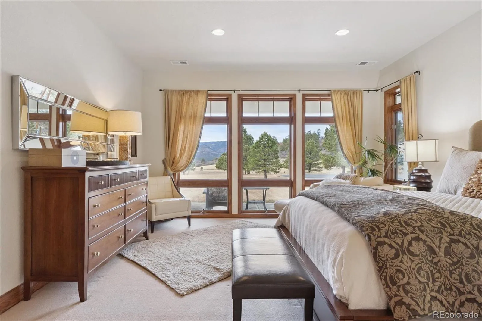 Stunning and Impeccable, this Walkout Ranch Plan has been Carefully Positioned to Absorb the Mountain Views and Open Space. Located on 4.38 Acres of the Most Lovely Land-Pristine Meadows and Towering Pines-Quiet and Peaceful-You Can Breath Here! Custom Designed and Fully ADA Accessible Including an Elevator to Access the Lower Level. An Open and Flowing Plan with Extra Wide Doorways, Hallways, Baths & Exterior Doors. Floor to Ceiling Windows Throughout the Majority of the Home Brings the Outside In. The New Back Deck Wraps Around the West Side of the Home, Partially Covered, Where You May While Away the Days Viewing the Wildlife, Mountains and Sunsets. Mother Nature Provides the Artwork with Ever Changing Skies and Colors. Inside You Will Find Quality Construction – The Great Room, Dining Area and Kitchen all Flow as One for Easy Entertaining. A Commercial Grade Range, Large Island, Breakfast Bar, Oversized Pantry, Built in Fridge, Prep Sink and Nook Area are a Cook’s Delight. Adding to the Ambience is the Primary Suite with Floor to Ceiling Windows, Deck Access, and a Large Five Piece Bath with a Roll in Shower and Roll Under Sink. Continue on into the Large Closet with Builtins, Connecting to the Laundry. The Lower Level consists of Three Lovely Spare Bedrooms, all with Floor to Ceiling Windows, One is Ensuite with it’s Own Private Bath and Foyer – it Could Easily be an Inlaw/Caretakers Quarters. The Cozy Family Room with Built-ins and Fireplace Makes for the perfect TV Viewing Area, Connecting to the Large Covered Patio Accessed by Both Fully Opening French Doors. Don’t Miss the Wine Cellar and the Mechanical Room with Washer and Dryer. The Attached 4 Car Garage is Heated and Finished, Complete with Epoxy Floors and a Ramp. Plus, This Home Comes Fully Furnished with Thousands of Dollars Worth of High End Furniture! Sprinklers & Drips Front & Back, Mitigated for Fire, Public Water and Public Roads, High Speed Fiber, Original Owner, Price of Ownership Abounds!