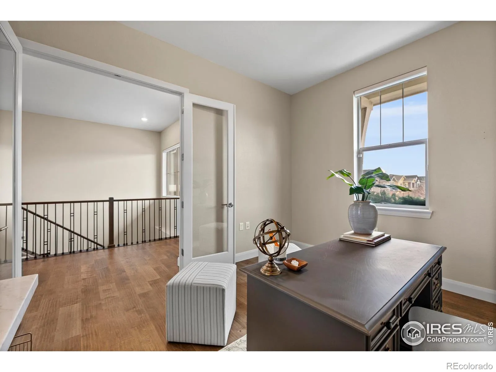 Discover refined ranch-style living in this south-facing Boulder Creek Builders home, perfectly set in Erie’s highly sought-after Colliers Hill – WEST EDGE community. With 10-foot ceilings on the main level, a flexible open layout, and spaces designed for both comfort and entertainment, this home offers low-maintenance ease and a welcoming neighborhood lifestyle. Inside, a great sunlit room with fireplace flows into a chef’s kitchen featuring a quartz island, KitchenAid stainless appliances, and a walk-in pantry. The main-level had two primary suites offering elegant four-piece baths and walk-in closets. Main level office with French-doors. Custom remote-control blinds – top down and bottom up. The finished basement expands the living space with a rec/media room, bedroom, full bath, and three generous unfinished sections for storage, a workshop, a gym and a potential 4th conforming bedroom. Step outside to a professionally landscaped backyard by J & S Landscape. Entertain with ease in the outdoor living space that includes an expansive patio featuring a hot tub, built-in grill/bar, and covered porch-all with mountain views and direct access to the community’s walking paths and open space. Over-sized attached two car garage with EV Charger outlet. Life in Colliers Hill is about more than just a home-it’s a vibrant community. Enjoy neighborhood happy hours, two community parks, extensive trails, and resort-style amenities including community pools. HOA services also include front yard care and snow removal, making everyday living seamless.
