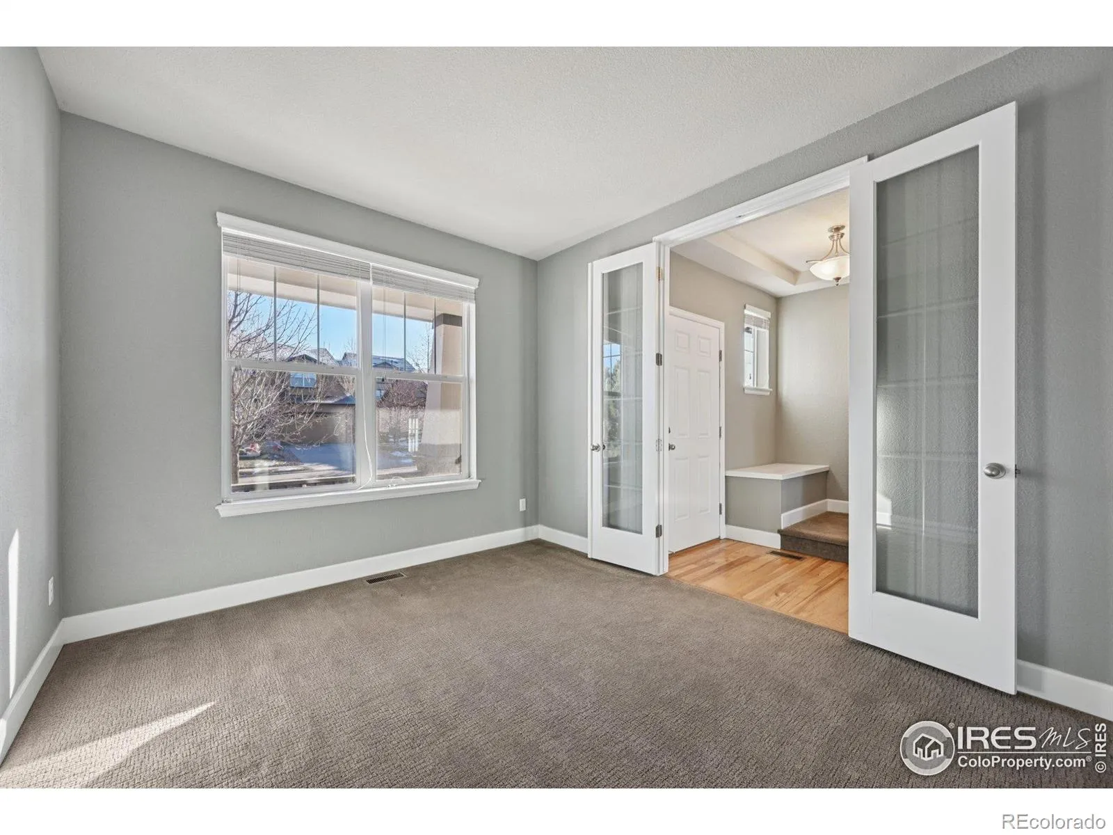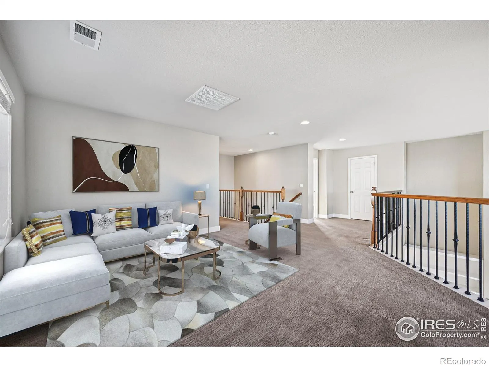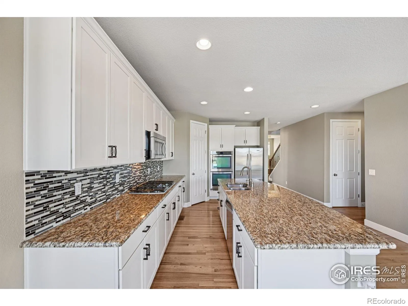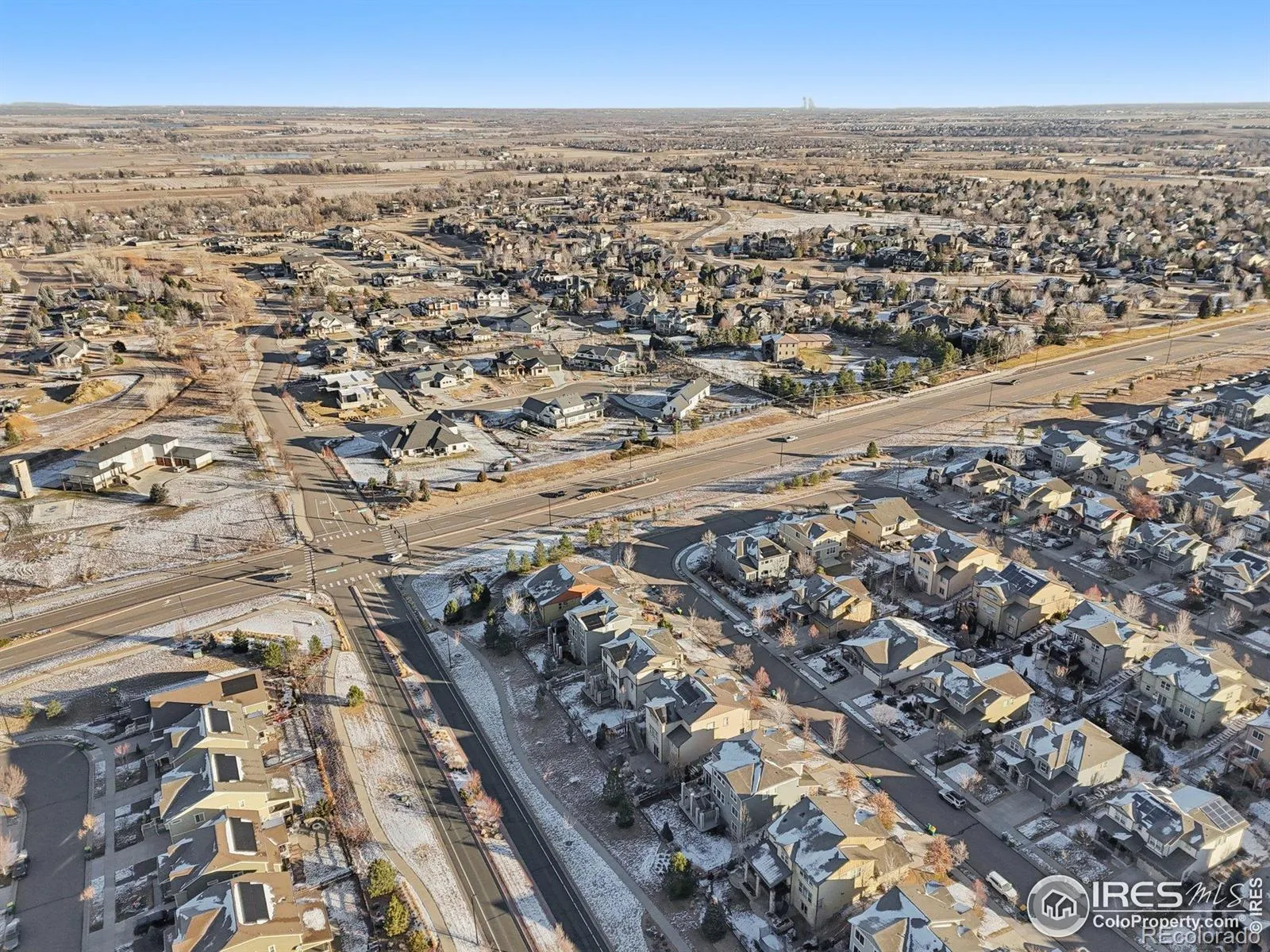 Exceptional 2 story in the desirable Flatiron Meadows community. Ideally set on a greenbelt lot, this gorgeous home blends timeless design, thoughtful upgrades and sweeping mountain views. Offering 4 beds, 4 baths, a finished walk-out basement and a 3 car garage, providing space and flexibility for today’s lifestyle. Striking curb appeal welcomes you with a stone accented facade, covered front porch and manicured landscaping. Inside, rich hickory hardwood flooring and a neutral palette create a warm, inviting feel. The bright 2 story great room features expansive windows showcasing stunning Front Range views and a stacked stone gas fireplace. Gourmet kitchen is a chef’s delight, designed for both daily living and entertaining, with slab granite countertops, large island with breakfast bar seating, 42″ cabinetry, mosaic tile backsplash, stainless steel appliances with a gas cooktop and double ovens and a generous pantry. The dining area with bay windows flows seamlessly to the deck, perfect for enjoying sunsets and snow capped mountain scenery. French glass doors off the foyer open to a private office. Upstairs, a versatile loft offers additional living space, along with 3 good sized bedrooms and a convenient laundry room with utility sink. The spacious primary suite features a raised tray ceiling, a 5-piece bath with soaking tub, walk-in shower, dual vanities and a custom walk-in closet. Finished walk-out basement expands your living options with a large family/rec room and access to a covered patio and landscaped backyard. With no neighbors directly behind, enjoy open space, privacy, and mountain views. Walk-out also includes a large bedroom, full bath and ample storage. Upgrades galore, owned solar panels, high-efficiency dual HVAC systems, and a drywalled 3 car tandem garage. Short walk to the elem. school, trails leading to parks and lakes. Only minutes to shopping, dining and retail. The ideal combination of location, lifestyle and views. See Virtual 3-D tour.