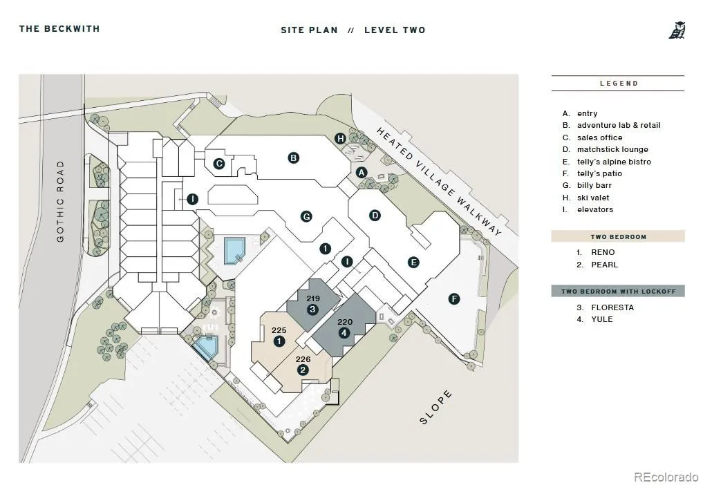 Perfectly positioned on the end cap of the second floor, to-be-built Beckwith Residence 226 offers 1,671 square feet across the Pearl floor plan, with the ideal blend of style, sunlight, and seamless access to the heart of the action. Inside, the wide-open floor plan is drenched in natural light, thanks to its sunset-facing orientation and oversized windows that frame spectacular views of Whetstone Mountain and the dynamic resort environment below. The layout includes two bedrooms, two-and-a-half baths, a spacious primary suite, and an open-concept kitchen, living, and built-in banquette dining area, all designed for effortless gathering, entertaining, or relaxing after an epic day on the slopes. Three private balconies— off the living room, primary suite, and guest suite extend your living space outdoors, where you can sip coffee at sunrise or toast the alpenglow in the evening. Inside, you’ll find mountain-modern interiors inspired by Crested Butte’s natural surroundings, complemented by playfully curated design moments. The gourmet kitchen features stone countertops, high-end appliances, a pantry, and a built-in banquette dining area. Meanwhile, a custom entry bench with cubbies provides convenient storage of gear. The primary suite is a serene retreat with a millwork wardrobe, private balcony, and spa-inspired en-suite bath complete with Kohler fixtures and luxurious finishes. Additional features include a stylish powder room, stacked washer and dryer, and secure owner’s storage. The Beckwith is the only ski-in, ski-out resort in the heart of Crested Butte’s base area, with world-class amenities including a four-star, community-inspired hotel, seamless ski valet, luxurious spa, adventure concierge, and private mountain & social community, Club Beck. A multi-phased reimaging of Elevation Hotel & Spa will transform almost every space at the resort, with residences anticipated for completion in the Winter 26-27 ski season.