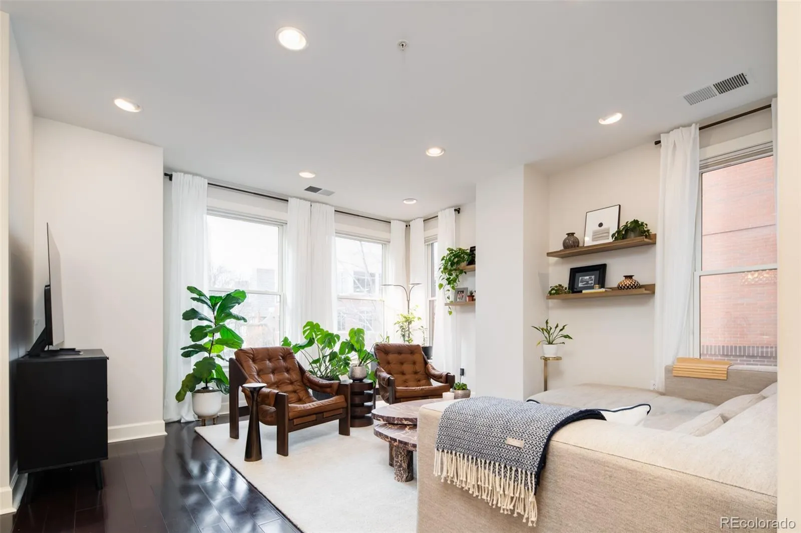 Inside, hardwood sprawls underfoot – starting in the formal entry and into the open-concept entertaining spaces. The eat-in kitchen has been updated with clean finishes and stainless-steel appliances; the adjoining dining area opens to a covered balcony while the inviting living room completes these spaces with a serene area to relax. The primary suite is a peaceful sanctuary including a spa-like, en-suite bathroom. The walk-in closet has been outfitted to perfection – in addition to a secondary primary closet. The bathroom features classic tile work – dual sinks, a soaking tub and separate shower with a built-in bench. A spacious secondary bedroom is down the hall for additional privacy – perfect for guests or a home office – including another custom walk-in closet. For additional convenience there is a new stacked washer/dryer in the unit. The home has been tastefully updated and is beyond move-in ready. Perfectly situated in the heart of Uptown, Swallow Hill Condos is just blocks from dining and amenities along 17th Avenue—Stueben’s, Ace Eat Serve, Watercourse, and more. Enjoy the convenience of Marczyk Fine Foods and its beloved beverage shop just around the corner. Experience the best of city living on a quiet, tree-lined street with easy access to Downtown, City Park, Cheesman Park, RiNo, and beyond.