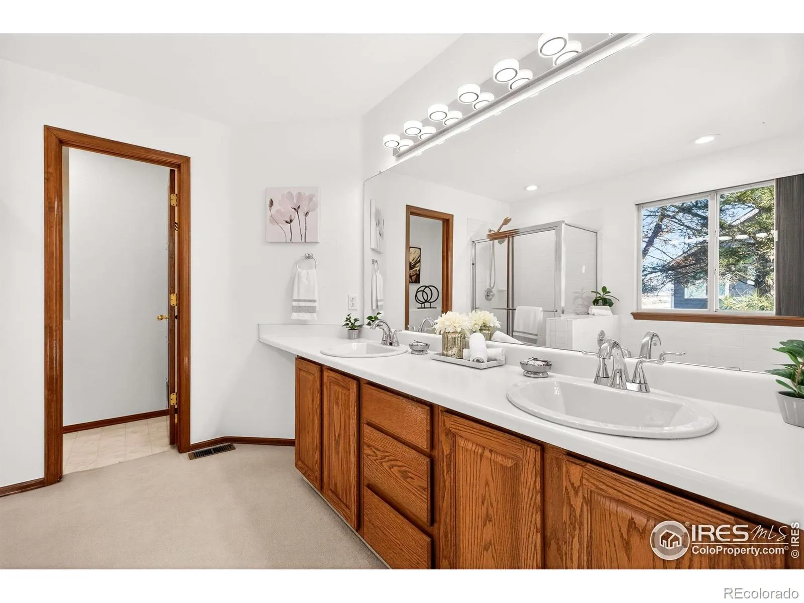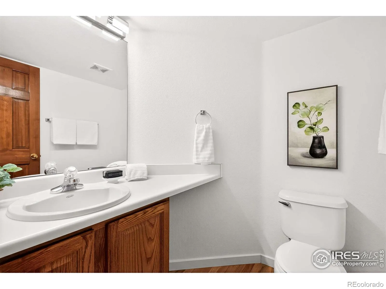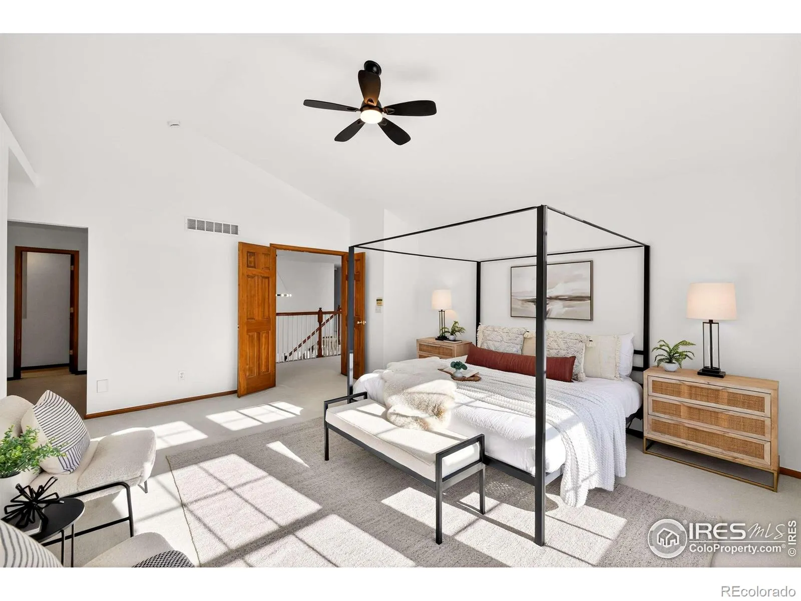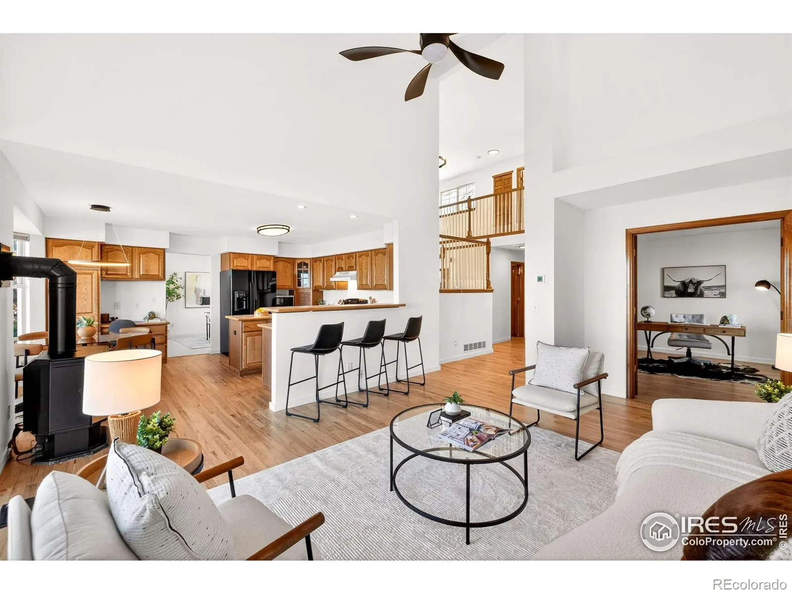 The View House. Unbeatable, unobstructed views stretch across protected open space to the foothills and white-capped Back Range mountains beyond. Tucked quietly at the end of a cul-de-sac, this home offers exceptional privacy, a spacious backyard with mature landscaping, and no HOA. Eye-catching wood floors span the main level, anchoring an open-concept family room and kitchen designed for everyday living and effortless entertaining. The kitchen features a prep island, a breakfast nook, an electric oven/stove, a built-in desk area, and expansive rear windows that frame the views. French doors open to a private home office, while formal living and dining rooms provide flexible gathering spaces. Upstairs, three secondary bedrooms are bright and generously sized with abundant closet storage, plus a conveniently located washer and dryer. The primary suite is filled with natural light from oversized windows and a vaulted ceiling, and includes a five-piece bath with soaking tub and a large walk-in closet. Meticulously maintained, with new lighting throughout, this thoughtfully updated and beautifully positioned home completes the picture.