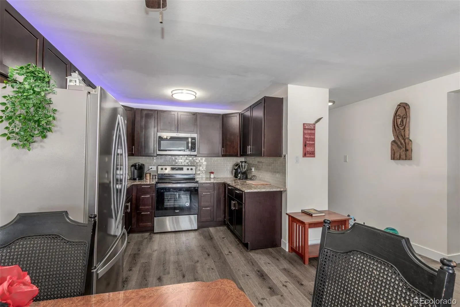 Experience the charm of Windsor Gardens with this beautiful 2-bedroom, 2-bath condo! Step into a spacious, open-concept layout featuring elegant wood-look flooring and a neutral color palette throughout. The kitchen is a chef’s dream, complete with ample cabinetry, granite countertops, a stylish tile backsplash, and stainless steel appliances ready for all your culinary creations. Retreat to the inviting primary suite with soft carpet, a private bath, and a walk-in closet. Enjoy your morning coffee or evening relaxation on the covered deck with stunning golf course views. Residents also have access to fantastic community amenities, including the golf course, pool, fitness center, and more. This condo won’t last, schedule your showing today!