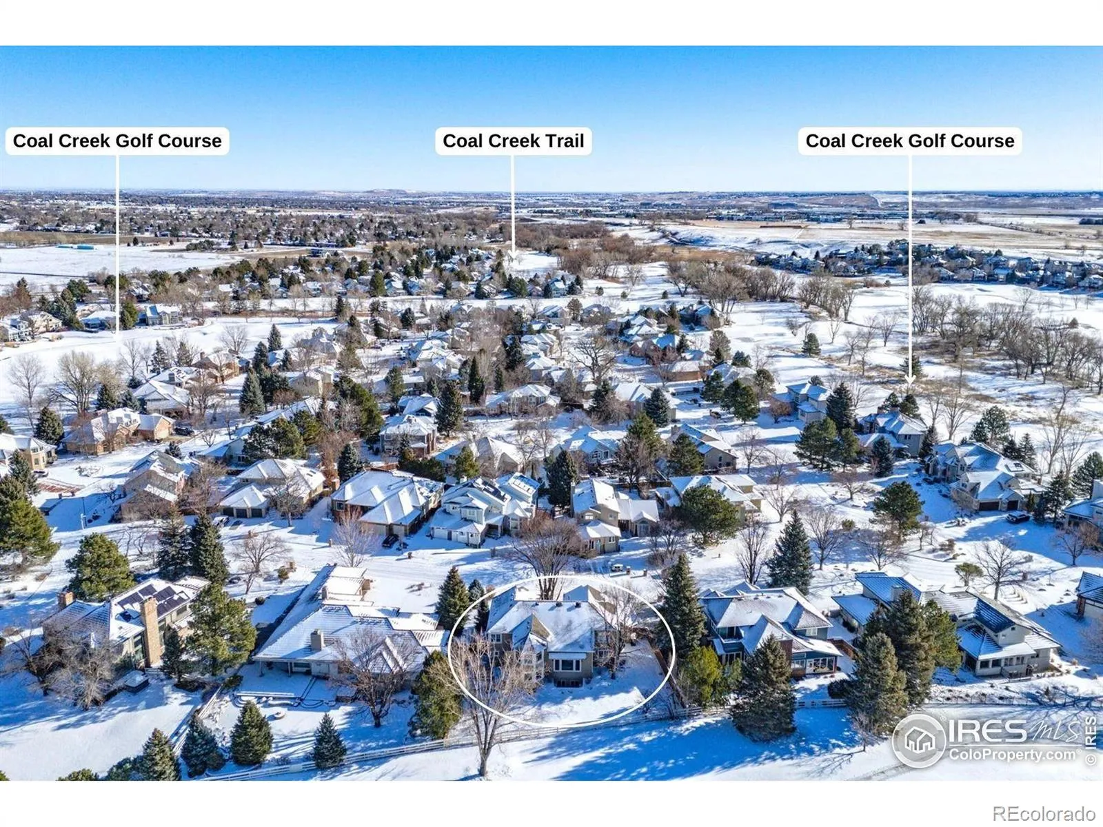Perfectly positioned along the 10th tee of the Coal Creek Golf Course, this stunning home in the Island at Coal Creek Ranch showcases breathtaking mountain views and timeless craftsmanship. From the inviting front porch to the impressive curb appeal, every detail welcomes you home. Inside, the formal living room and expansive family room, each with its own fireplace, create warm, inviting spaces, while the family room offers views of the mountains. At the heart of the home, the chef’s kitchen is a masterpiece, featuring top-of-the-line appliances, including a 6-burner gas range, double ovens, a beverage fridge, custom cabinetry, an oversized walk-in pantry, and a large island. Upstairs, the primary suite is a true retreat, featuring a sitting rotunda with sweeping western views, a spa-inspired 5-piece en-suite bath, and a walk-in closet. Three additional bedrooms complete the upper level. Seamlessly blending indoor and outdoor living, the backyard oasis is an entertainer’s dream, complete with a fire pit, built-in grill, and picturesque sunset views over the golf course. With an oversized 3-car garage, spacious mudroom with laundry, dedicated home office, and thoughtfully designed living spaces, this home embodies elevated living in one of Louisville’s most coveted locations.