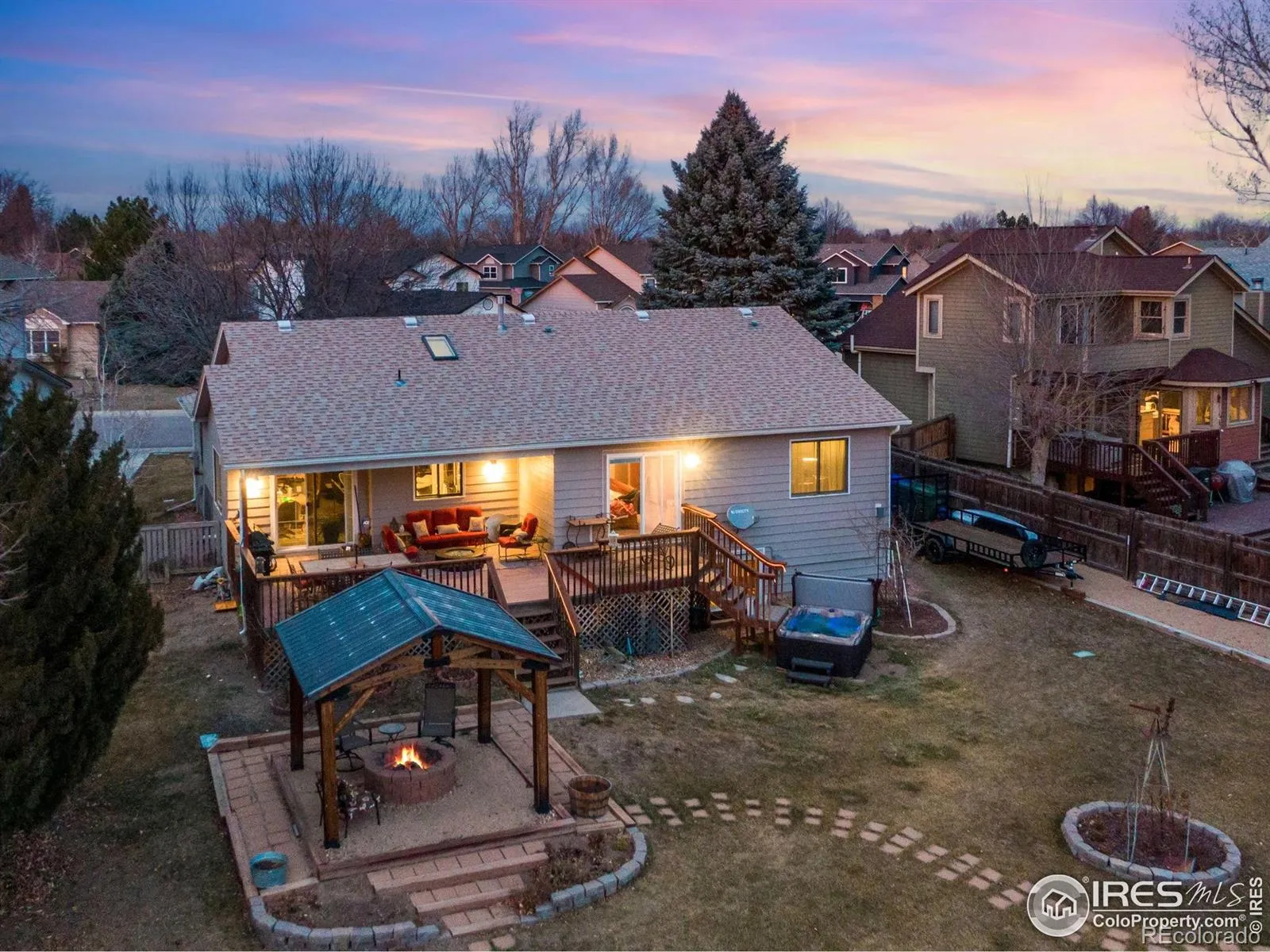 Tenant occupied and in GREAT condition. Professional interior photos will be taken once tenant vacates. Incredible ranch style property located in northwest Loveland. Come see why Loveland, Colorado, is frequently voted as one of the best places to live or retire in America. Known as the City of Love, Loveland is the gateway to Estes Park and Rocky Mountain National Park, and offers outstanding restaurants, entertainment, breweries, community festivities, trails, parks, and recreation, with something for everyone. This ranch style home is situated on a quarter acre lot, and backs to open space. Exterior features include a large deck, a wood burning fire pit, a fenced yard, hot tub, sprinkler and drip system, and mature landscaping. The main floor offers a spacious foyer, a step-down family room with gas fireplace, an open kitchen with center island, two bedrooms, laundry, and a primary bedroom with private retreat, patio access, walk in closet, and private full bath. The garden level basement is fully finished, and includes a family or recreation room, a three-quarter bath, a fourth bedroom, and a finished game closet or office. A large crawl space provides ample additional storage. The home also includes an oversized two car attached garage, with opener and remote. Mechanical features include a highly efficient furnace, central air conditioning, and a newer water heater. For a full list of features, floor plan, or to schedule a private showing, please contact the broker via email.
