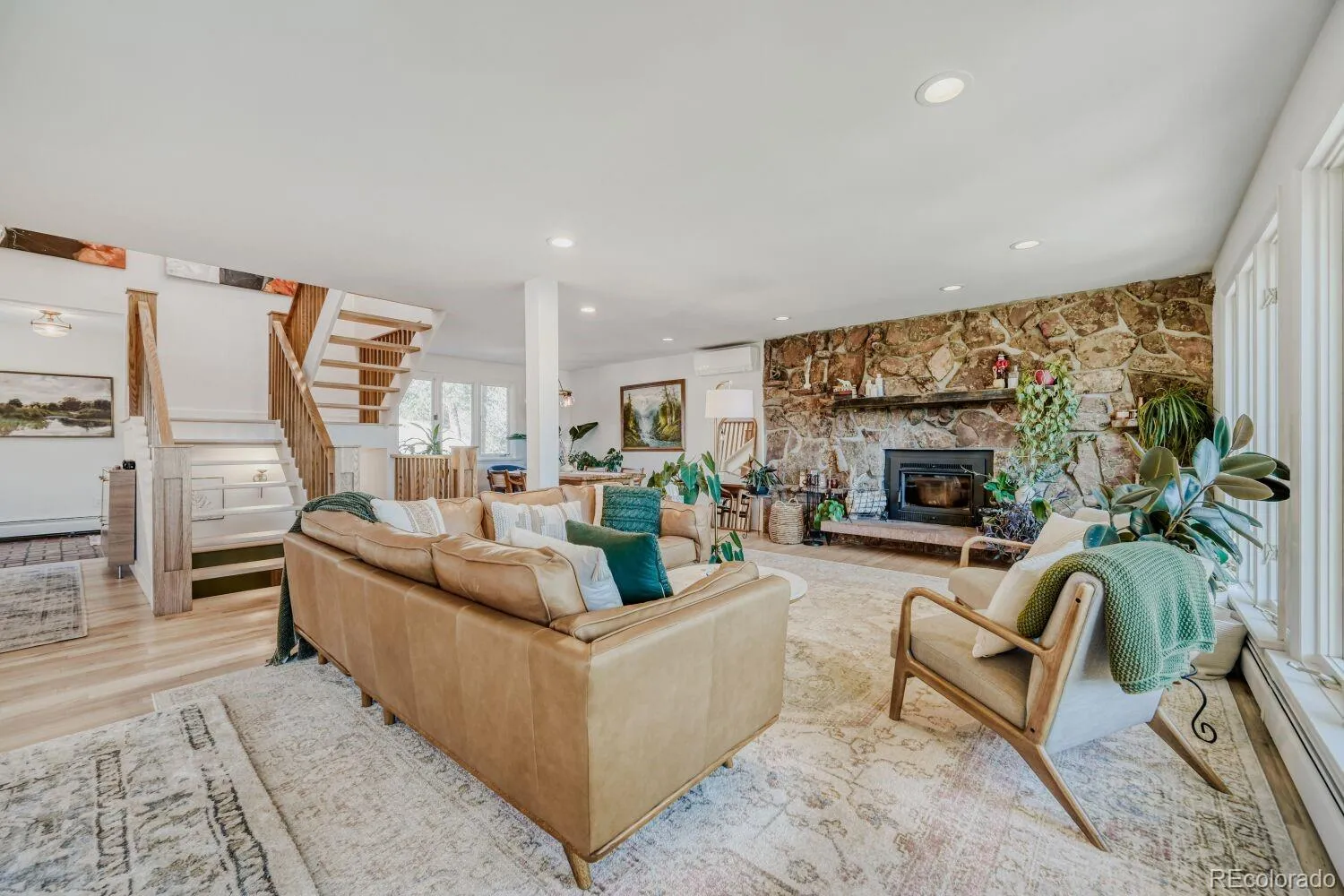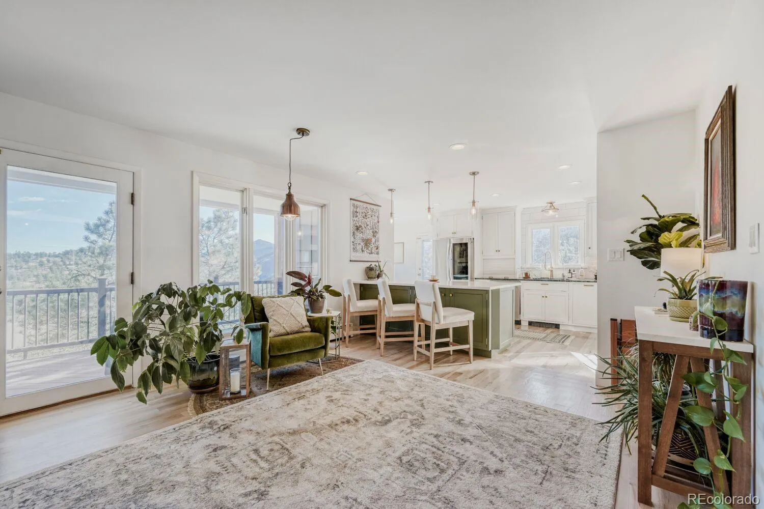 Spectacular home with breathtaking mountain views is a tranquil retreat just 10 minutes from Pearl Street. Natural light flows through this beautifully remodeled home w/newer hardwood floors, updated wood staircase, railings, custom newel posts, newly remodeled primary bathroom w/marble floors, dual shower heads, large free standing soaking tub, double sinks w/new quartz counters & skylights. This home has a charming Scandinavian feel. A chef’s dream with a remodeled gourmet kitchen complete with both quartz & granite counters, Viking range w/gas burners, Viking vent hood, microwave drawer, large farm sink, large cabinets w/ pull-out drawers for pantry items & a wonderful coffee bar w/ cabinets & mountain views. The cozy wood burning fireplace surrounded by stone invites you to sit down, relax & enjoy the views. Lots of outdoor spaces for gathering & enjoying the views including a 1,300 sq ft. deck w/ a built-in hot tub (New in 2023), both covered & uncovered deck areas to take in the views, a lovely balcony off the large primary bedroom w/ vaulted ceilings to enjoy sunsets, convenient covered deck off the family room & flagstone patio off the walk-out lower level. Mountain views from nearly every room in the house. 4 bedrooms plus an office w/ a cozy pellet stove & mountain views. Large steam shower seats at least 4 people. This home has been beautifully updated w/ remodeled main floor bathroom w/ beautiful tile. Lots of windows & skylights throughout bring the outdoors in. Solar panels are owned for low electricity bills. Back up generator. Large 3 car garage & a wonderful wine cellar. Custom light fixtures, new paint inside & out in 2024. This home is a gem! New roof & septic system in 2023. EV charger in garage is included. Great location close to Betasso Preserve for cycling, hiking & horseback riding. A short drive to Boulder Creek for fly fishing & more trails to enjoy. 30 min drive to Eldora Ski Resort. Short walk to school bus stop. Showings start 1/28.