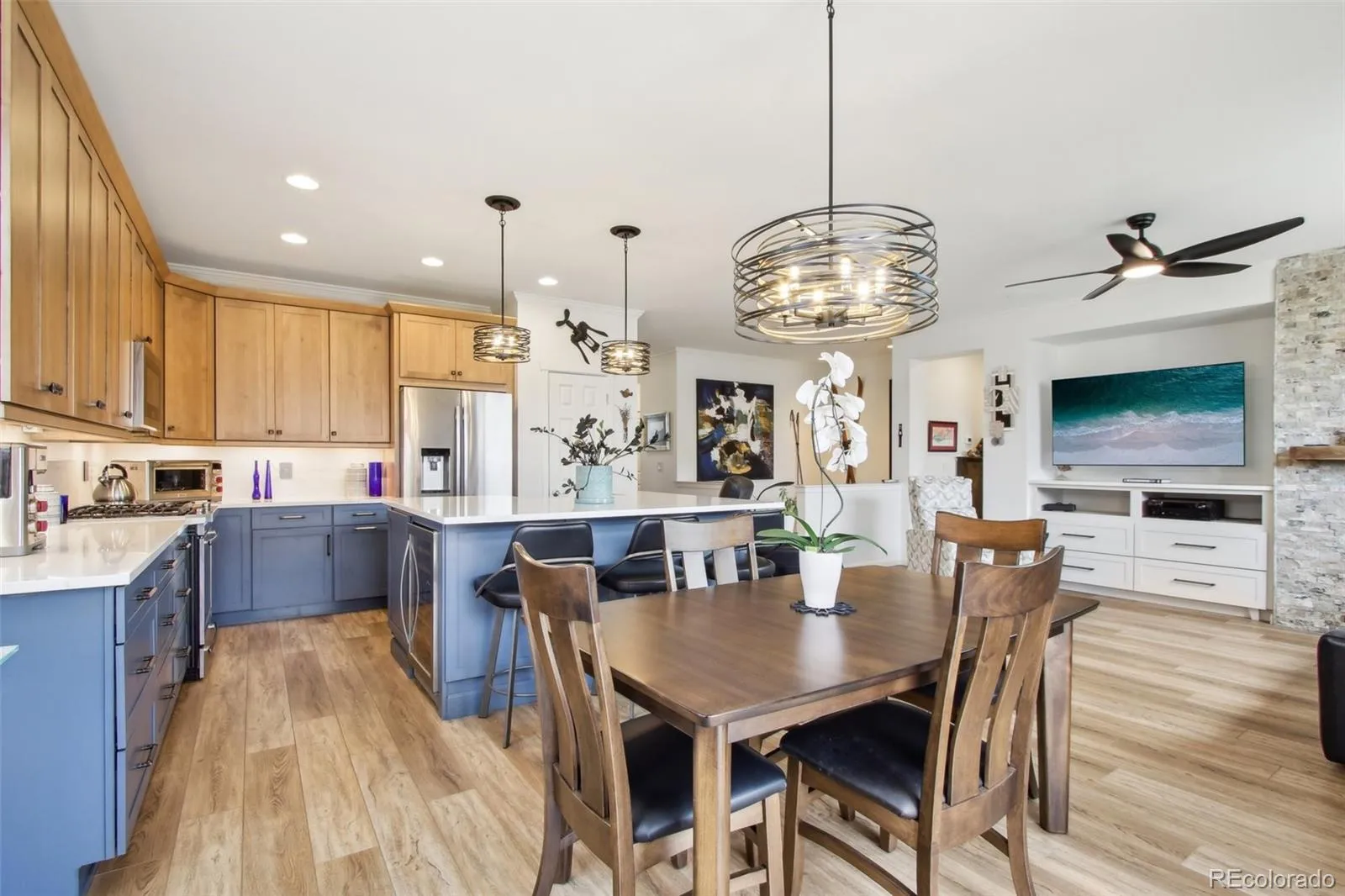 Welcome to this impeccably renovated ranch in the coveted Whisper Creek subdivision of Arvada, where luxury meets livability. With 4 bedrooms, 3 baths, and over 2,300 sq ft of refined living space, this home strikes the perfect balance between comfort and elegance. The light-filled open living area is anchored by a gas fireplace surrounded by a floor to ceiling stone accent wall – ideal for both cozy evenings and entertaining guests. The gourmet kitchen is a chef’s dream with custom high-end finishes throughout. This home features numerous updates and has an abundance of community amenities such as a clubhouse, pool, tennis courts, parks and walking trails with a low HOA of $45/month. Easy access to Denver or Boulder, and close to shopping, dining and the mountains!