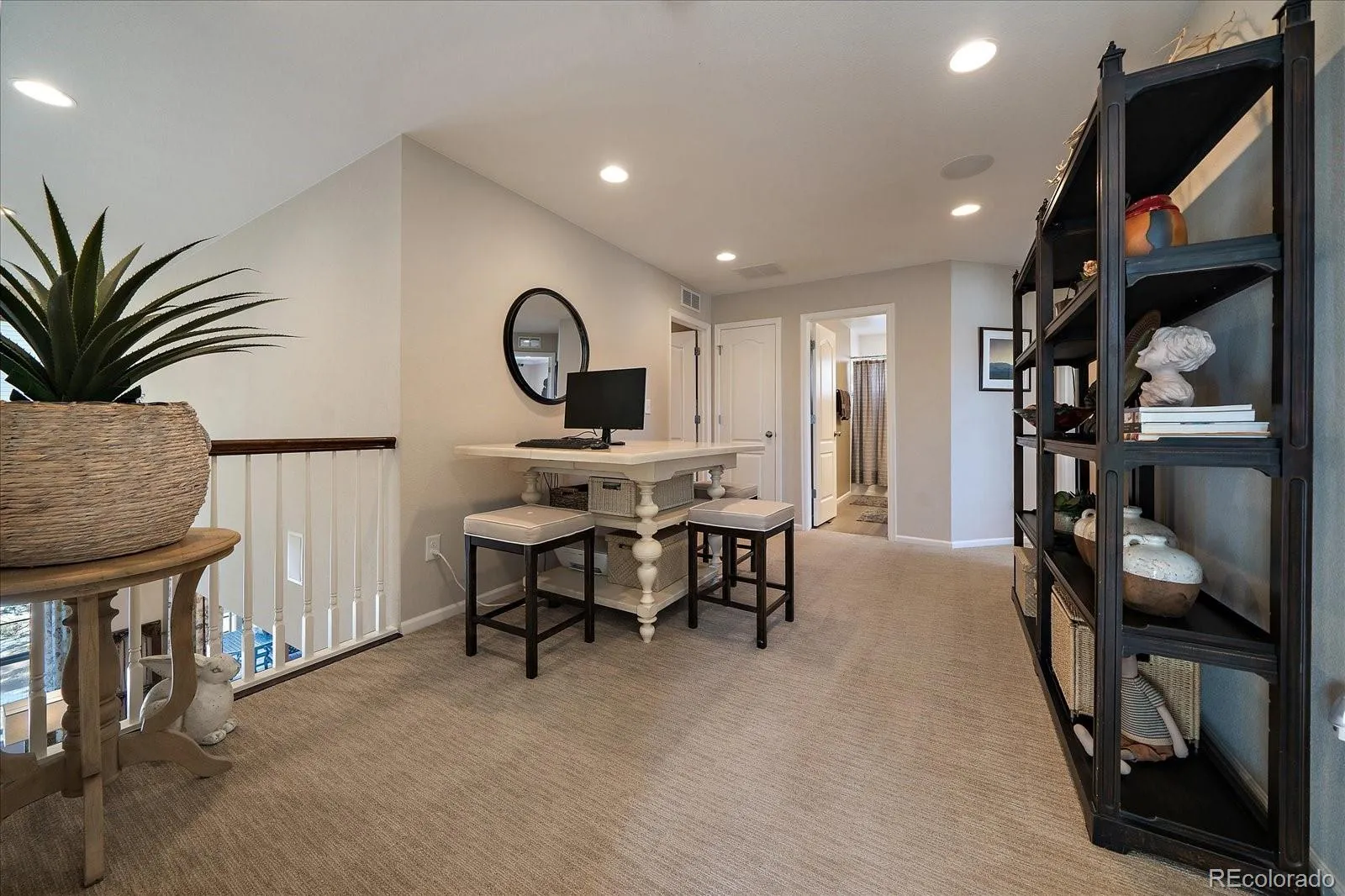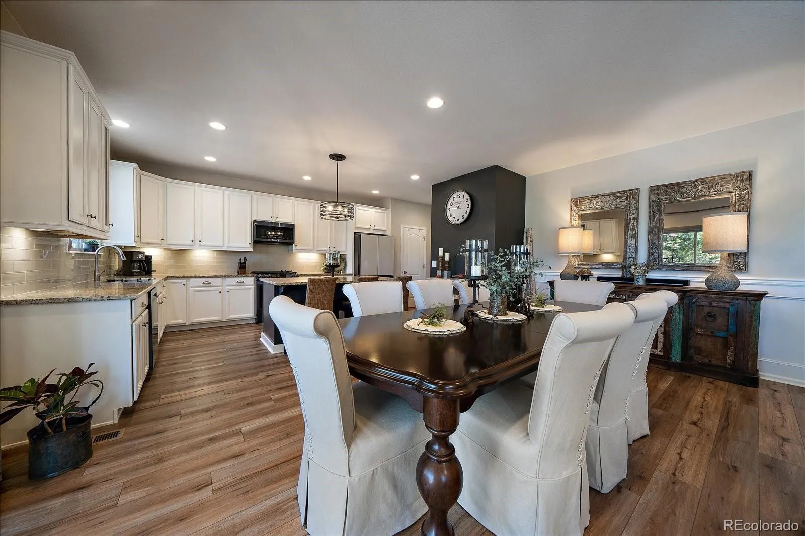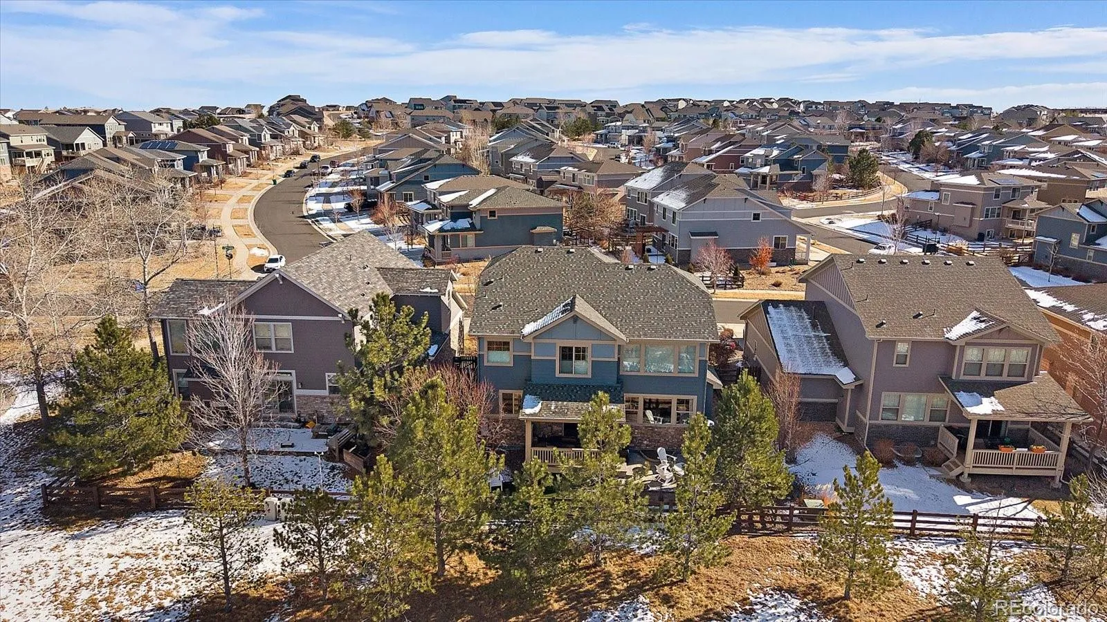 You will absolutely love this move in ready former model home located in the wonderful Southshore community! This home backs up to open space and Anchor Point Park where you have immediate access to the trails that lead to the Aurora Reservoir and the clubhouse. The beautifully landscaped yard has hardwired lighting and can be controlled with an app. The entry lights follow the sun and moon. But wait until you step into this gorgeous home! The high ceilings and windows bring in loads of light. The floors have been newly replaced with luxury vinyl. The walls have been recently painted and some lighting replaced. The kitchen is a dream with stunning granite, large island and amazing new appliances. The mudroom is a great space to store shoes and coats as well as doggie leashes if needed. Upstairs you will find a perfect loft for additional office or flex space a very large primary bedroom with a luxurious 5 piece bath, plus 2 more large bedrooms and another full bath. You will especially appreciate the laundry conveniently located on this floor.
