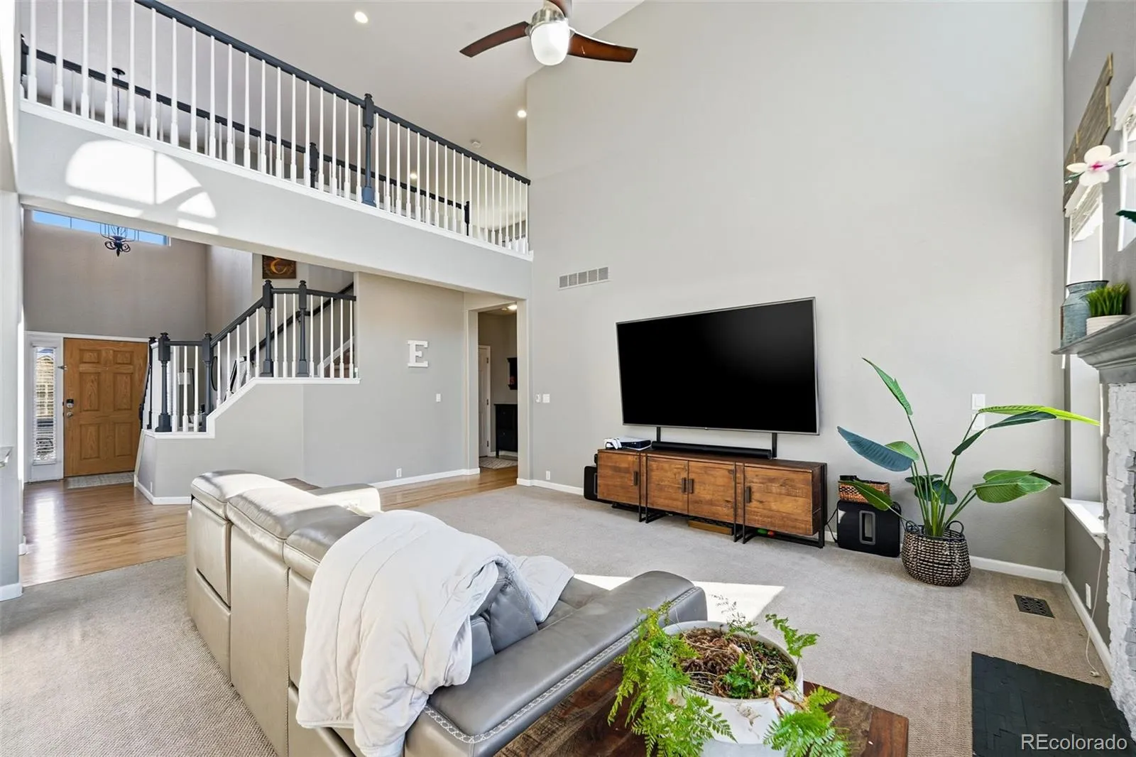 Step into this inviting two-story home in the heart of Canterberry Crossing, where comfort meets convenience. The open-concept main floor has vaulted ceilings and is designed for everyday living and entertaining, the kitchen features granite countertops, stainless steel appliances, hardwood floors, and a cozy eat-in nook. A spacious dining area, main floor bedroom, and convenient laundry add to the functionality. Upstairs, the primary suite is tucked away across a catwalk for some added seclusion. It features a five piece on-suite bath and closet. On the other side of the catwalk, two additional bedrooms with walk-in closets, a full bath and are connected by a versatile loft—perfect for a home office or play space. The finished basement offers endless possibilities with a large activity area, generous storage, an extra bedroom, and a full bath. Outside, enjoy summer evenings on the patio surrounded by mature landscaping that creates a private backyard retreat. Beyond your doorstep, explore scenic trails that lead to downtown Parker, spend sunny days at the community pool and rec center, or tee off at the nearby Blackbear golf course. This home blends thoughtful design with access to the best of Parker living!