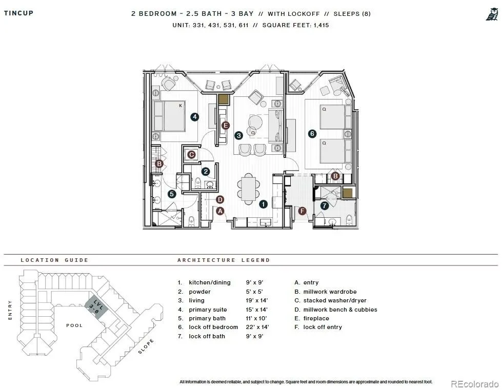 Spanning 1,415 square feet, to-be-built Beckwith Residence 431 is a well-appointed two-bedroom, two-and-a-half-bath residence that blends functionality and flair in one of The Beckwith’s most scenic locations. Thoughtfully laid out with a lockoff suite featuring a private entrance, this home offers flexibility without sacrificing privacy or comfort. Positioned to capture southwestern light, the residence’s two private balconies provide expansive valley views, with Whetstone Mountain beautifully framed between the towers. Whether you’re enjoying your morning coffee or toasting the sunset, the connection to the outdoors is effortless and inspiring. Inside, discover light-filled and airy interiors that echo the alpine meadows of Crested Butte. Wide-plank wood flooring and a sleek electric fireplace create a cozy yet refined living space. The gourmet kitchen is outfitted with natural stone countertops, high-end appliances, and ample cabinetry, making it perfect for everything from quiet nights in to entertaining après-ski. The primary suite offers a serene escape with balcony access, millwork wardrobe, and a spa-style en-suite bath. The secondary suite—styled as a second primary and lockoff— features an en-suite bath, and its own balcony access. A custom millwork bench and cubbies in the entry provide practical storage, while a stacked washer and dryer and secure owner’s gear storage round out the essentials for mountain living. Residence 431 delivers a perfect home base for your next Crested Butte adventure. The Beckwith is the only ski-in, ski-out resort in the heart of Crested Butte’s base area, with world-class amenities including a four-star, community-inspired hotel, seamless ski valet, luxurious spa, adventure concierge, and private mountain & social community, Club Beck. A multi-phased reimaging of Elevation Hotel & Spa will transform almost every space at the resort, with residences anticipated for completion in the Winter 26-27 ski season.