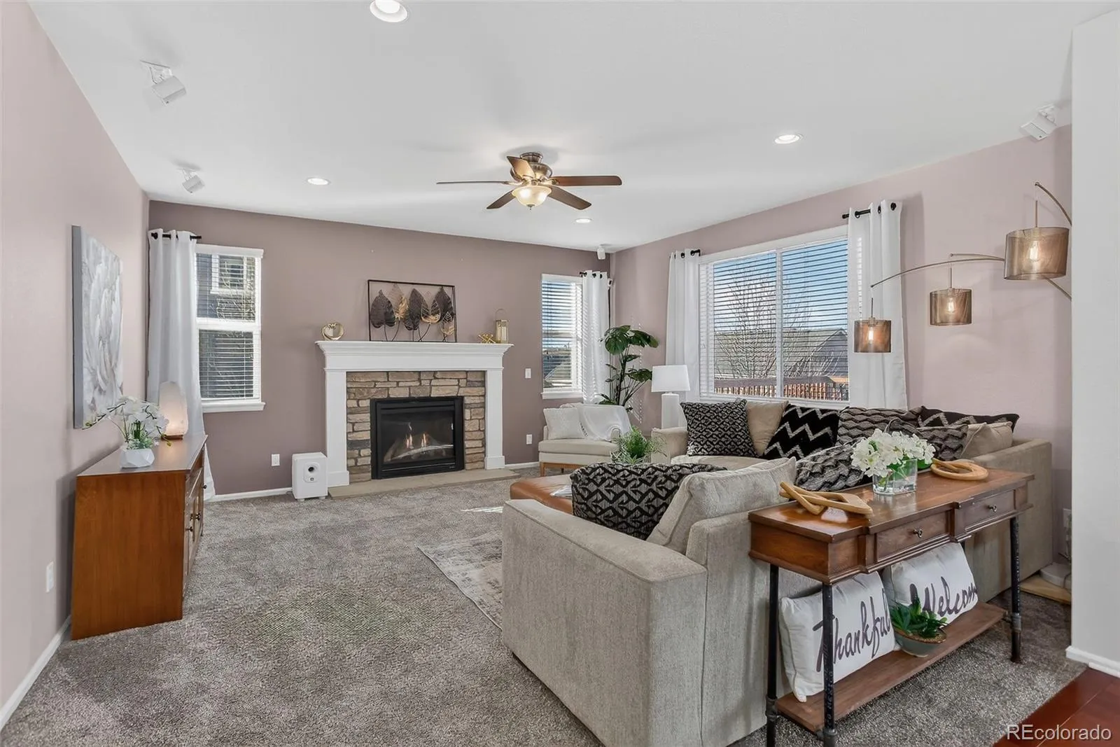 Upstairs, the home opens into a practical and comfortable living space with four bedrooms, a generous primary suite with a 5-piece bath, a main bath with double sinks, upstairs laundry, and a large loft with a closet that adapts to whatever you need; playroom, lounge, or extra bedroom. The full unfinished walk-out basement is ready for future ideas, already equipped with a bath rough-in, and even includes the exercise equipment so you can put it to use right away. Outside, the south facing three-car garage and front porch welcome the sun throughout the day. Set in a community with no metro district and an HOA that maintains the trails, open space, park, and playground, the neighborhood feels peaceful, cared for, and easy to enjoy. Recent updates including a security system through Vivint, a high efficiency furnace installed in 2023, and new exterior paint in 2025 bring peace of mind. With its inviting spaces, thoughtful layout, and beautiful views, this is a home that quickly becomes easy to love.