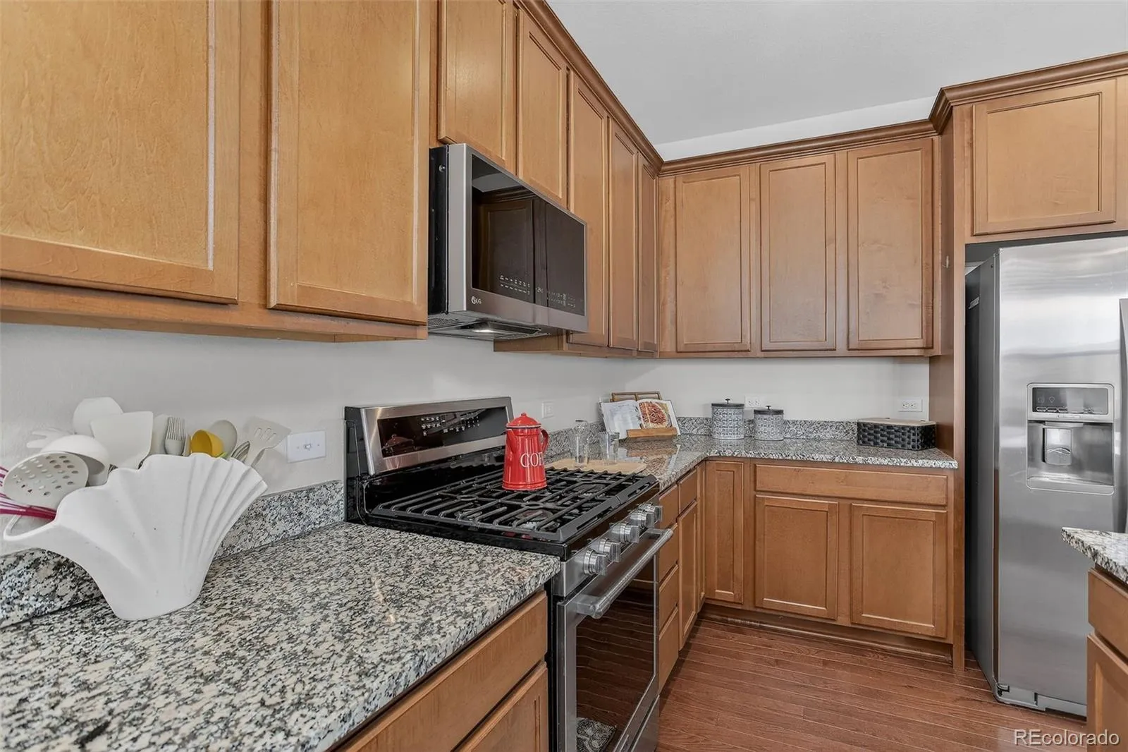 From the moment you approach this Brantner Village home, it feels like a place meant to be lived in and enjoyed. Morning light pours into the vaulted dining area, drawing you toward the sweeping mountain views just beyond the 8′ patio door, where a deck with an awning becomes the perfect spot for quiet starts and colorful sunsets. Off the entry, a calm and private office offers space to focus, while the family room’s gas fireplace creates a natural place to settle in at the end of the day. The kitchen brings everyone together with its 42″ cabinets, granite countertops, corner sink, island, and pantry; a layout made for everyday cooking and easy conversation. A convenient half bath wraps up the main level.