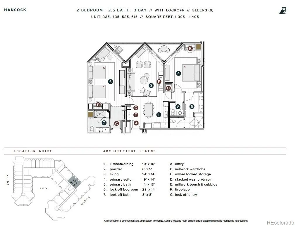 Beckwith Residence 435 is a premier two-bedroom residence within The Beckwith’s exclusive ski-in, ski-out collection of 49 to-be-built homes. With an exterior northeast-facing orientation, this Hancock floor plan spans 1,397 square feet and offers a rare, elevated perspective capturing a wide panorama of sky, trail, and alpine beauty. This thoughtfully designed residence features two bedrooms, two-and-a-half baths, a private lockoff, and an open-concept kitchen, living, and dining area that seamlessly blends indoor comfort with outdoor connection. Oversized windows flood the space with natural light, while three private balconies— off the living room, the primary suite, and the lockoff— offer ideal perches for morning coffee, midday sun, or après-ski stargazing. The gourmet kitchen is outfitted with natural stone countertops, high-end appliances, a pantry, and generous space for culinary exploration and entertaining. A custom millwork bench and cubbies at the entry make gear organization effortless. The primary suite is a private sanctuary with a millwork wardrobe, private balcony, and a spa-inspired en-suite bath featuring Kohler fixtures and radiant finishes. The secondary bedroom and lockoff suite provides another peaceful escape with mountain-inspired textures, en-suite bath, and elevated privacy. Additional conveniences include a stylish powder room with bespoke wall coverings, in-unit laundry with stacked washer/dryer, and secure owner’s gear storage. The Beckwith is the only ski-in, ski-out resort in the heart of Crested Butte’s base area, with world-class amenities including a four-star, community-inspired hotel, seamless ski valet, luxurious spa, adventure concierge, and private mountain & social community, Club Beck. A multi-phased reimaging of Elevation Hotel & Spa will transform almost every space at the resort, with residences anticipated for completion in the Winter 26-27 ski season.