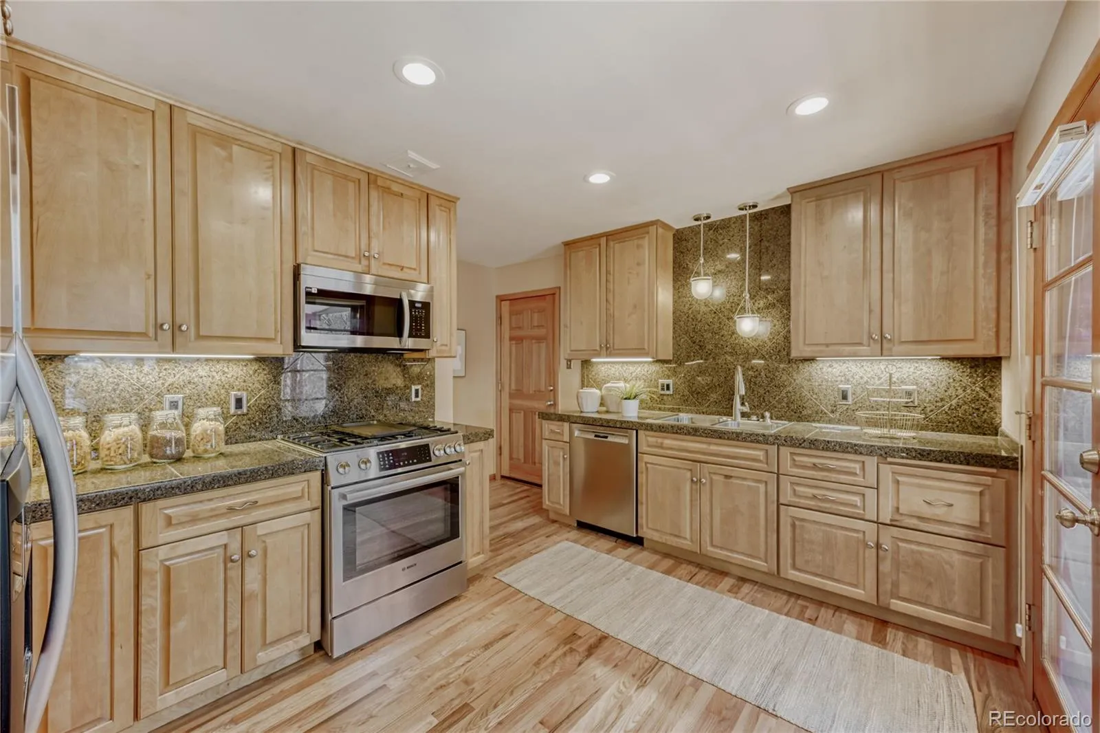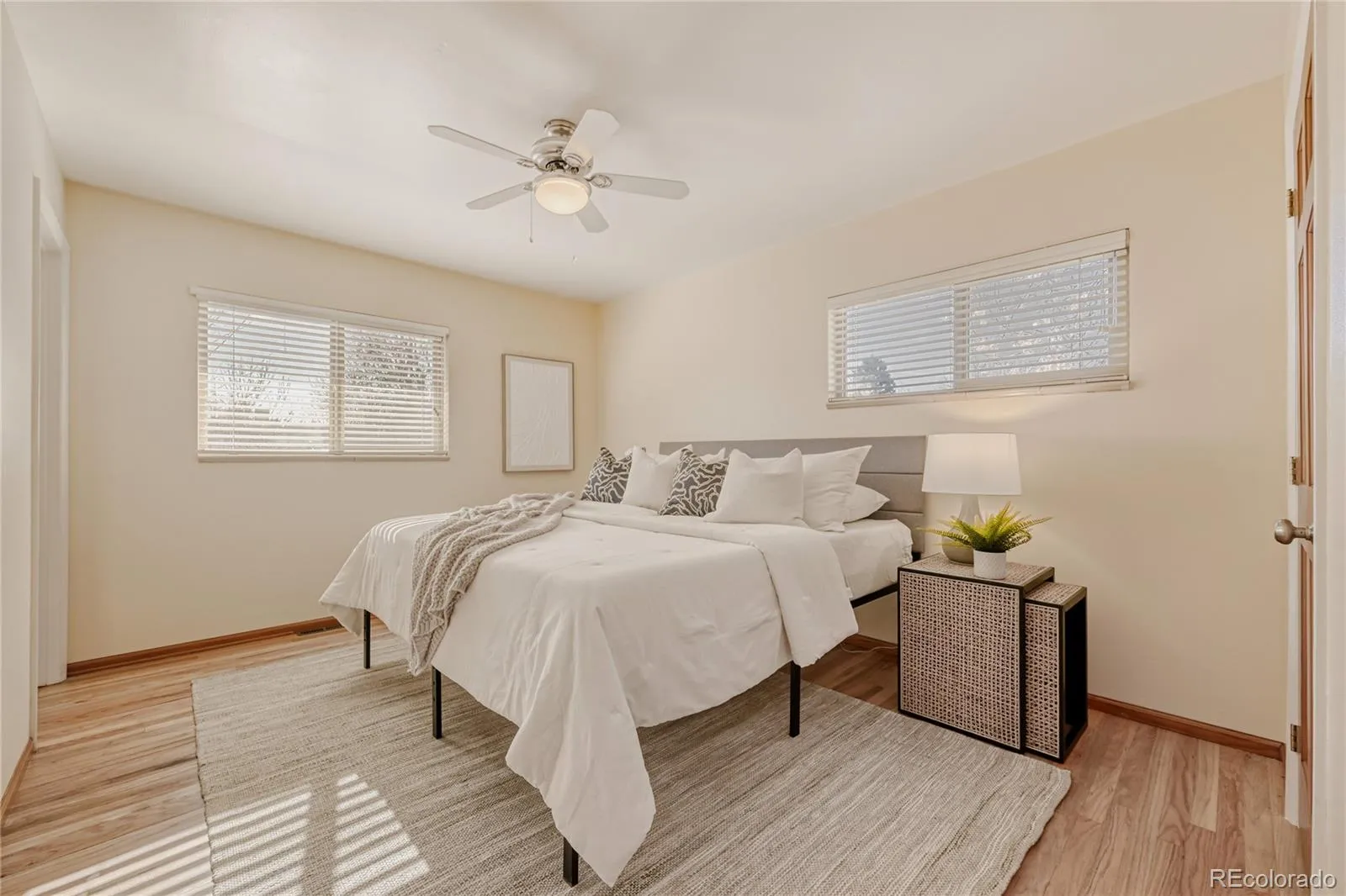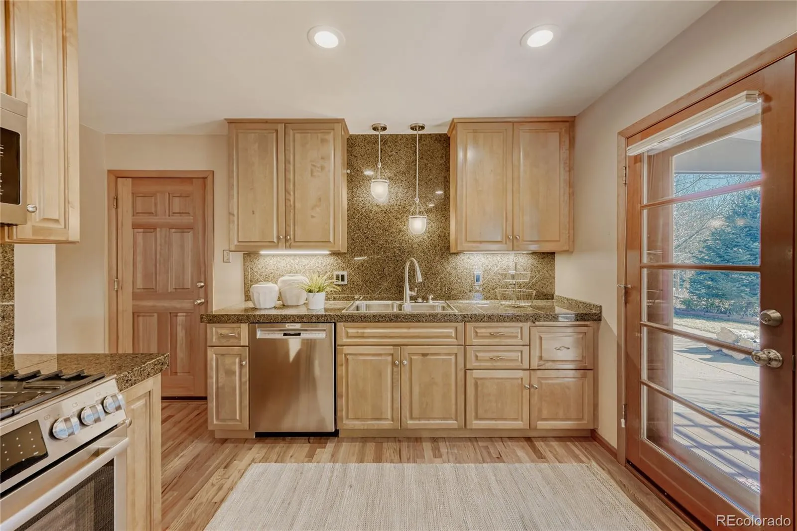 If you’re tired of walking through white-on-gray remodels, where everything looks new but nothing feels solid – this impeccably maintained Hutchinson Hills home is exactly what you’ve been waiting for. Quality & pride of ownership are evident throughout, from the real hardwood floors to the solid-core doors that create a home that feels substantial, warm & enduring. The main level offers generous living & dining spaces & a spacious kitchen w/ thoughtful upgrades- featuring quality maple cabinetry, granite tops, stainless appliances & direct access to the deck. And the best part? You can’t see the dirty dishes from the family room. Three bedrooms & two upgraded bathrooms are located on this level, including a spa-like renovated hall bath with a zero-entry roll-in shower. The front bedroom is currently styled as a private office with French doors & a closet, offering flexible use. The primary bedroom suite serves as a calm retreat with a private bath.The finished basement expands the home’s livability w/ 2 additional bright conforming bedrooms w/daylight windows, a flex room & a spacious family room anchored by a cozy brick fireplace-creating an ideal layout for multi-generational living, guests, or work-from-home flexibility. Large laundry room with a walk-in storage room adds both function & comfort. Major systems have been proactively maintained, with furnace, AC & hot water heater replaced in 2020. The extra-deep garage includes built-in shelving for additional storage & features a new overhead door and opener. Outside, the backyard offers privacy with mature trees and vibrant seasonal flowers. The covered deck + large patio provide space for gatherings of 1–100 and room to enjoy Colorado’s outdoors year-round. Don’t miss the charming detached studio-ideal for a playhouse, craft room, potting shed, or workshop. Located just minutes from Rosamond Park, DTC & Cherry Creek Reservoir, with easy access to Downtown, Buckley Air Force Base, Light Rail, I-25, and I-225.
