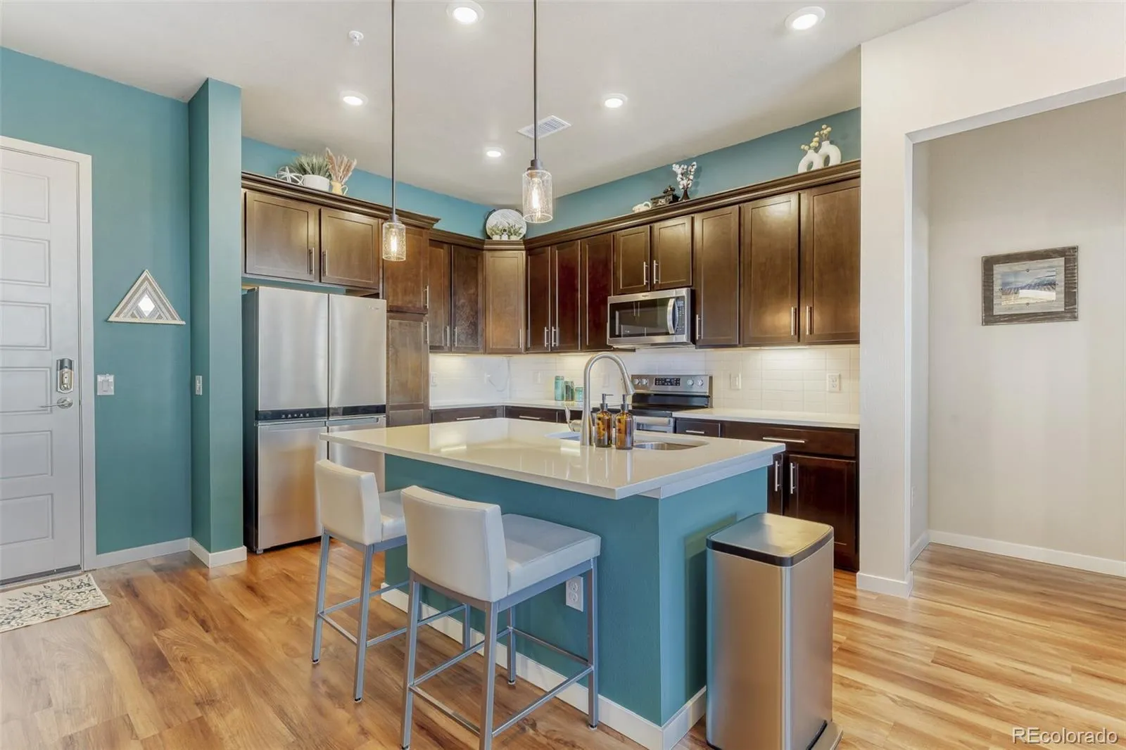 Location seals the deal – direct access to Downtown Denver or DTC, making this an ideal home base for work, play, and everything in between. The enclave you are in includes a park and restaurants (Bar Louie, Social, and Starbucks)! Your new home also provides access to walking and biking trails to High Line Canal. This is not just a condominium — it is a front-row seat to Colorado living. Come see it yourself!