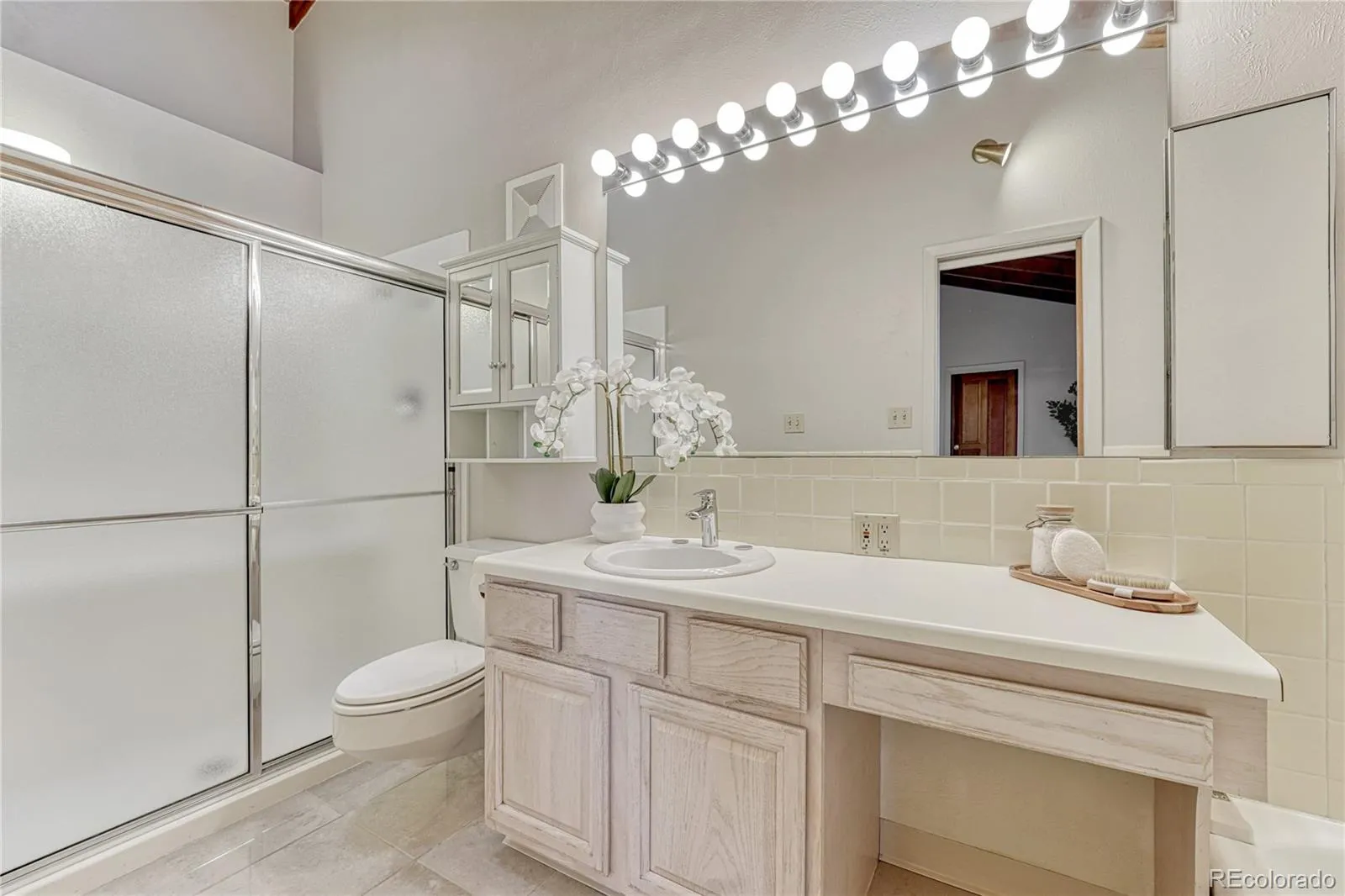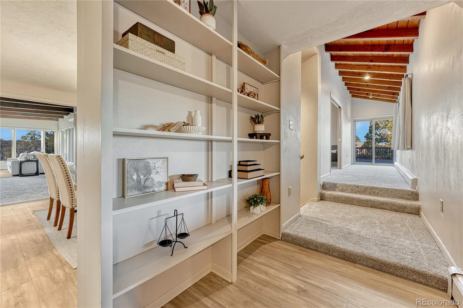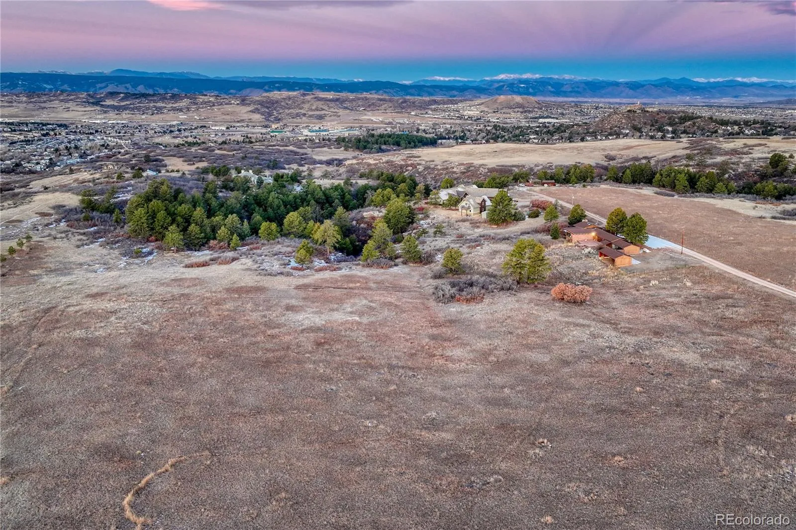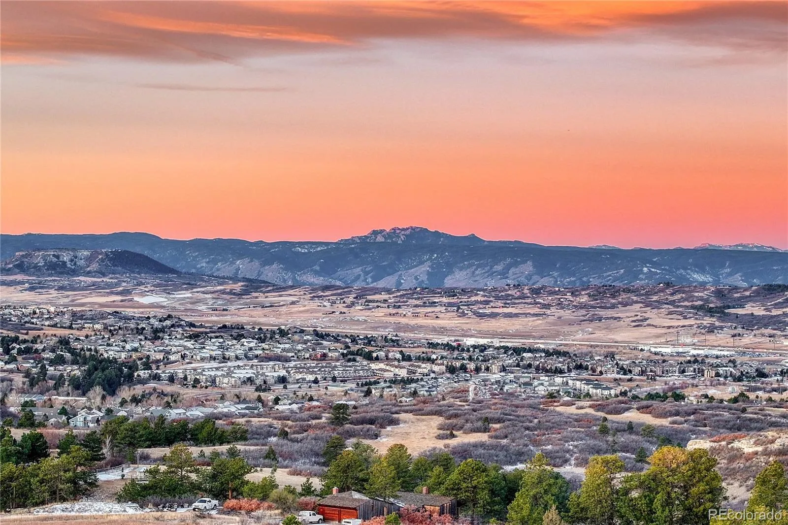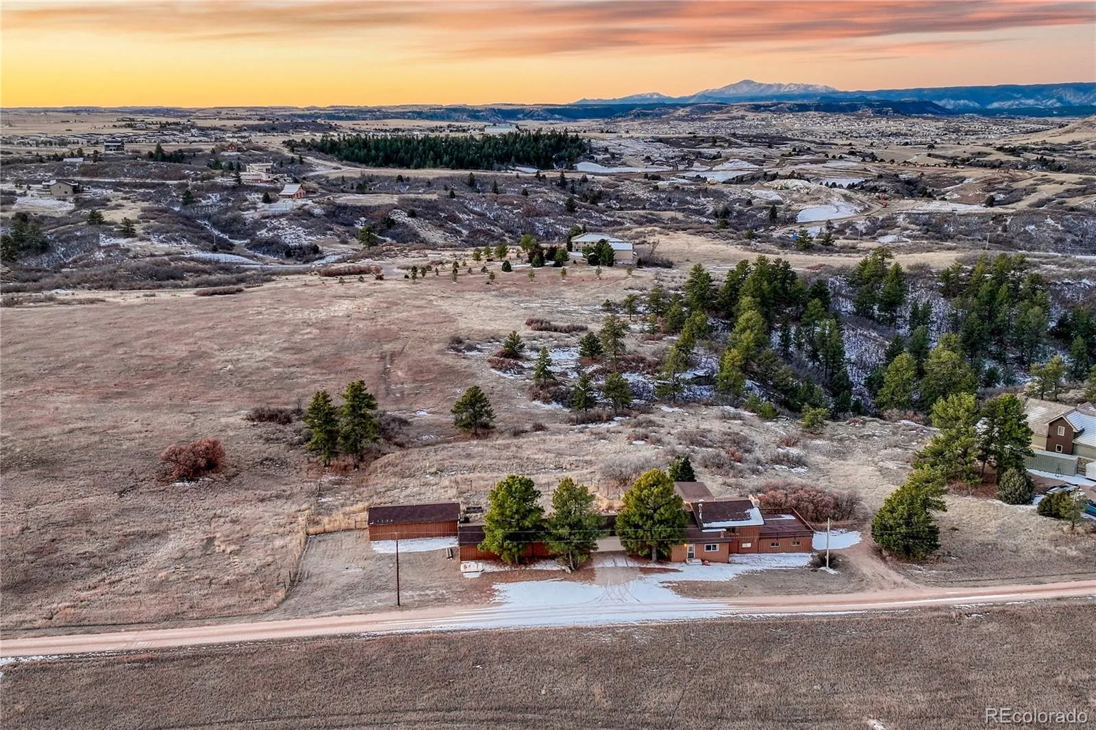 A truly rare opportunity to own nearly six acres of in-town land with completely unobstructed, forever-protected western views of the Rocky Mountains—including iconic Pikes Peak. Tucked away on a private driveway, this property offers a level of privacy and seclusion that feels miles from the city, yet remains conveniently close to everything. Originally built in 1968, the home blends timeless character with thoughtful modern updates. Architectural details include exposed brick, hand-hewn beams, and vaulted ceilings that create warmth and authenticity throughout. Recent renovations include a beautifully remodeled kitchen and main-floor bathroom, complemented by brand-new paint throughout, brand-new luxury vinyl plank flooring and brand-new carpet. Designed to fully embrace its extraordinary setting, the property features three distinct outdoor living spaces: an expansive front deck perfect for soaking in the mountain sunsets, a rooftop deck for elevated views, and a flagstone patio ideal for quiet mornings or evening gatherings. The land allows for horses, offering a rare combination of space, freedom, and in-town living. Major system updates in recent years include a new roof, septic system, a 6-zone boiler, and additional mini-splits providing efficient air conditioning. This is a one-of-a-kind property where views, land, and location come together—an opportunity that truly cannot be replicated.