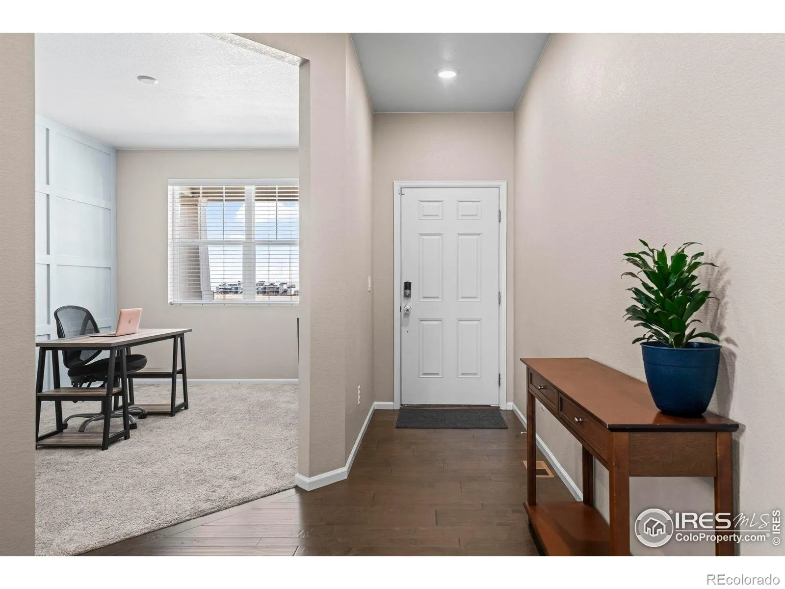 Amazing two story home in the heart of desirable Colliers Hill! This nicely appointed home features a functional layout with space for everyone’s needs. The moment you step inside, will enjoy the light and bright airy feel with modern paint and colors. Convenient main level office or study/flex room. Enjoy the extensive hardwood floors throughout the main level. Spacious great room with gas fireplace adjoins the kitchen for open concept floor plan, great for entertaining. The upgraded kitchen features granite counters, tile backsplash, large island, pantry and stainless appliances. Upstairs you will appreciate the large bonus loft area and 4 spacious bedrooms. The primary suite features a spa like luxurious 5 piece bath with large soaking tub and walk in closet that conveniently attaches to the upper laundry room. The finished basement features a large media area, bedroom and modern and sleek 3/4 bathroom. Enjoy summer evenings in the nicely landscaped backyard or at one of the community pools. This home is conveniently located close to parks, pools and top of the line community fitness center. Colliers Hill is just around the corner from new schools, trails and minutes from the quaint downtown Erie with shops and restaurants. Welcome home to this turn-key gem!
