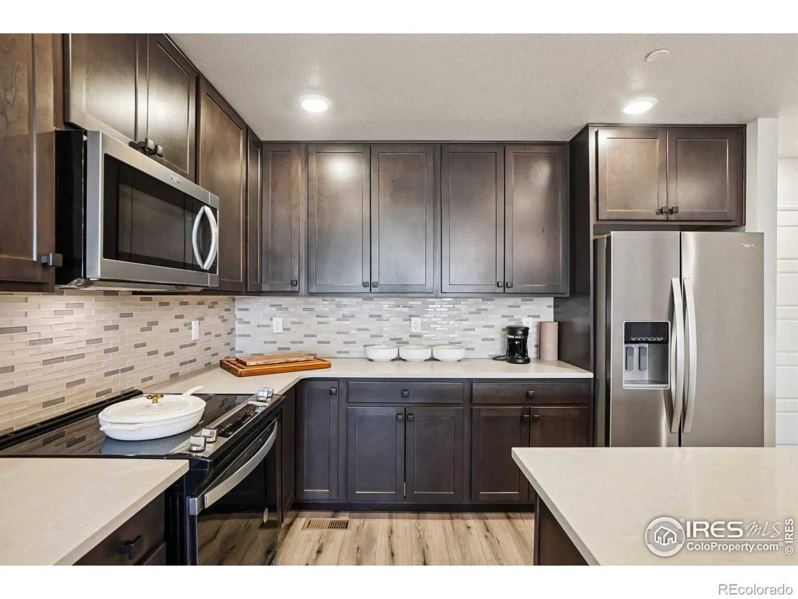 Welcome to this beautiful 2 story home nestled in the highly desirable Rogers Farm community conveniently located just minutes from amenities. Enjoy contemporary comfort, low exterior maintenance and just steps away from trails meandering through open space with mountain views in this walkable and vibrant neighborhood. Step up to the inviting covered front porch and then inside to a bright, open floor concept main level where sleek finishes and thoughtful details elevate everyday living. A spacious chef’s kitchen features a generous island, solid quartz countertops, plenty of storage in the cabinetry and pantry, stainless-steel appliances and breakfast bar seating; all ideal for entertaining and casual dining alike. A seamless flow extends into the living and dining spaces, anchored by ample natural light from large double pane windows. Upstairs, is the primary suite with a walk-in closet and a private 3/4 bath. There are 2 additional upper level bedrooms that share a full bathroom and there’s a convenient laundry completing the upstairs. Built by award winning Boulder Creek Neighborhoods, this energy efficient home features an attached 2 car EV ready garage, high efficiency systems, Energy Star appliances, low-E windows and smart thermostat. Situated on a low-maintenance, landscaped lot with a fenced yard, enjoy relaxing on the covered front porch or wander to the nearby park or to the hiking and biking trails just steps away that thread through the scenic surroundings. Walkability to Downtown Superior means dining, boutique shopping, and community events are all within easy reach. Not to mention schools, everyday shopping, and retail conveniences just minutes away. Easy, quick access to public transit and Highway 36. Quick move-in! See Virtual 3-D Tour.