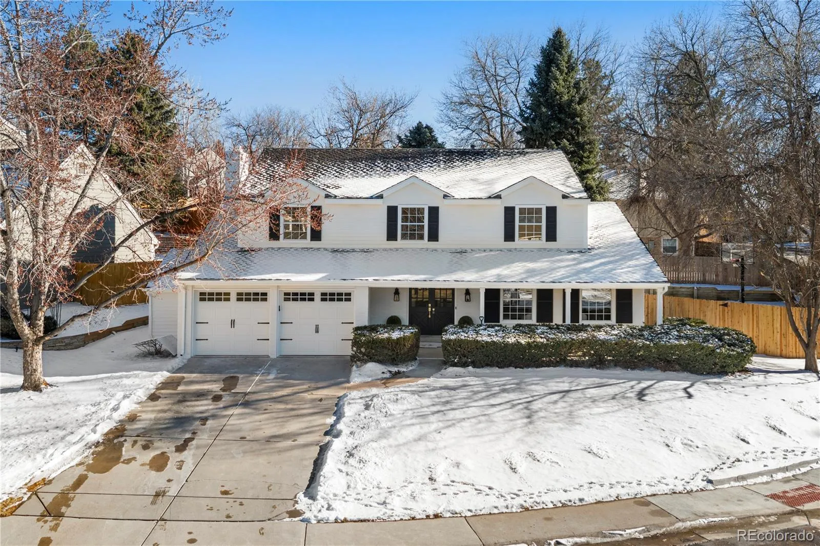 Welcome to 7154 S Newport Way, a fully remodeled, move-in-ready residence in the heart of Homestead in the Willows, one of Centennial’s most established, sidewalk-lined neighborhoods with mature trees and a strong sense of community. Thoughtfully renovated in 2025–2026, this home delivers best-in-class finishes, timeless materials, and enduring craftsmanship—offering true turnkey living with meticulous attention to detail throughout. The main level is designed for everyday comfort and effortless entertaining, featuring a family room with a custom coffered ceiling, a separate living room with an updated fireplace, and a beautifully curated kitchen with Café appliances, thick quartz countertops, custom cabinetry, and a dedicated coffee bar with wine refrigerator. A formal dining room, renovated powder bath with new tile and fixtures, and a custom mudroom complete the space. Upstairs, four bedrooms include a spacious primary suite with a fully renovated bath, double vanity, walk-in shower, and walk-in closet. Three additional bedrooms share a well-appointed full bath. The finished basement adds valuable flexibility with a large living area, a conforming fifth bedroom with egress, and a beautifully finished bathroom—ideal for guests or extended living. Outside, enjoy a large fenced backyard with refreshed landscaping, basketball court, new pavers and mulch, a newly stained deck, and space to relax, play, or gather. Additional upgrades include refinished wood floors, new carpet, updated electrical, all-new lighting, new doors and hardware, new interior and exterior paint, new garage door, updated plumbing fixtures throughout, butcher-block laundry counters, and new washer/dryer. Located within the Cherry Creek School District, this home offers walkable access to neighborhood pools, parks, trails, and tennis courts, with convenient proximity to the Denver Tech Center, shopping, and dining—an exceptional opportunity in one of Centennial’s most desirable neighborhoods.