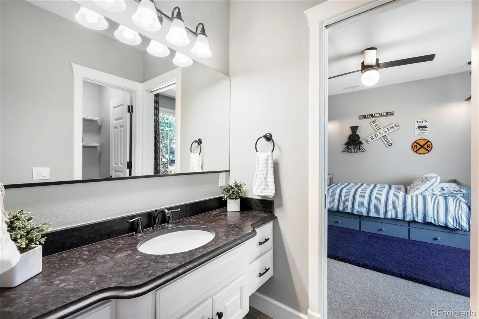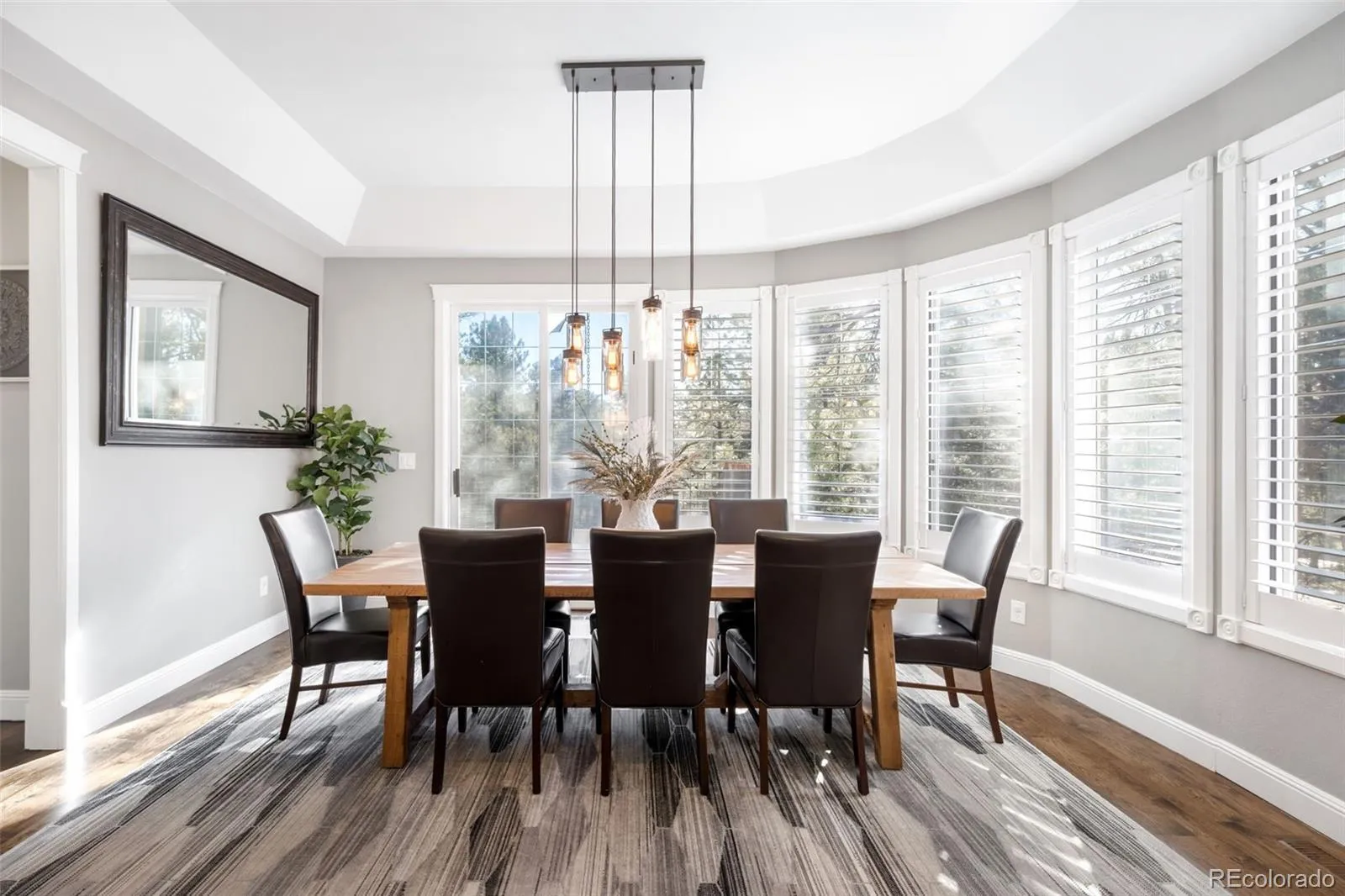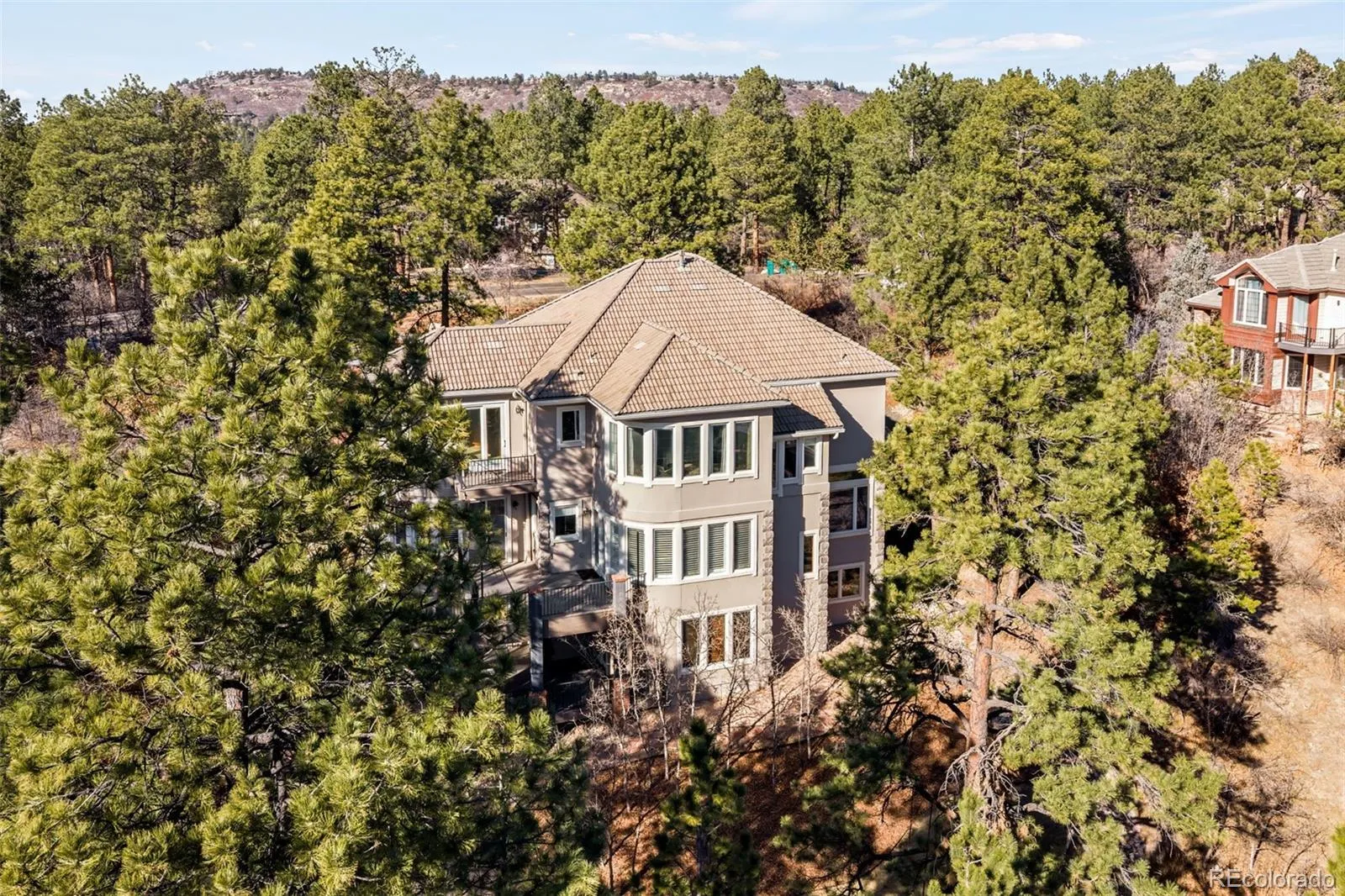 South facing, private 0.83 acre, 5 bed/ 5 bath home within the gated Village at Castle Pines on Prospect Drive. The chef’s kitchen features a custom eat-in island, breakfast nook, six-burner gas range with dual ovens, additional oven/microwave stack, and butler’s pantry flowing to formal dining room and open living room. The main level wraps into a spacious family room that is anchored by a floor to ceiling brick fireplace and built-in shelving, a French door office with a dedicated fireplace and half bath, and a convenient laundry room (complete w/ laundry chute!). The upper level offers a rare four-bedroom layout with a palatial primary suite featuring a fireplace, a private deck, walk-in closet, and 5-piece bath with double vanities, heated floors, soaking tub and a steam shower. Three additional bedrooms upstairs, with two that share a well-appointed Jack & Jill bathroom and another with a private en-suite bath. The finished walkout lower level serves as a premier guest or entertainment retreat, offering a private bed/bath, steam shower, an open seating area with a fireplace, and a kitchenette bar with its own dishwasher, wine cooler, built-in oven and microwave. Exterior provides excellent privacy with multiple decks, seasonal water feature, irrigated gardens and lawn space surrounded by mature pines and scrub oak. Oversized 3-car garage with plenty of storage cabinetry and floor coating. This home’s high-performance infrastructure includes a newer furnace and A/C (2020), a state-of-the-art heat pump with a backup gas furnace and humidifier (2023), interior fire sprinkler system, 2 radon mitigation systems, and impressive storage capacity. Village residents enjoy a lifestyle of convenience and luxury just minutes from Castle Rock and DTC, with full access to world-class golf and amenities, 24/7 guard-gated security, fitness center, swimming pools, tennis/ pickleball courts, and miles of private hiking and biking trails. Call listing broker for private showing.