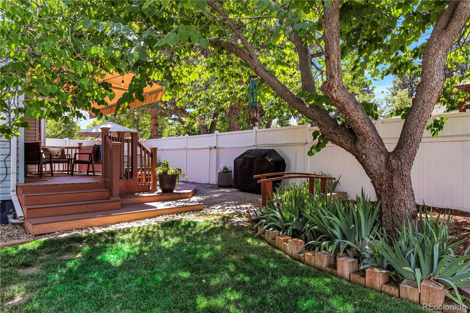 Outside, the front yard is xeriscape done right, with self-watering raised beds ready for flowers, herbs, or your summer veggie grow-up. The private backyard is a year-round favorite, featuring perennial blooms, shady trees, and a brand-new awning over the large patio—ideal for outdoor dinners, weekend lounging, or casual gatherings.