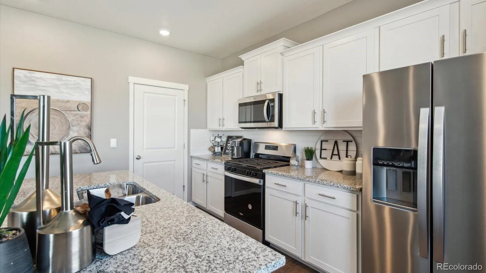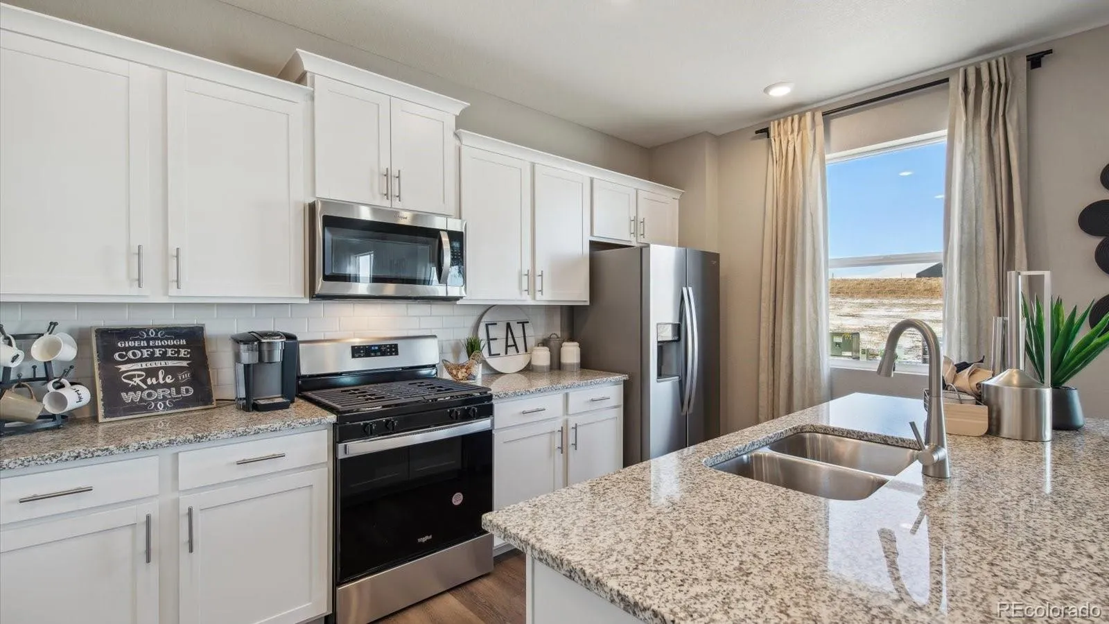 Spacious homesite + Prestigious Douglas County Schools! Popular 2-story with lots of living space with 3 bedrooms, 2.5 baths, main floor study, upstairs laundry Plus loft that’s a perfect hide-a-way. Light and bright decor highlights White cabinets with crown molding, solid surface countertops, subway tile kitchen backsplash and beautiful plank flooring on most of the first floor. This home includes an extensive list of included features such as stainless range, fridge, microwave and dishwasher, washer, dryer, blinds, 2 panel interior doors, 8′ front door, front yard xeriscape landscaping with trees, shrubs, and drip system, 8′ tall garage door plus Smart home features like keyless entry, video doorbell, garage door control, lighting, thermostat and smart speaker! ***Estimated Delivery Date: March. Photos are representative and not of actual property***