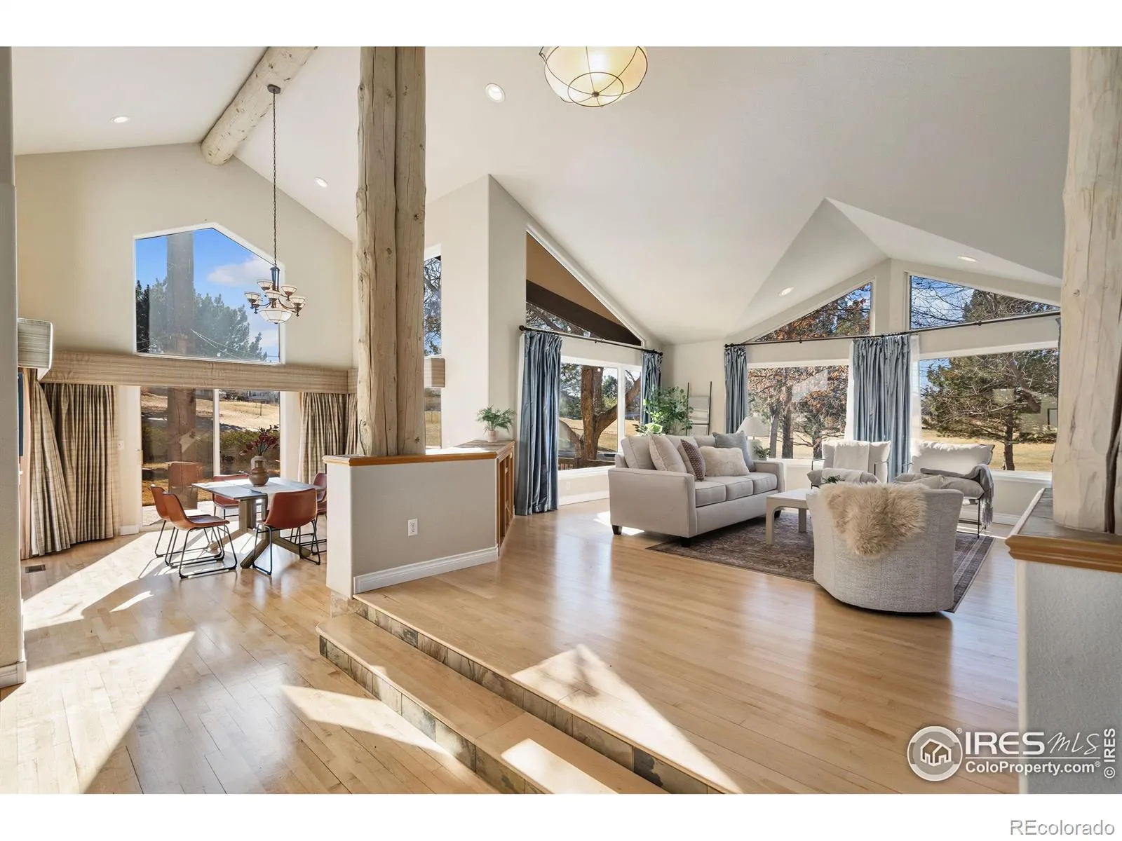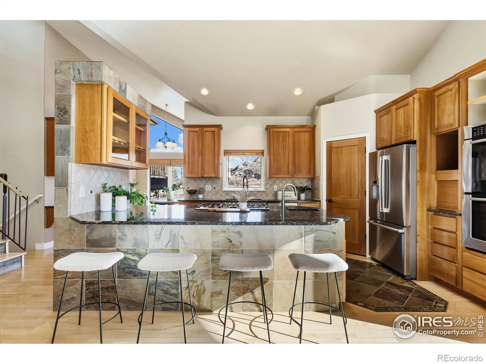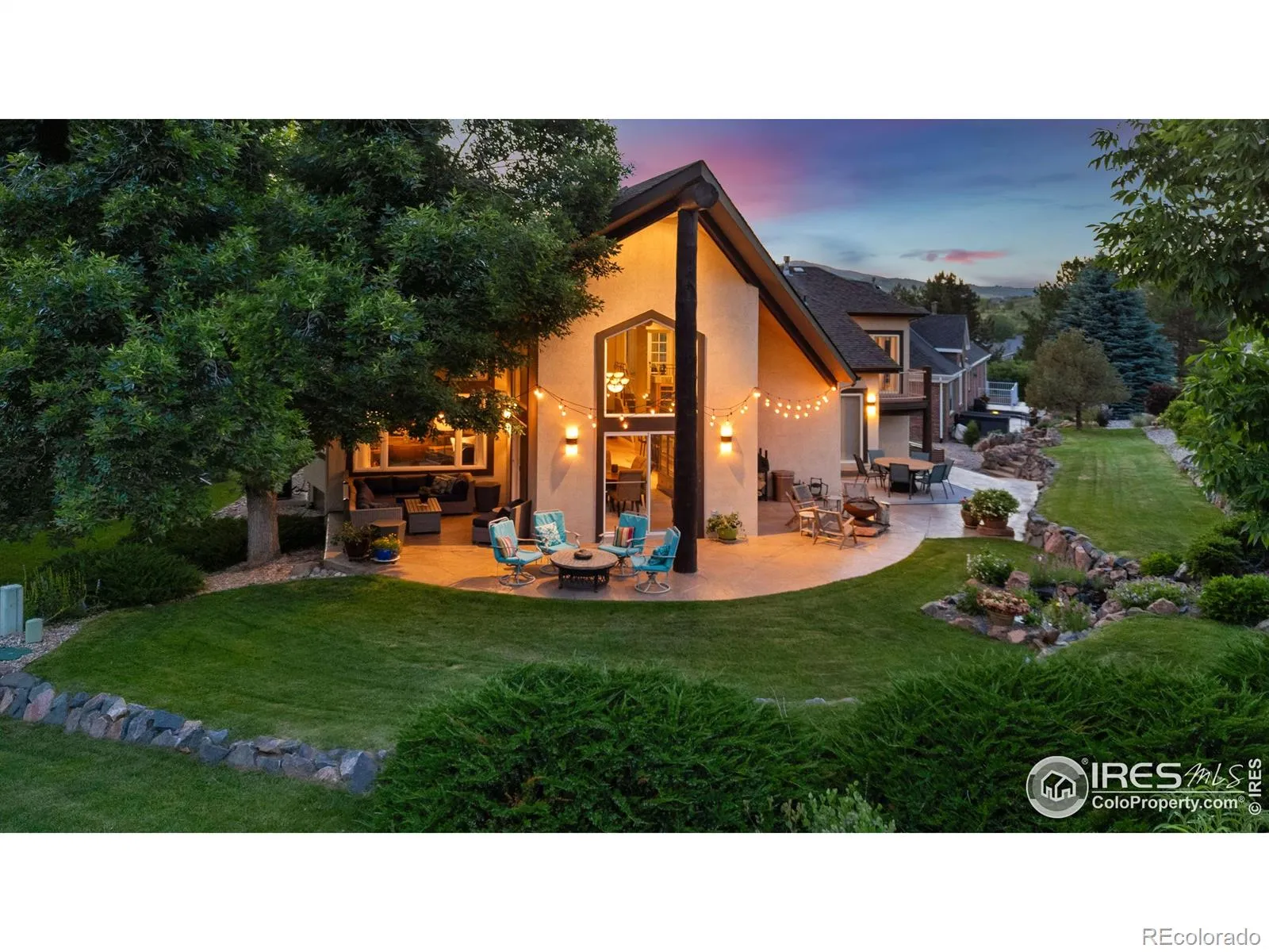 Living the high-life on the 9th green of Mariana Butte’s Golf Course community! Nestled on the 9th hole of the scenic Mariana Butte Golf Course, this custom-built 4-bedroom, 3.5-bath, 5,001 sq ft home offers unparalleled mountain views and an extraordinary outdoor living experience. Situated on a quiet Cul-de-sac, the property boasts direct access to the Mariana Butte scenic trail and is just minutes from the Devil’s Backbone Hiking Trail and Sweetheart Winery. Only a 45-minute drive to the iconic Estes Park, it blends tranquility with convenience. Built in 2000 with exceptional craftsmanship, the home features beautiful timber structures, including a charming breakfast nook with a butler bar and rich cherry cabinetry. Soaring cathedral and vaulted ceilings enhance the spaciousness throughout. French doors in the top-floor primary suite open to a private balcony with sweeping foothill views, providing the perfect spot to relax and take in Colorado’s natural beauty. The suite also features a spa-like en-suite bathroom with a jacuzzi tub and a spacious walk-in closet. The main level includes two well-appointed bedrooms, a large kitchen with an island, a welcoming foyer, a formal dining area, and a cozy living room with a gas fireplace. The basement is a versatile space, offering a fourth bedroom and full bath, plus two bonus rooms perfect for a home office, gym, or additional living space. Abundant storage throughout ensures every need is met. From the main level, step outside to the wraparound patio where you’ll find a peaceful waterfall pond and a beautifully landscaped garden teeming with Colorado wildlife like elk and turkeys. The home is equipped with two hot water heaters, three furnaces, and two A/C units for year-round comfort and optimal climate control. Whether you’re a golfer, nature lover, or simply seeking a peaceful retreat close to town, this home is a rare gem that provides the best of both worlds. Don’t miss the opportunity to make it yours!