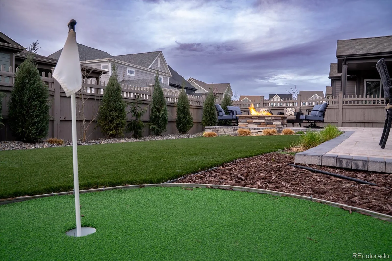 The backyard is dialed. A fully finished outdoor space featuring a custom firepit, ambient lighting, and hot tub readiness creates a private setting perfect for Colorado evenings under the stars.