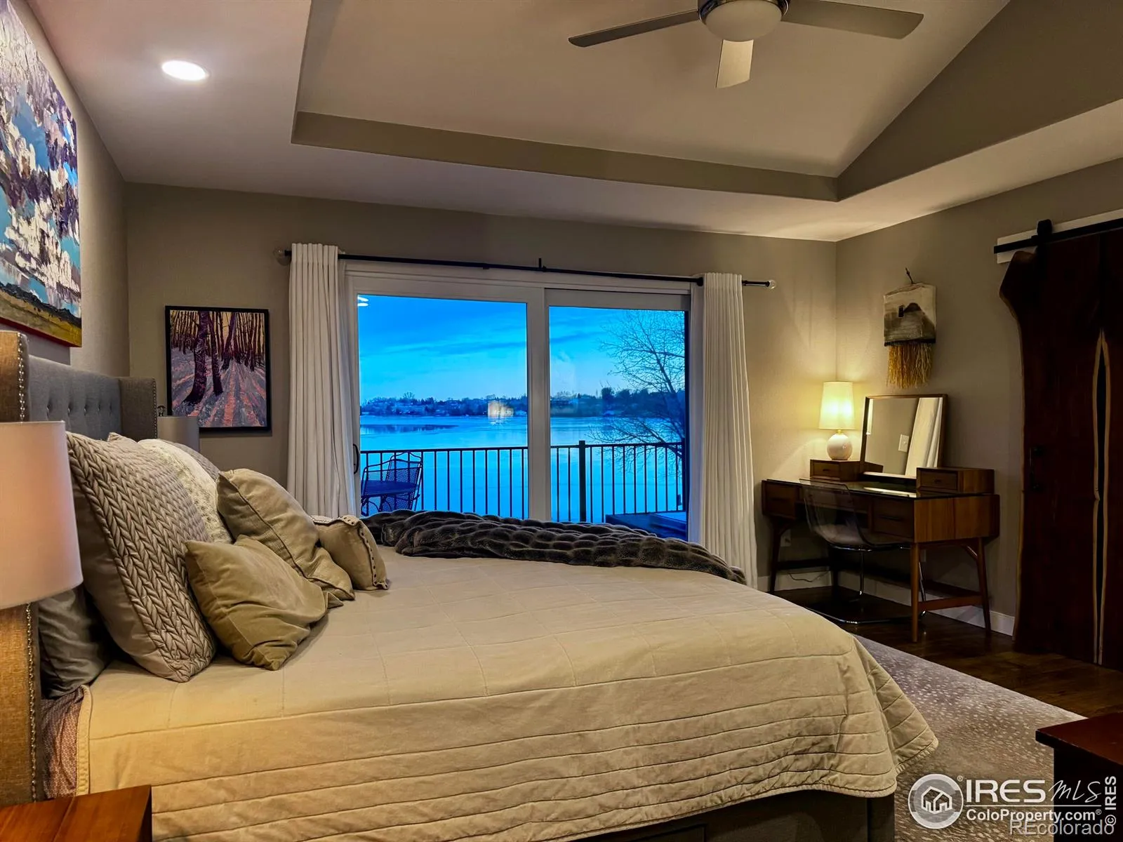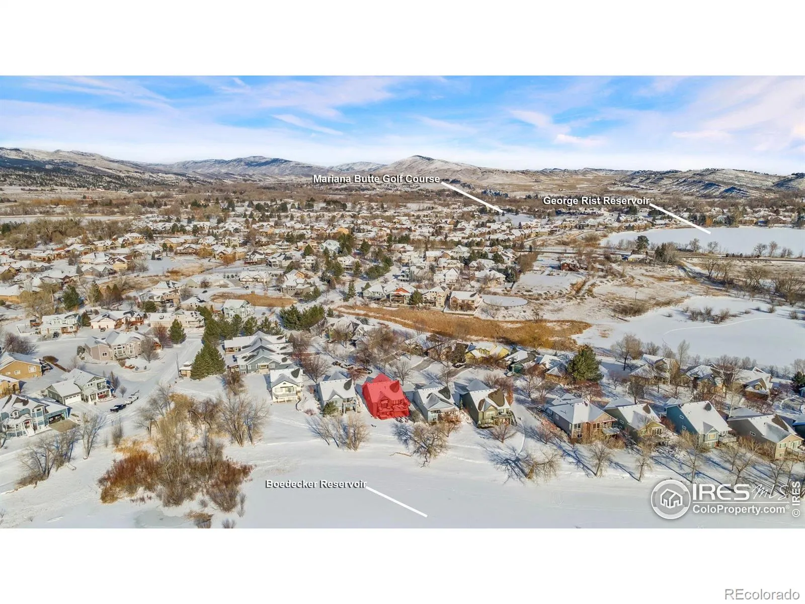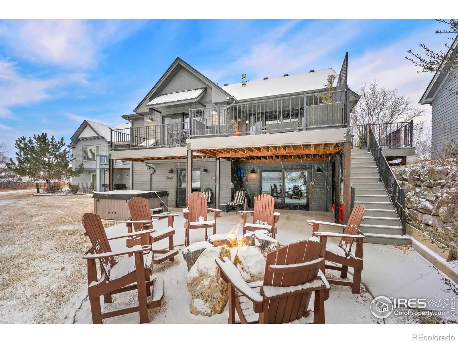 Perfectly positioned on the shores of Boedecker Reservoir, 5408 Lighthouse Point Ct is a professionally designed, fully renovated lakefront, Patio Home retreat. Refined craftsmanship, and an unmatched connection to nature-just minutes from all of Loveland’s amenities. This home truly lives like an indoor/outdoor lake house.The light-filled main level features vaulted ceilings in the great room and primary suite capturing stunning lake views. The great room is anchored by a gas fireplace and flows seamlessly into the dining area and professionally designed chef’s dream kitchen, where incredible updates maximize both style and storage. 3 sets of oversized sliding doors open to the wraparound deck, with updated railings that preserve sightlines and bring the outdoors in. The main-level owner’s suite is a peaceful sanctuary with vaulted ceilings, deck access, and tranquil water views. A walk-in closet with a live-edge sliding door adjoins the luxury 5-piece primary bath, complete with a marble shower and a spa-like soaking tub. A 2nd bedroom, full bath, and mudroom complete the main level. The finished walk-out basement continues the home’s professionally designed feel, featuring a large rec room with a 2nd gas fireplace and a wet bar with live-edge counter. Sliding doors open to the backyard, creating effortless indoor/outdoor living. 2 additional bedrooms, a stylish 3/4 bath, and a laundry room complete the lower level. Outside, enjoy a beautiful backyard with a hot tub, gas firepit, and direct access to the walking path. Exclusive rights have been purchased to build a private boat dock behind the home. Watch wildlife from your windows or deck. Every inch of the home has been completely and professionally updated. This includes drywall, doors, windows, deck, and all hard finishes. Designed to live beautifully in all 4 seasons, this home delivers breathtaking sunrises, sunsets, and provides a rare lakefront lifestyle that feels both luxurious and connected to nature.