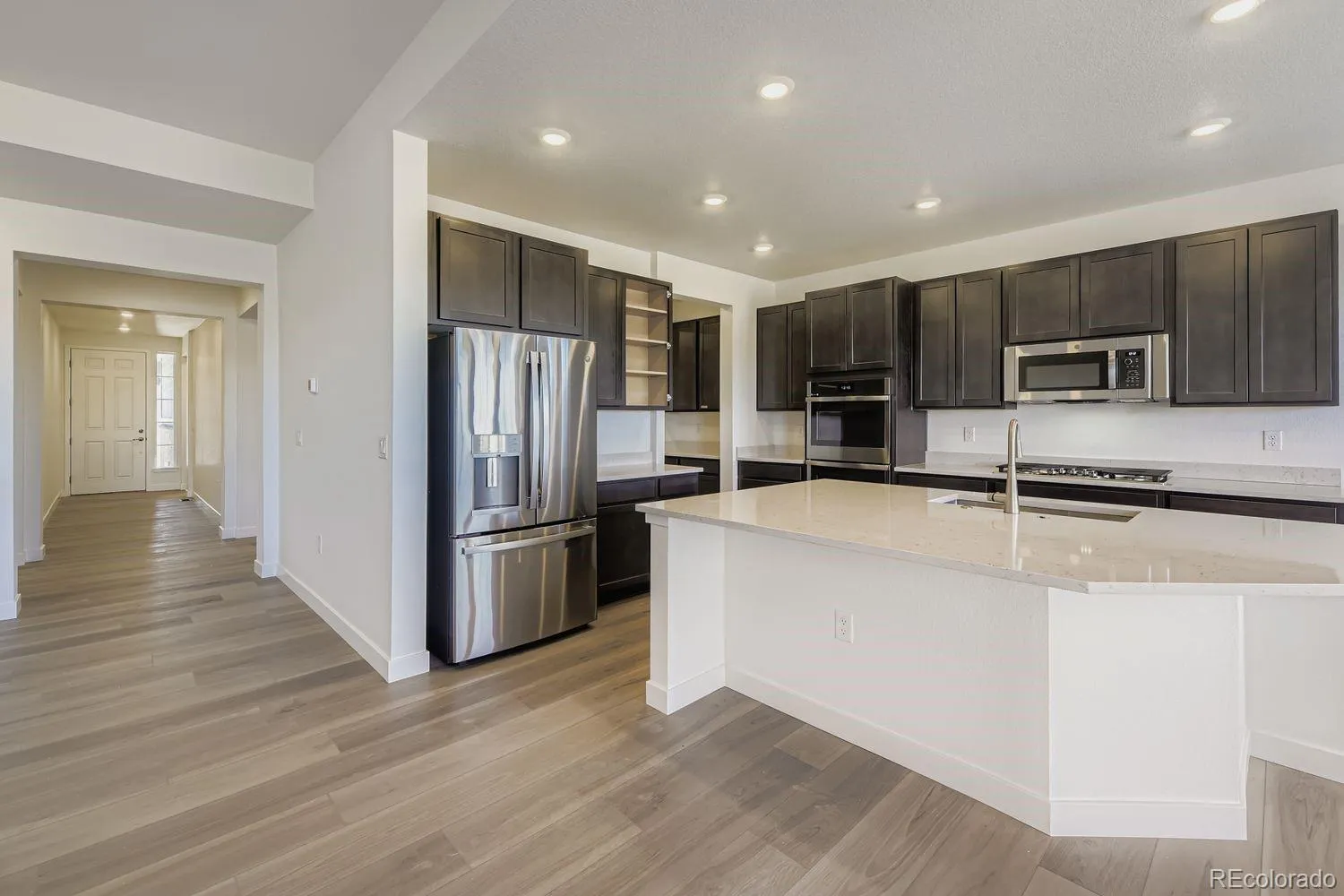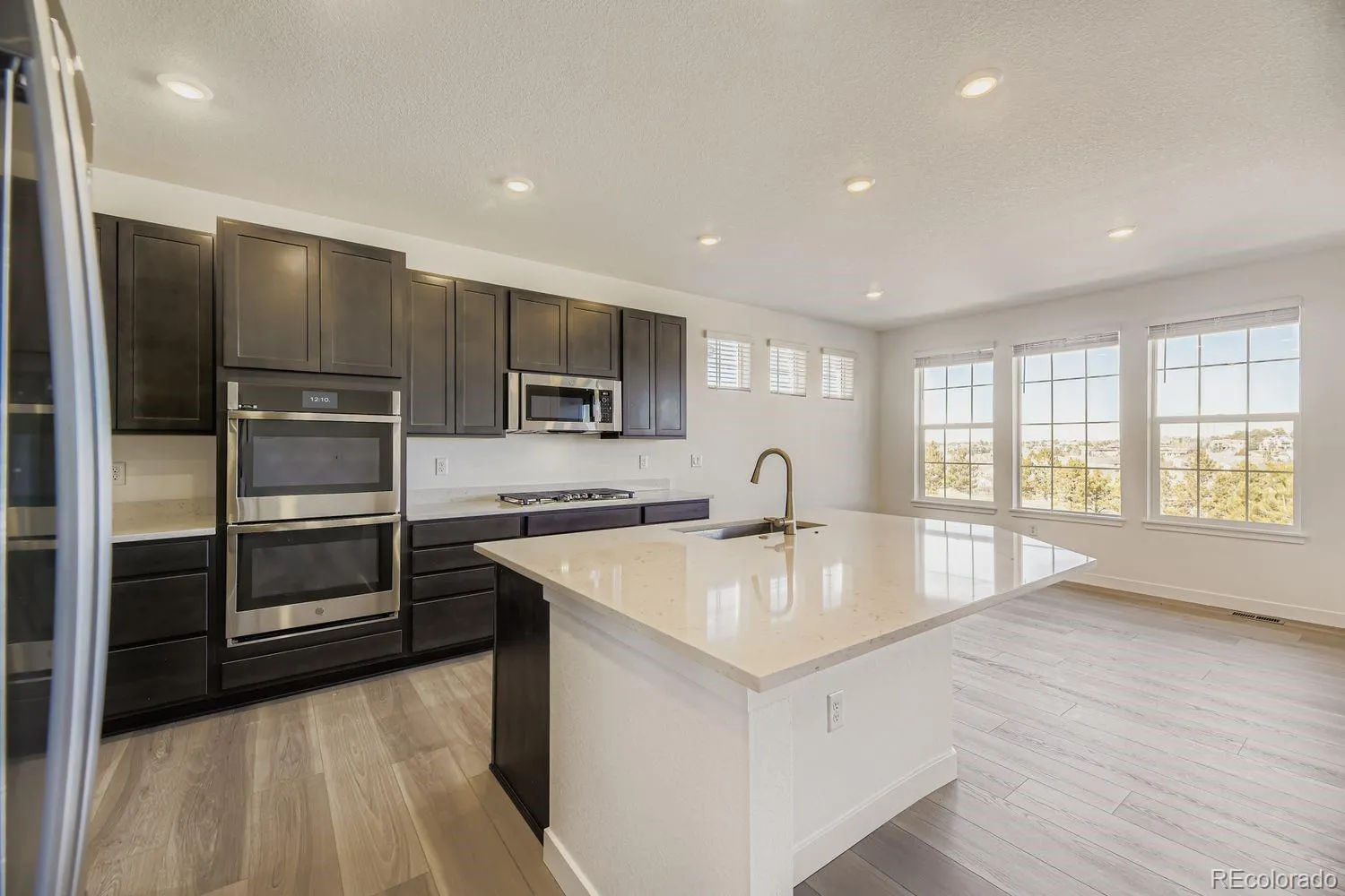 Available NOW! Guilford Estates is a new community with only 28 homesites. Thoughtfully designed with 2,527 square feet of modern living space and an impressive 3-car garage, this home welcomes you with 9′ ceilings and wide plank vinyl flooring throughout the main living areas. At its heart, an open-concept Great Room connects seamlessly with the striking kitchen—showcasing a quartz-topped island and stainless steel appliances. Entertain easily in the formal dining room or on the covered deck. Retreat to the private owner’s suite, complete with a spacious walk-in closet, dual sinks, quartz countertops and a walk-in shower. Secondary bedrooms thoughtfully positioned off the foyer offer flexibility for guests or office space while an additional bedroom down a private hall adds even more versatility. Energy efficiency shines with dual-glazed windows, LED lighting and advanced insulation. Experience Colorado living at its finest in a desirable community conveniently located near dining, shopping, entertainment, and everyday amenities. Includes a Washer & Dryer and Whole House Blinds!