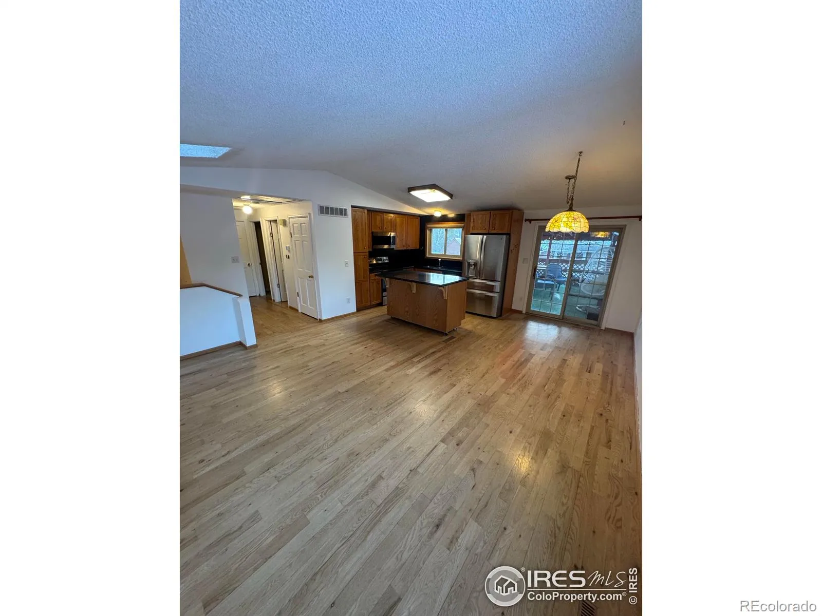 Bright/inviting 3-bd, 2-ba 2-car home with a flexible layout and great indoor-outdoor flow. The main level features an open living space, and a spacious kitchen with island, room for a dining table, and sliding door to the backyard patio. The thoughtful floor plan includes two bedrooms and a full bath upstairs, plus a third bedroom and second bath on the lower level-ideal for guests, a home office, or multi-generational living. Two living rooms offer versatility, with a projector and screen included in the second living area for cozy movie nights. An oversized attached 2-car garage, ample storage, and a very large fenced yard. Owned solar keeps energy costs in check. Conveniently located in Loveland, close to parks, open space, and trail systems, with easy access to shopping, dining, and everyday amenities-this home blends comfort, space, and location beautifully.