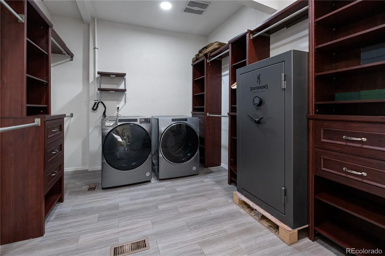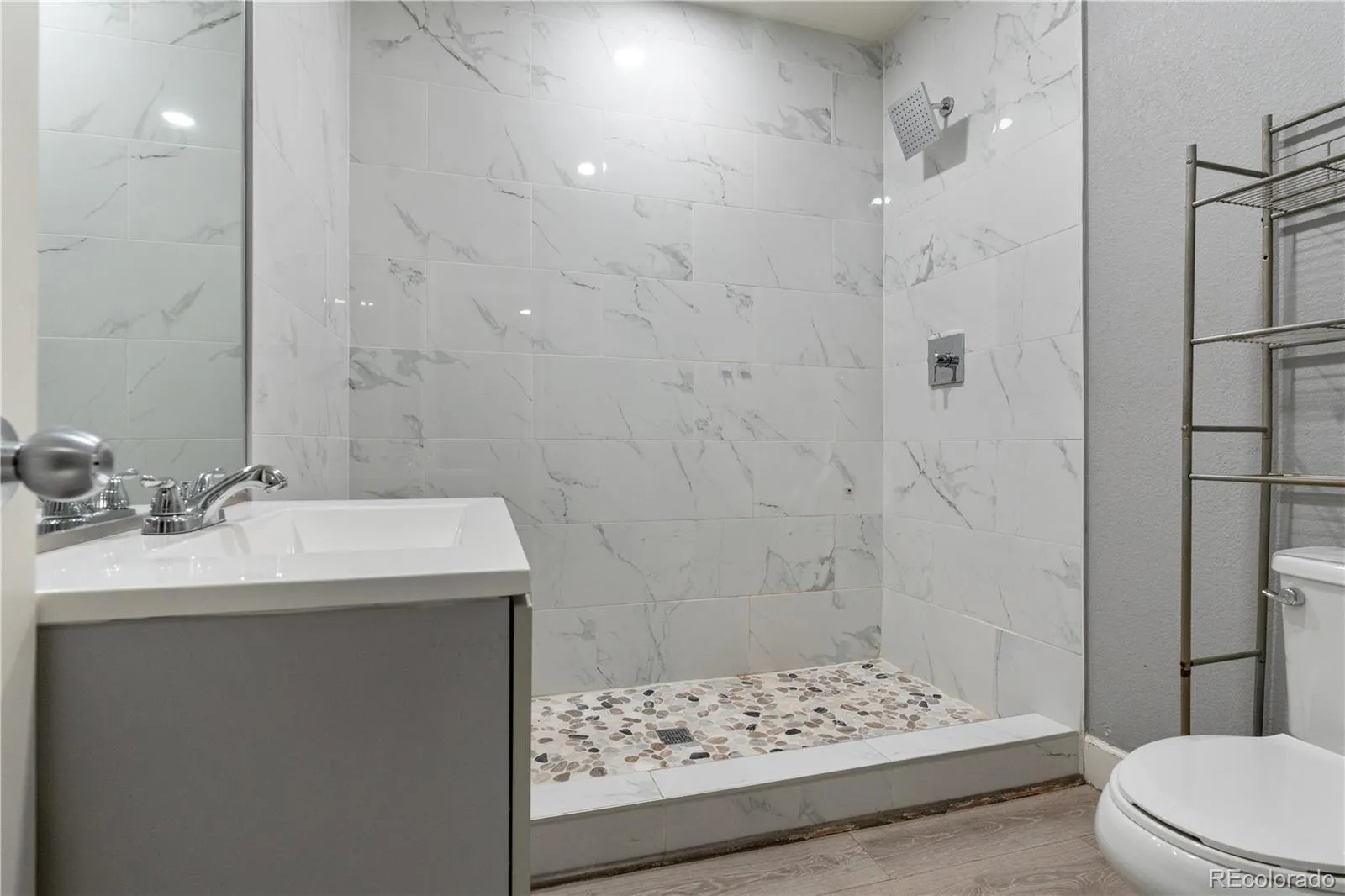 The kitchen is the heartbeat of the home and absolutely steals the show. Double ovens, sleek cooktop, stainless steel appliances, and a massive quartz waterfall island set the stage for everything from casual mornings to unforgettable nights. Vaulted ceilings soar overhead, while a dramatic stone fireplace anchors the open living and dining spaces with warmth and style. The primary suite feels like a private retreat you’ll never want to leave — vaulted ceilings, a spa-inspired five-piece bath, and a custom oversized walk-in closet with its washer and dryer because luxury should also be smart. Three bedrooms feature private baths, offering ideal separation for guests, teens, or multi-generational living. Laundry on both levels keeps daily life effortless. Downstairs, the fully finished basement unlocks serious possibilities. With its own living and dining areas, a fully equipped kitchenette with oven, and dedicated laundry, the space is perfect for extended stays, flexible living arrangements, or creative income potential — all without sacrificing privacy. Every detail, inside and out, is designed for gathering — whether that’s quiet evenings or full-scale celebrations. Add a drywalled oversized 3-car garage, and there’s room for everything that matters. Set in the sought-after Brighton Crossing community, residents enjoy pools, fitness center, clubhouse, trails, playgrounds, and a dog park — all with easy access to Denver, DIA, and major highways. This isn’t just where you live, It’s where life expands.